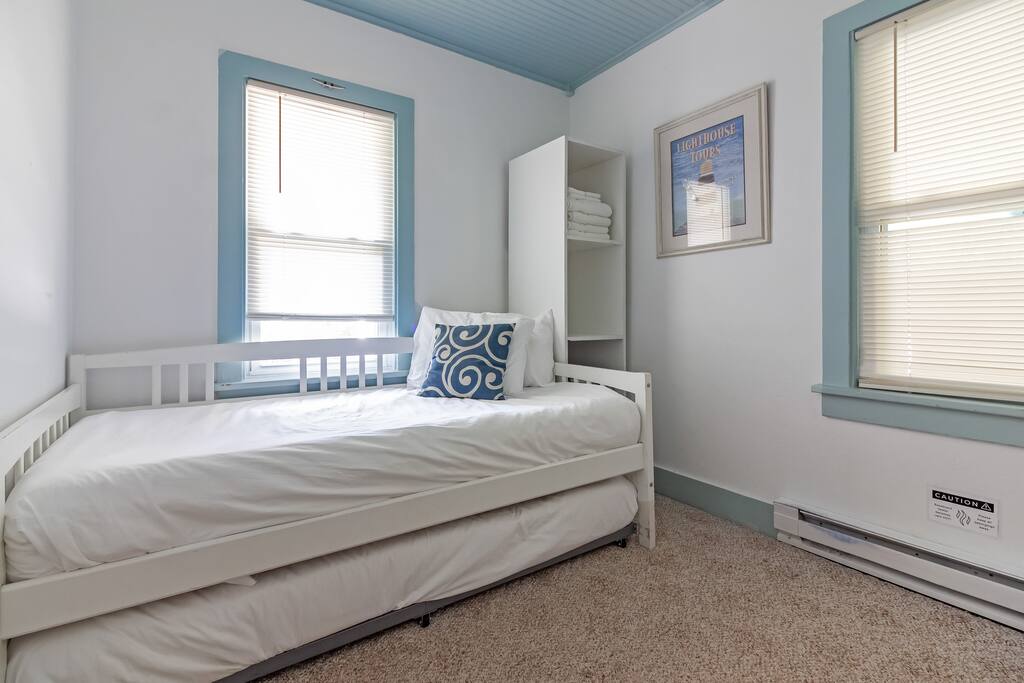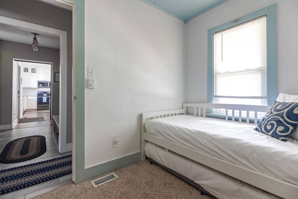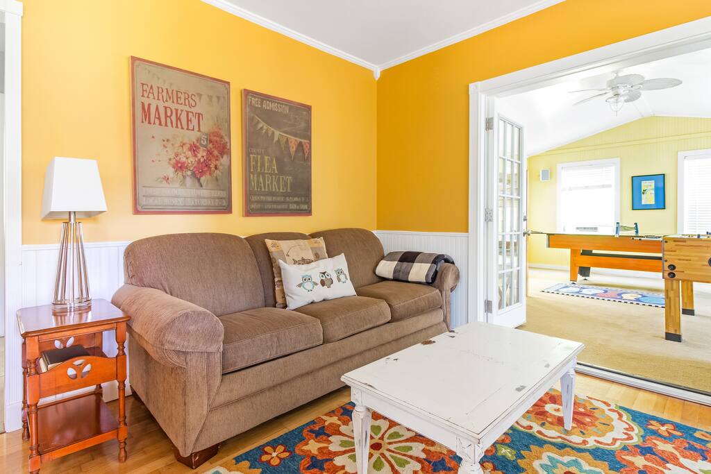 Once you arrive, you’ll step directly into the heart of the house—an open-concept kitchen, dining area, and living room anchored by a cozy fireplace. This is where mornings begin with fresh coffee and casual breakfasts, and evenings wind down with a glass of wine. Upstairs, you’ll find three bedrooms thoughtfully arranged for comfort and privacy, along with a full bathroom. Each room has a queen bed and provides a quiet space to rest after a day at the beach. One of the bedrooms has an en-suite half bathroom. To the right of the main entry lies a completely separate wing of the home—part of the original structure—which gives the property its unique character. Here, you'll find another cozy living room, the more bedrooms, two full bathrooms, and a game room designed for both kids and adults to enjoy. The game room features a pool table that converts to a ping pong table, a foosball table, and enough space for hours of friendly competition. Just off this space is the screened-in patio—perfect for morning reading, afternoon board games, or quiet evening conversations away from the crowd. Step outside and you’ll find one of the home’s best features: a large, tree-lined backyard that feels like your own private park. The deck offers space to dine al fresco or unwind in the brand-new hot tub. Kids can explore the log cabin playhouse, swing from the swing set, or run freely in the open yard while the adults gather around the fire pit as the stars come out. Whether you're spending the day at the private community beach just a short walk away, exploring the nearby towns of Saugatuck and South Haven, or simply enjoying the home itself, this is a place designed to make you feel relaxed, connected, and completely at ease. The property is located: - 350 feet from Lake Michigan - 5 miles from downtown South Haven - 15 miles from downtown Saugatuck