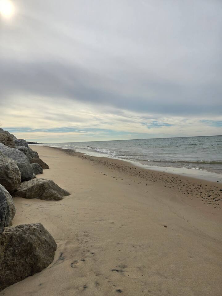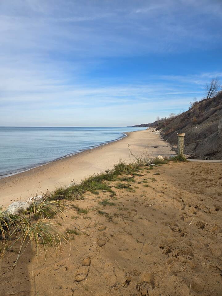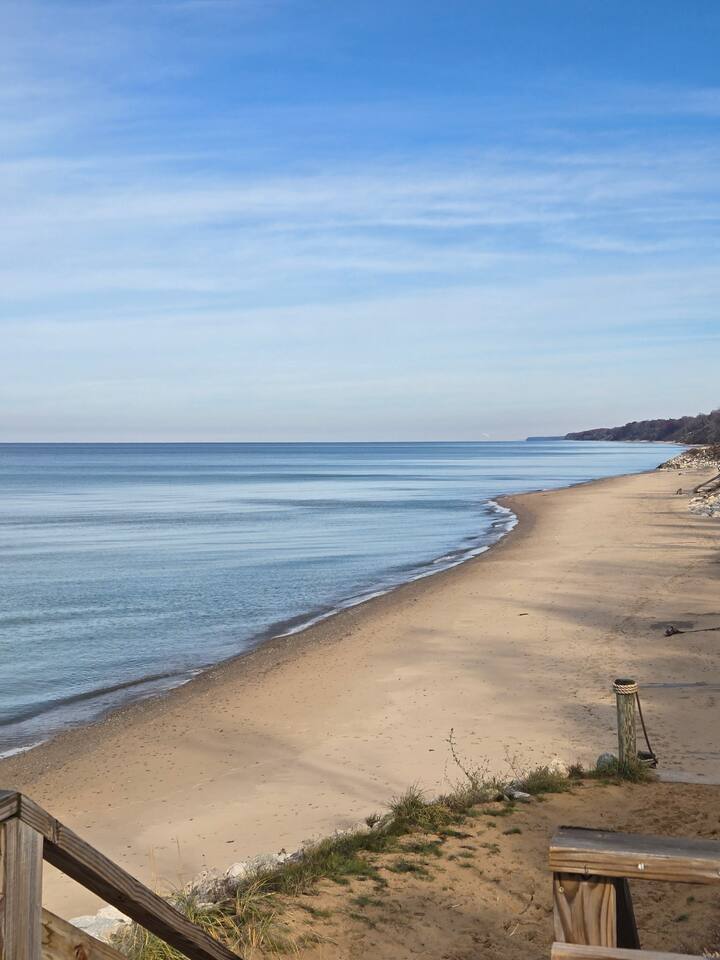 Welcome to your Lake Michigan escape, just a short stroll from a private community beach with tram access! This spacious home is made for gathering - w/ 5 bedrooms, 3.5 baths, two living areas, and outdoor spaces made for unwinding. Soak in the hot tub, build a campfire, or let the kids enjoy the playhouse. When the sun sets, kick back in the rec room or cozy up by the fireplace. Whether you're here to recharge, reconnect, or just breathe in the lake air—this beachside oasis is your place.