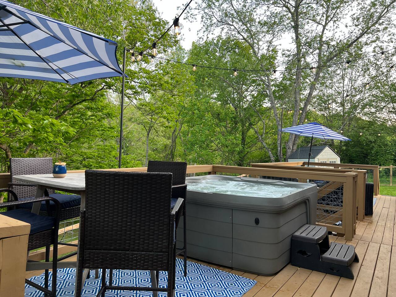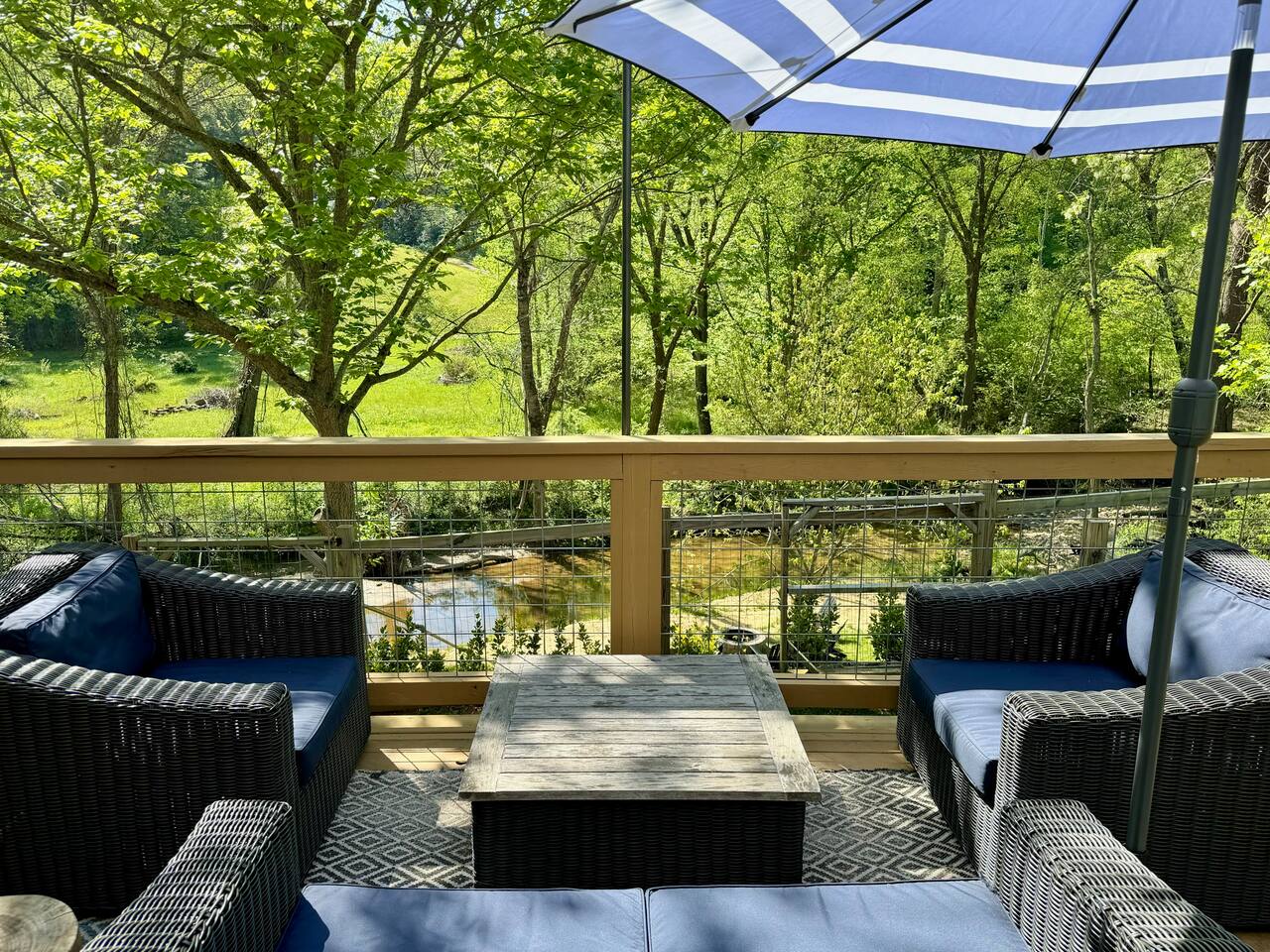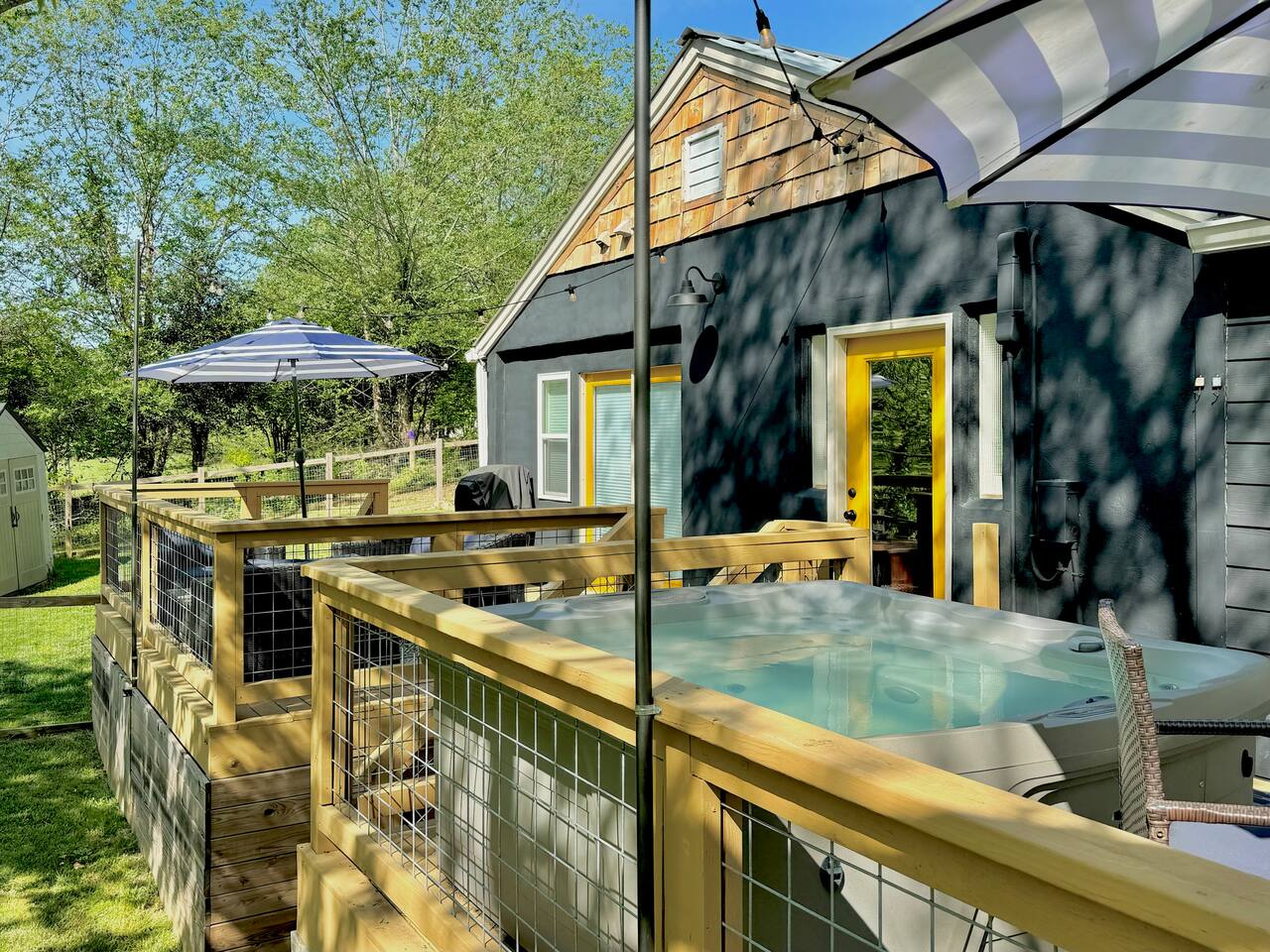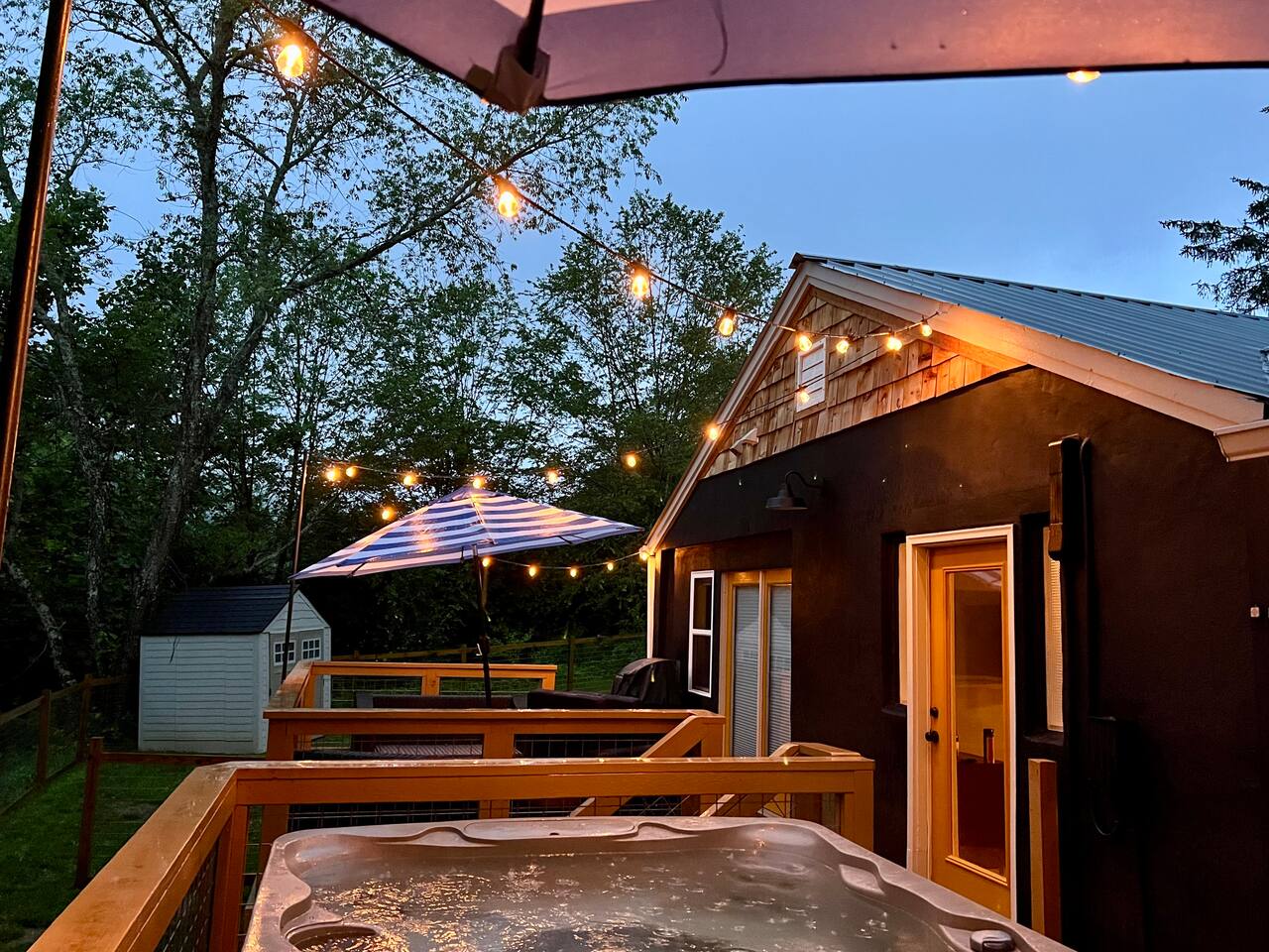 Our cottage is a true escape from city life. This charming, quaint creekside retreat has been lovingly renovated, comfortably furnished and tastefully decorated. The outdoor space is the true highlight, where you'll relax on the deck, or soak in the hot tub while enjoying views of Gap Creek and the rural countryside. This is an ideal space for a romantic getaway, remote working, a family vacation or a beer tasting weekend with friends! You will have full and private access to the entire property during your stay. Both bedrooms are equipped with plush beds and blackout blinds to ensure a comfortable night’s sleep. The living room can serve as a third sleeping area, as the sofabed has a full-sized and very comfortable memory foam mattress. There is also a pack-n-play available in case you are bringing an infant. The kitchen is well-equipped with everything you need to cook up delicious meals, including the basics like cooking oil, salt & pepper. The adjacent dining table seats 4 and can be extended to seat 6. Just steps away on the back deck, you’ll find a gas grill and cafe and lounge seating for 4. The back deck is where we almost always dine, relax and entertain. Spend the evening cooking up dinner, soaking in the hot tub, or relaxing and playing board games under the stars! On our lower back yard level we have yard games like Cornhole (or bags), Disk Golf, a brand new fire pit with lounge seating for 4. Planning on remote working and/or learning during your stay? We have a workspace in the primary bedroom and there is high-speed wifi internet access throughout the property. For entertainment, there are board games, puzzles, a record player and more. There is a 50-in smart TV in the living room, as well as a 42-in smart TV in the primary bedroom, both equipped to stream all your favorites. The house is located on a two-lane country road that can at times be fairly busy during high-traffic times of day. The property itself is very private, with over a half acre of land surrounded by trees. We have a newly installed Tesla charger that uses a NACS plug. Please plan to bring appropriate adapter for your specific vehicle. For example, CCS1 plugs for Tesla charger. If you leave the property to explore the local area, you'll find fabulous restaurants and abundant activities all around. We'll be happy to recommend our favorites! Our cottage is located: - < 1 mile from local restaurants & breweries in Fairview - 5 miles from the Blue Ridge Parkway Access - 9 miles from Bearwallow Mountain - 10 miles from downtown Asheville - 12 miles from the Biltmore Estate - 13 miles from the River Arts District - 15 miles from Chimney Rock State Park - 32 miles from Looking Glass Falls in Pisgah Nat’l Forest - 40 miles from the summit of Mount Mitchell We adore our cottage and hope you will love and respect it as much as we do. We’re excited to have you stay with us soon!