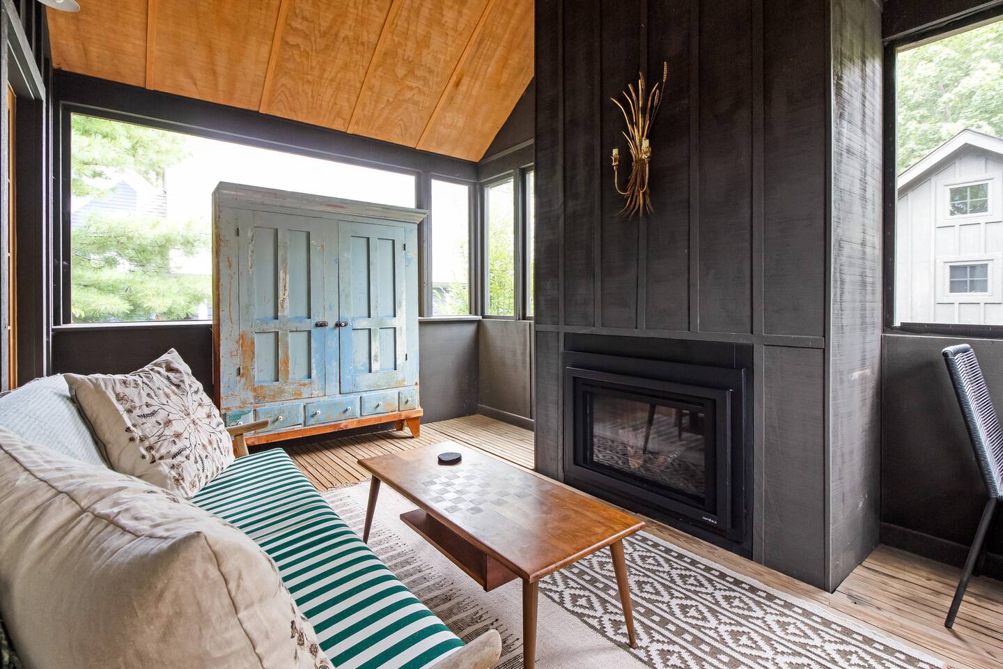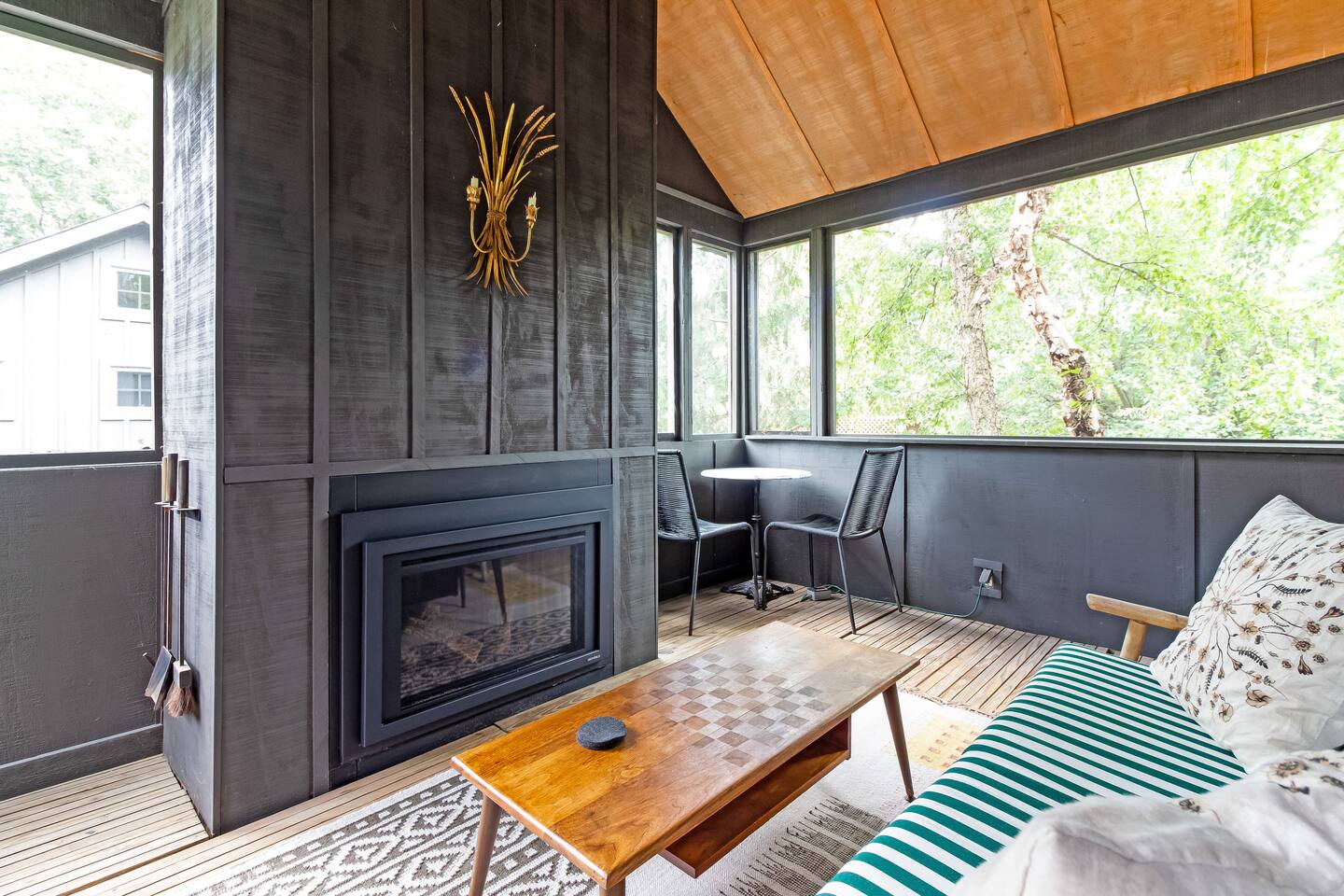 The main house features a spacious bedroom and 1.5 baths, while a charming guest cottage provides an additional bedroom, den, and full bath, all separated by a lush, private courtyard. As you step inside the main house, you’ll be greeted by an open living, dining kitchen area with gas fireplace. This inviting space is perfect for relaxation and entertainment. This kitchen has everything you need, whether you're preparing a quick breakfast or a gourmet dinner. There's also a half-bath on this floor. Upstairs in the main house is the spacious primary suite featuring a vaulted ceiling, built-in wardrobe and comfortable king bed. This bedroom also has an en-suite full bathroom and a fully screened-in outdoor porch with a gas fireplace. It's the perfect escape year round. Behind the main house is a fully enclosed courtyard with a gas grill and a gas firepit, surrounded by Adirondacks. Upon entering the guest cottage, you'll find the den on the first floor, which has a sofabed, desk and TV. Upstairs is an open bedroom with a full-sized bed and full bathroom. In the basement of the guest cottage, you'll find the laundry room. This home's prime location near downtown Douglas and the waterfront makes it easy to explore all the Saugatuck-Douglas area has to offer! Registration # CR24-208