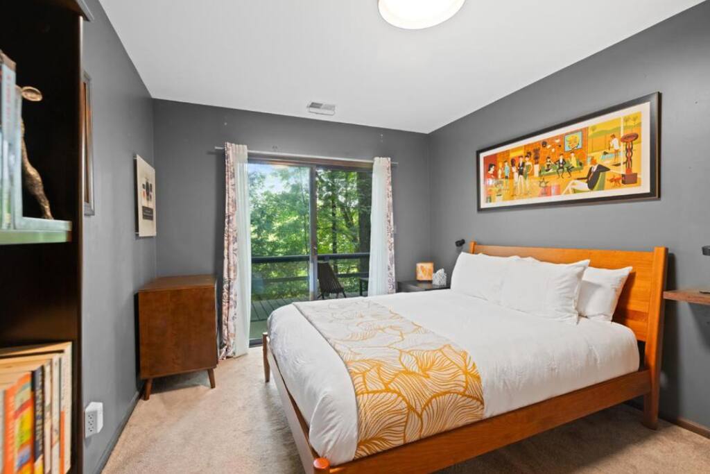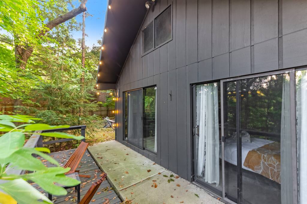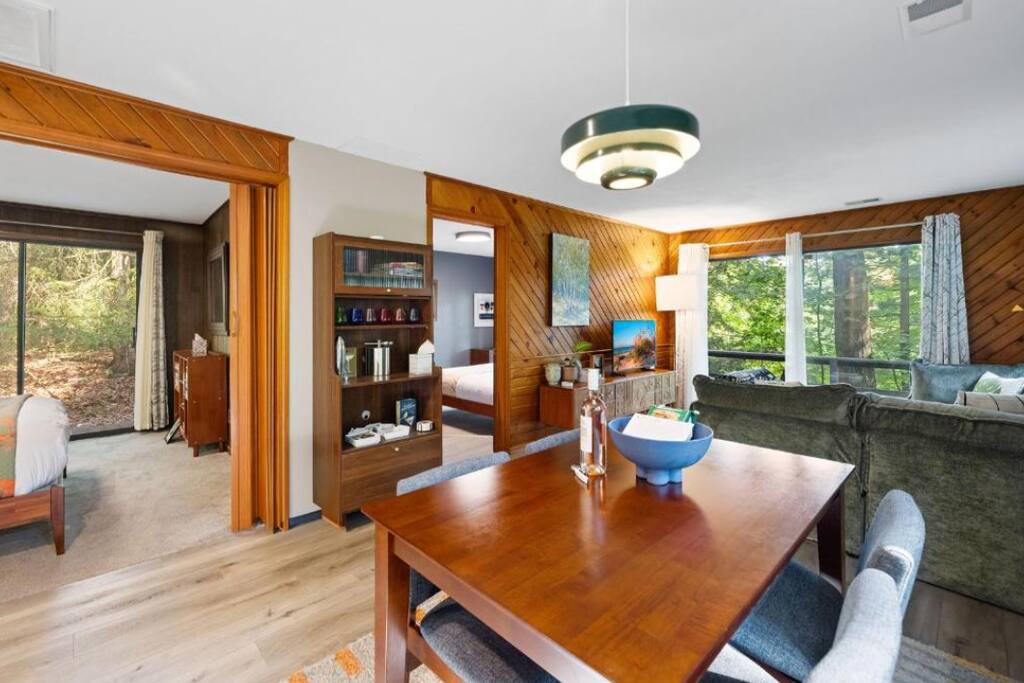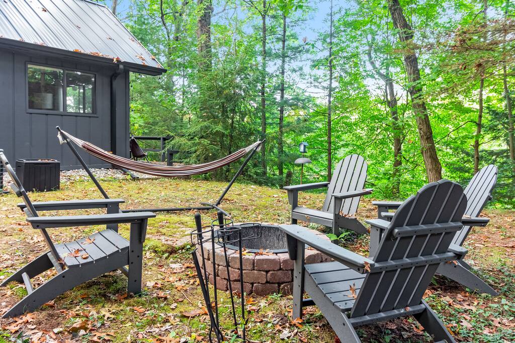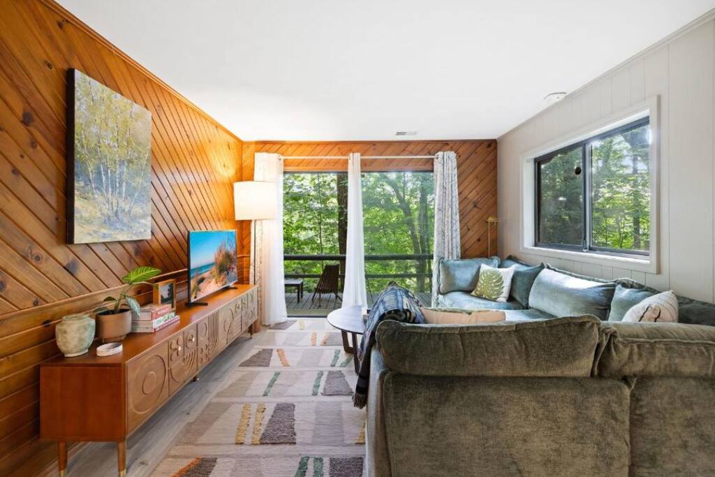 Tucked in the woods along the Kalamazoo River, Eveningwood is a secluded bungalow where nature and style meet. Surrounded by towering trees and the sounds of nature, you’ll feel a world away—yet Saugatuck’s beaches, galleries, and dining are just 10-15 minutes away. Inside, cozy spaces feature mid-century modern touches and thoughtful upgrades, creating the perfect blend of comfort and design. Ideal for quiet getaways, creative escapes, or simply unwinding in total privacy.