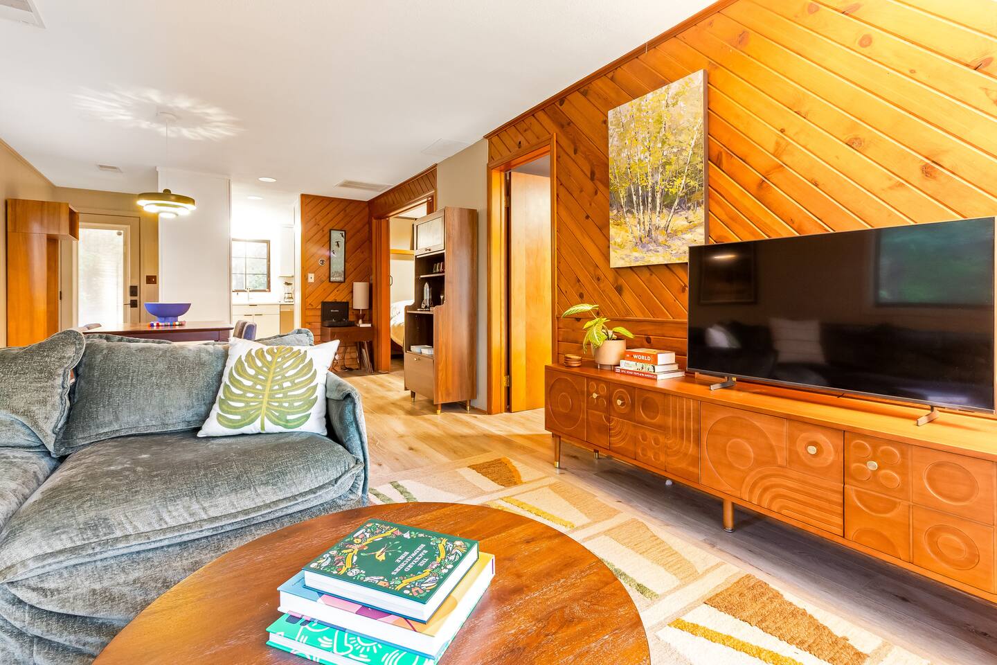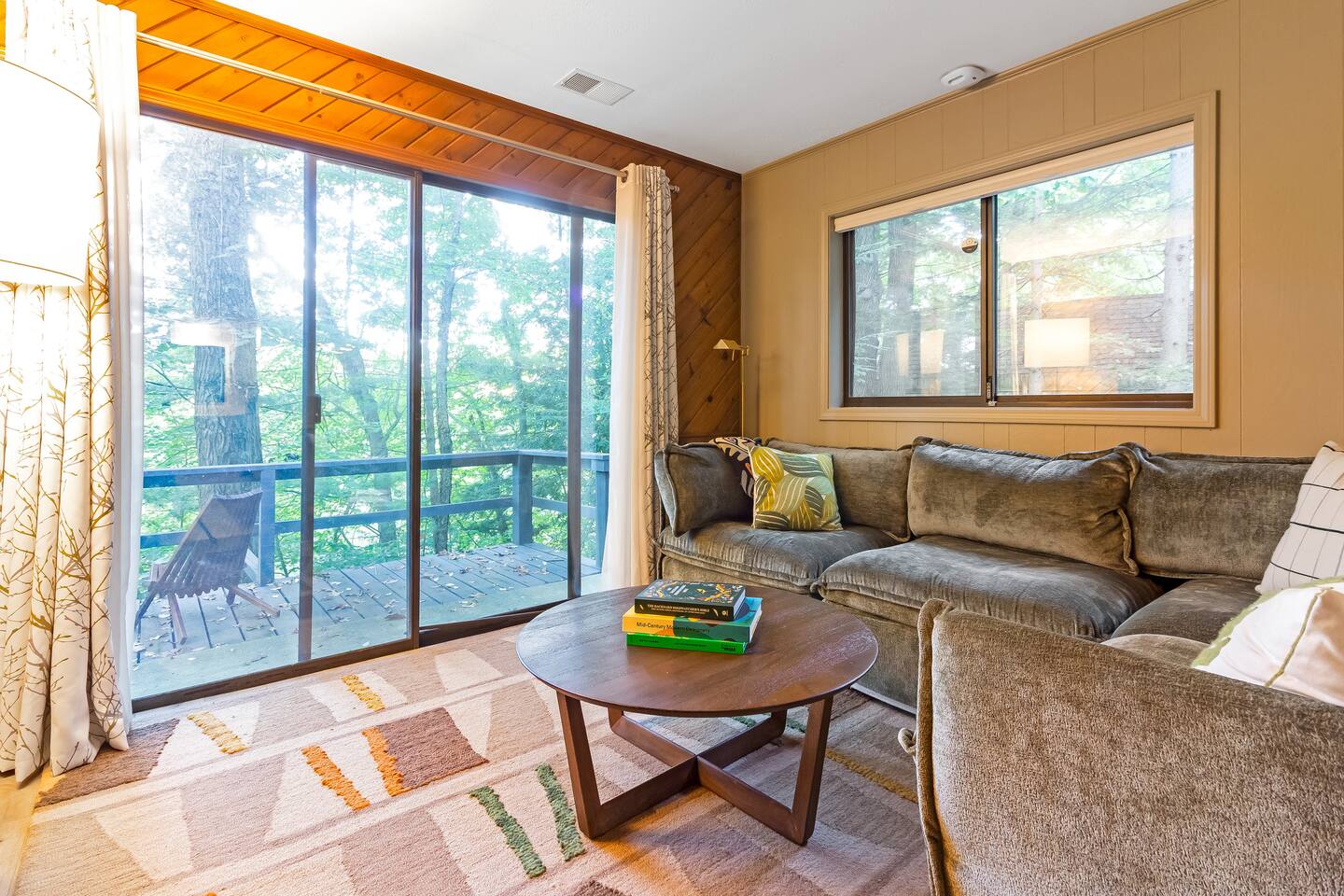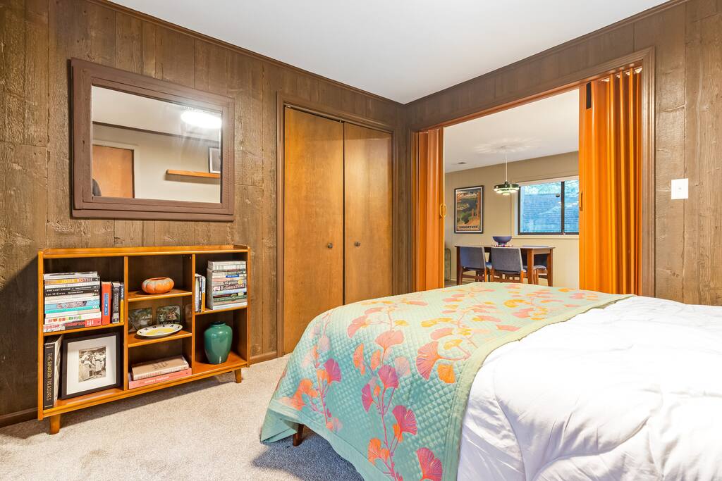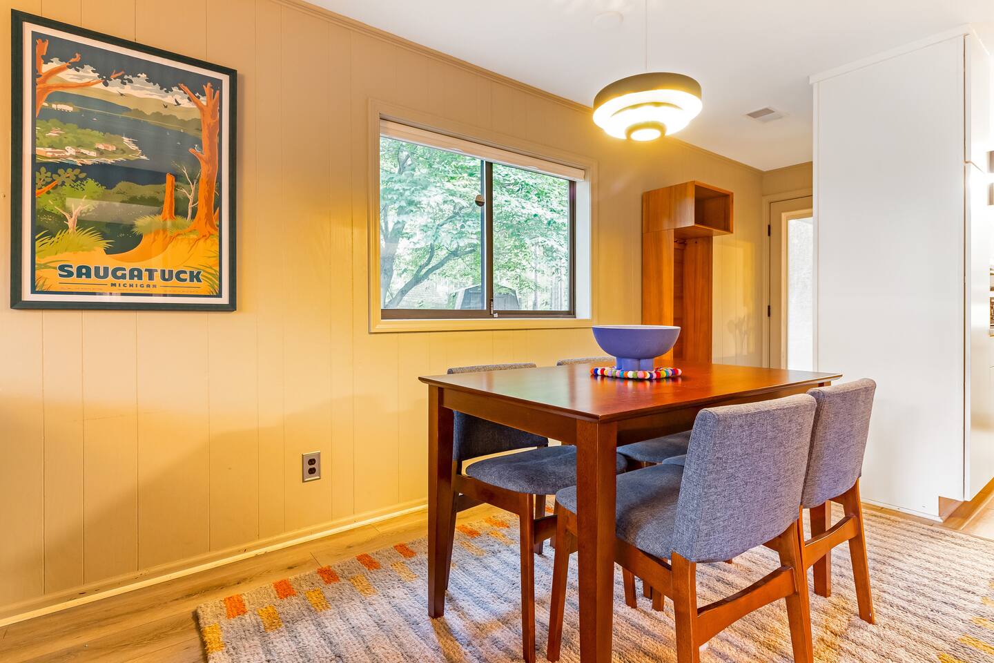 Tucked in the woods along the Kalamazoo River, Eveningwood is a secluded bungalow where nature and style meet. Surrounded by towering trees and the sounds of nature, you’ll feel a world away—yet Saugatuck’s beaches, galleries, and dining are just 10-15 minutes away. Inside, cozy spaces feature mid-century modern touches and thoughtful upgrades, creating the perfect blend of comfort and design. Ideal for quiet getaways, creative escapes, or simply unwinding in total privacy.