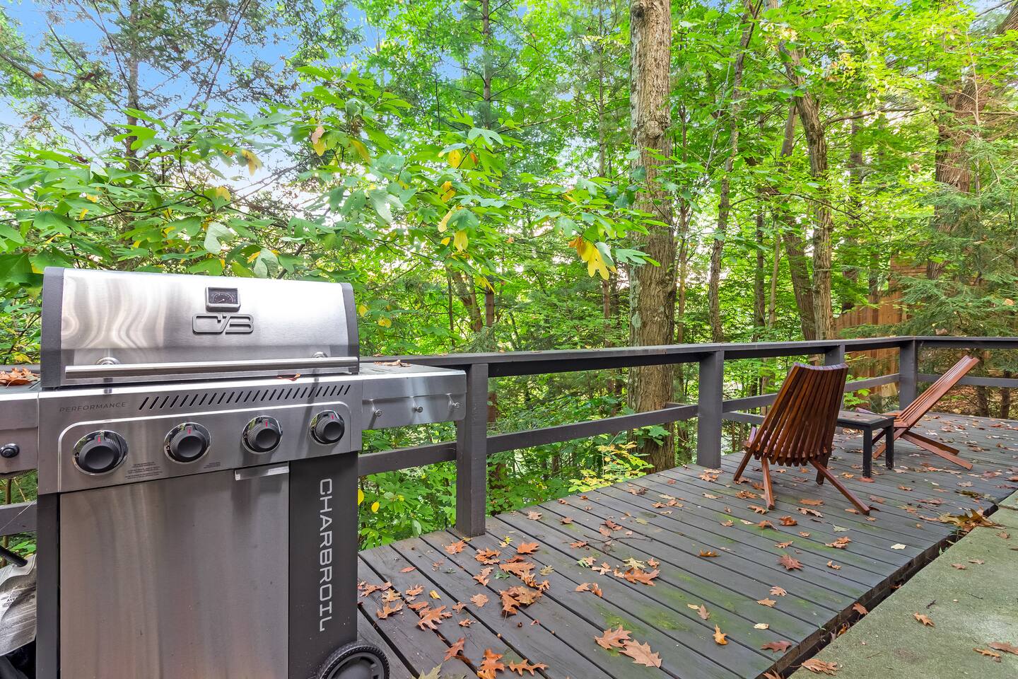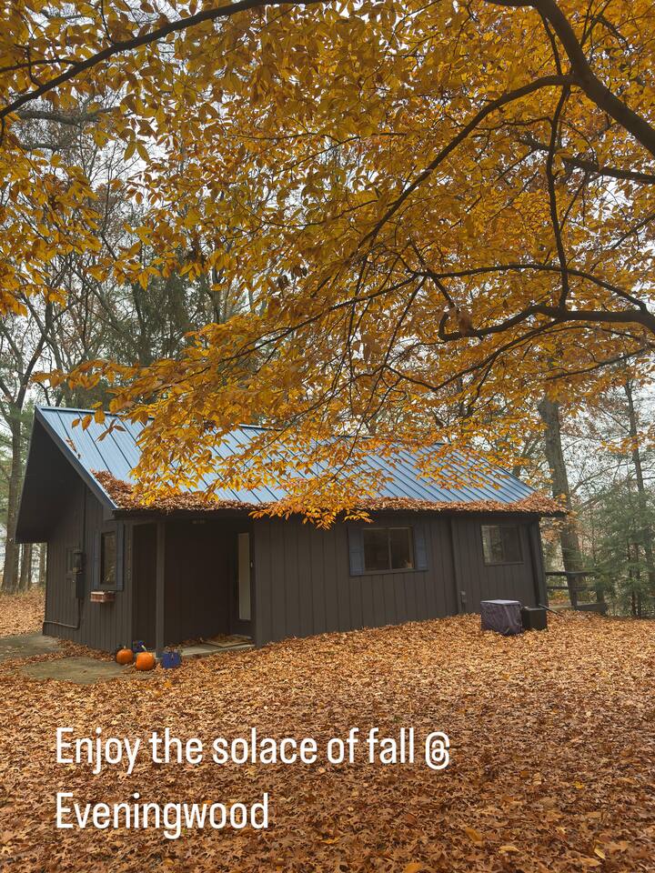 As you drive up the wooded trail, Eveningwood reveals itself as a serene retreat tucked among the trees. Step inside to an open dining, kitchen, and living area designed for unwinding. The cozy living room is the heart of the home, with a large TV, record player, and deep, comfortable couches for movie nights or evenings with music and wine. The fully equipped kitchen has everything you need and more, whether you’re preparing a full dinner or simply brewing your morning coffee or tea (both provided). Both bedrooms, each with a queen bed, open onto the deck through sliding glass doors—so does the living room—bringing the outdoors in. Outside, the deck is perched high on a bluff with seasonal views of the river below, and with a gas grill ready for cookouts. The side yard invites evenings under the stars with a fire pit and hammock—a true place to unwind. When adventure calls, you'll have quick access to Lake Michigan beaches, art galleries, restaurants, and wineries. You’re perfectly positioned: - 8 minutes to Fennville - 10 minutes to Saugatuck - 15 minutes to Saugatuck Dunes State Park - 20 minutes to Oval Beach Eveningwood is the perfect spot for days spent between nature and the vibrant art coast community. We look forward to hosting you!