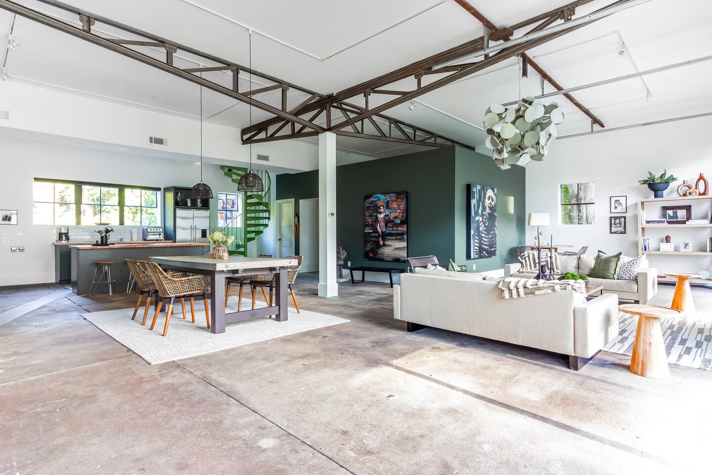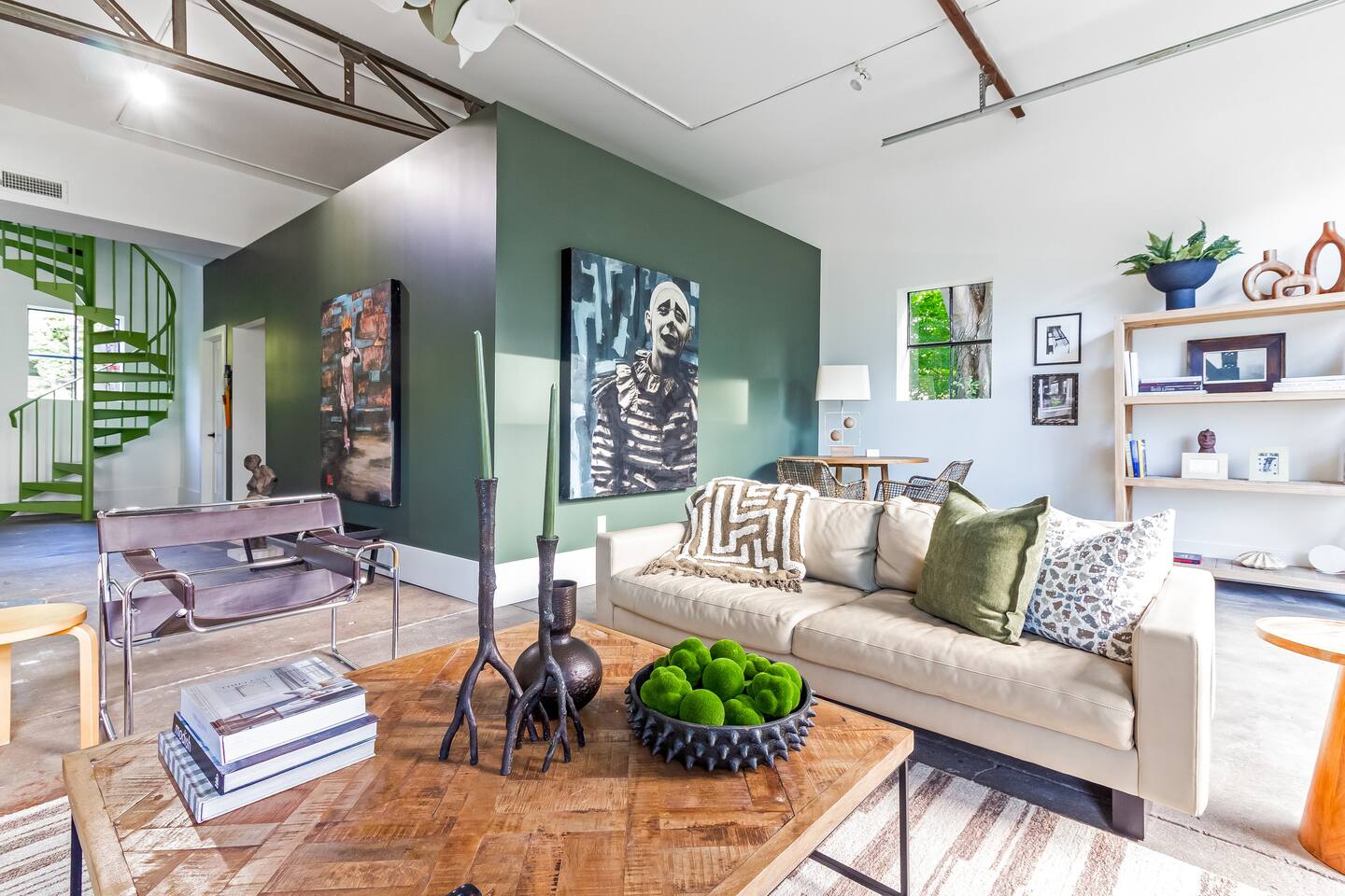 Step into history at Roan & Black: The Gallery Loft, a one-of-a-kind rental that perfectly blends its artistic past with mid-century modern charm. Located on the first level, this 2BR loft is on almost 2 acres of lush, landscaped grounds, offering a serene and private retreat. Whether you're an art lover, a design enthusiast, or simply looking for a distinctive place to relax, The Gallery Loft offers a truly memorable stay.