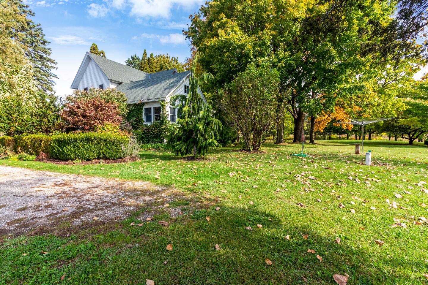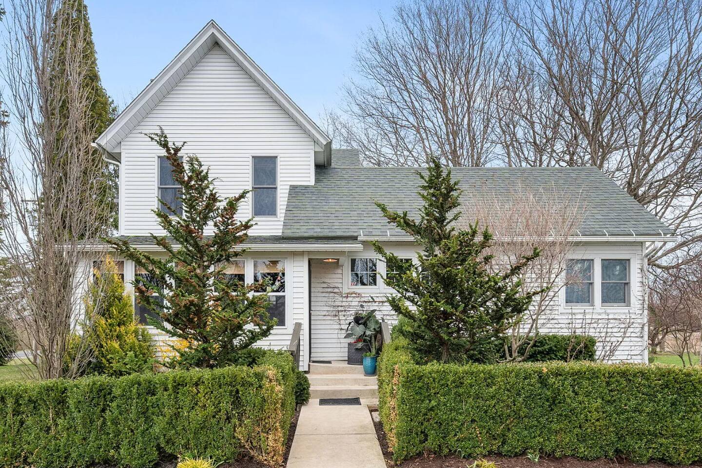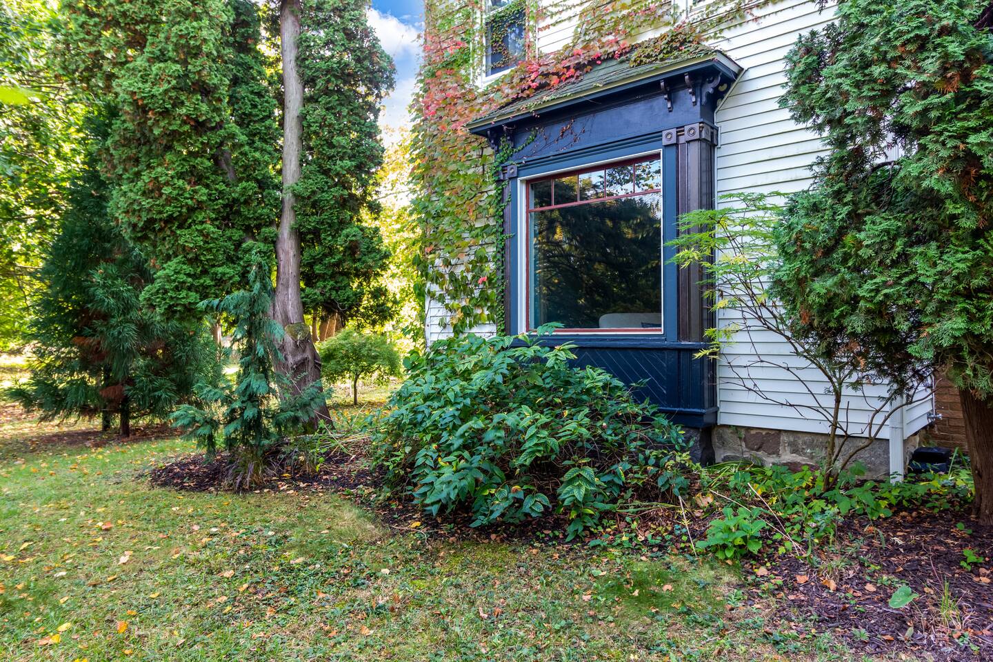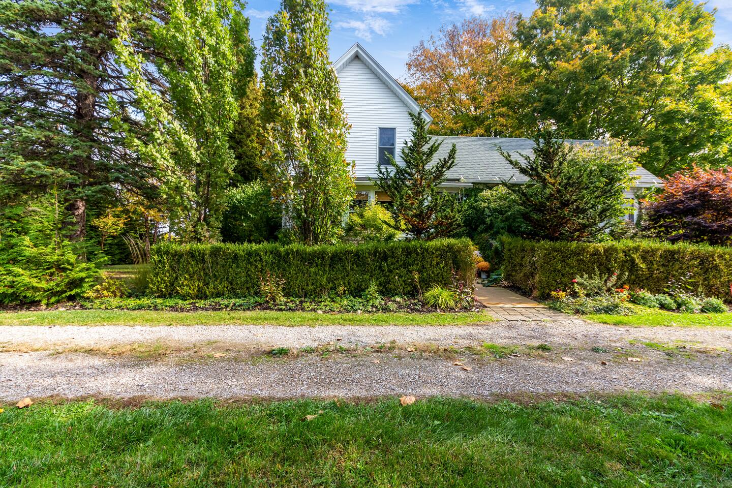 Step inside Grace & Ease, where heritage and heart come together in perfect balance. On the main level, the living room features comfortable seating, a smart TV, and curated artwork, creating the perfect spot to relax after a day exploring the countryside. The dining area sits nearby, ideal for slow dinners and conversation, opening into the gourmet kitchen—a bright and functional space with custom cabinetry, solid oak finishes, and beautiful views of the gardens. A cozy breakfast nook offers a sunny corner to enjoy coffee or tea while taking in the peaceful surroundings. Also on this level, you’ll find the tranquil primary bedroom suite, complete with its own private sitting room. Here, a record player, comfortable seating, and a large picture window create a quiet space for reflection or daydreaming. A full bathroom with modern touches and a laundry area also serve this floor. Upstairs, three inviting guest bedrooms each feature their own personality and cozy charm—perfect for family or friends traveling together. A second full bathroom completes the upper level, providing comfort and convenience for all. Every room at Grace & Ease feels intentional, blending original character with modern comfort, and inviting you to slow down, connect, and fully unwind. Step outside to discover the soul of this property—a spacious yard surrounded by lush, lovingly tended gardens that bloom with life in every season. Wander among flowering trees, peonies, hostas, and a century-old wisteria that drapes gracefully over the landscape. Thoughtful landscaping and mature plantings offer both beauty and privacy, creating a serene environment for morning yoga, reading in the shade, or sunset picnics under the open sky. Grace & Ease isn’t just a place to stay—it’s a place to breathe, reflect, and reconnect with nature’s quiet rhythm. We look forward to welcoming you at Grace & Ease.