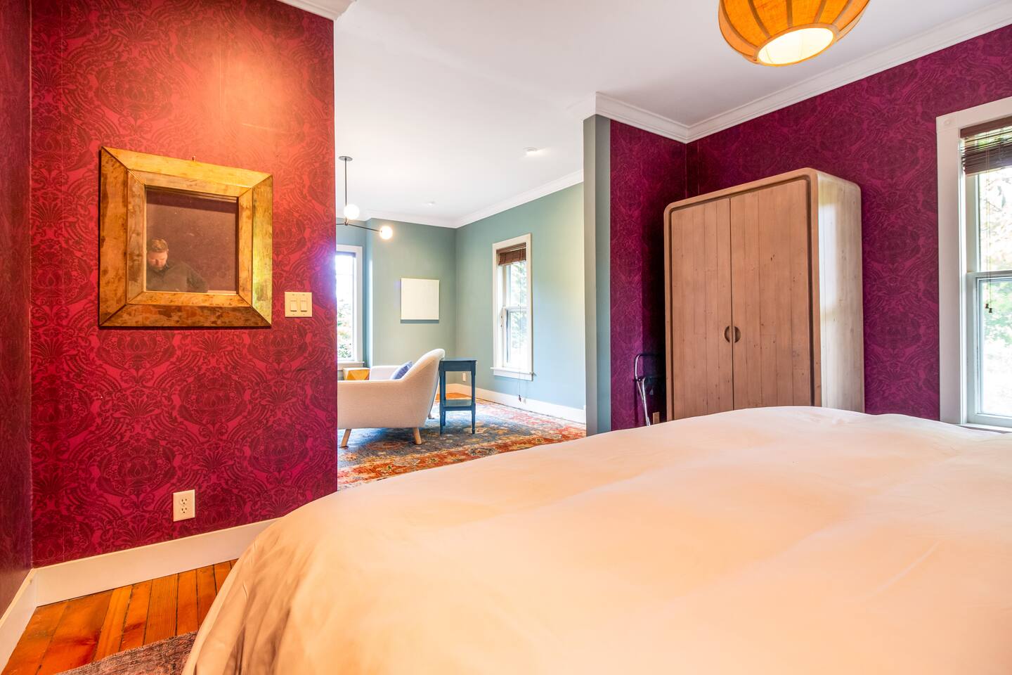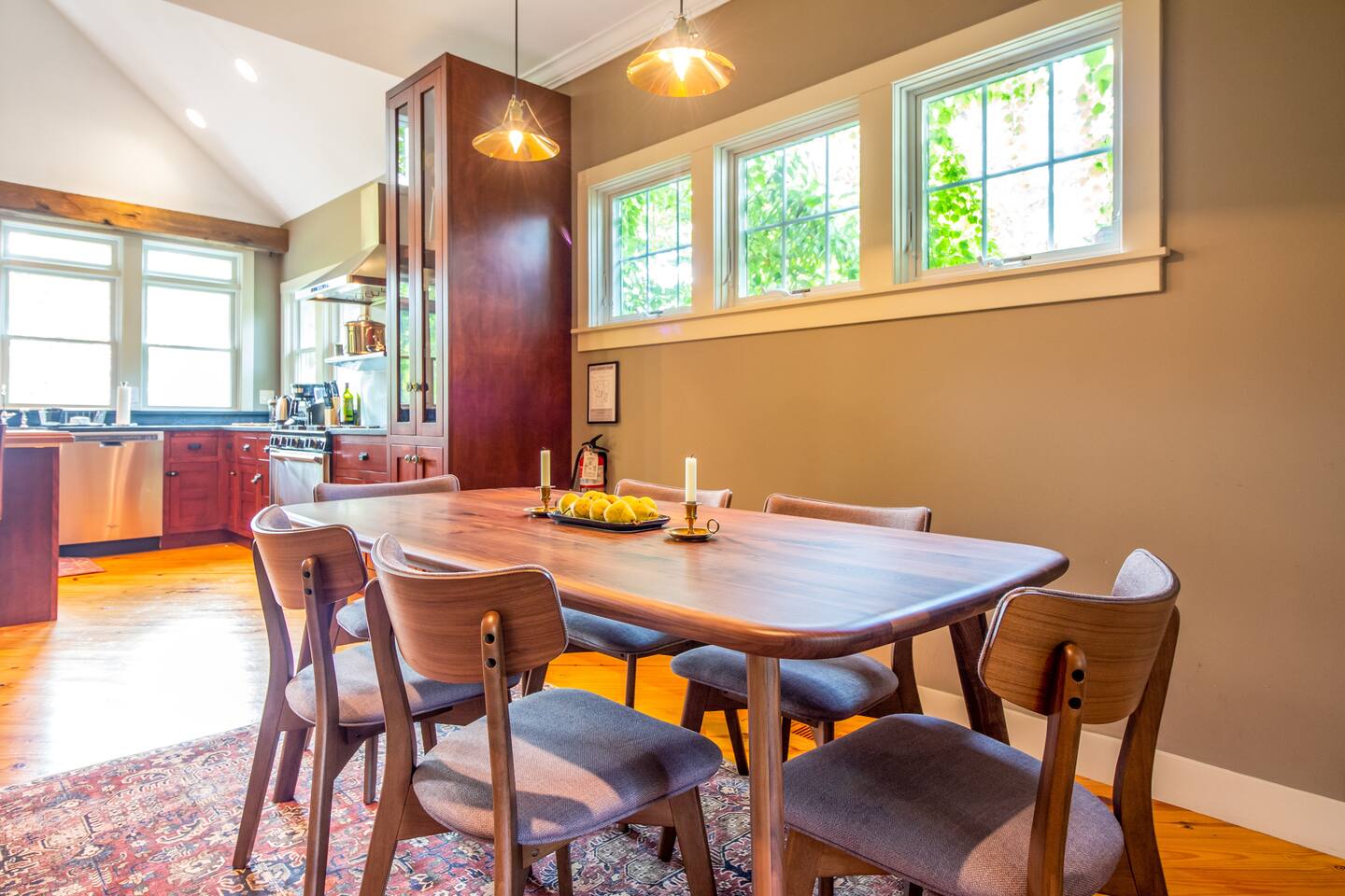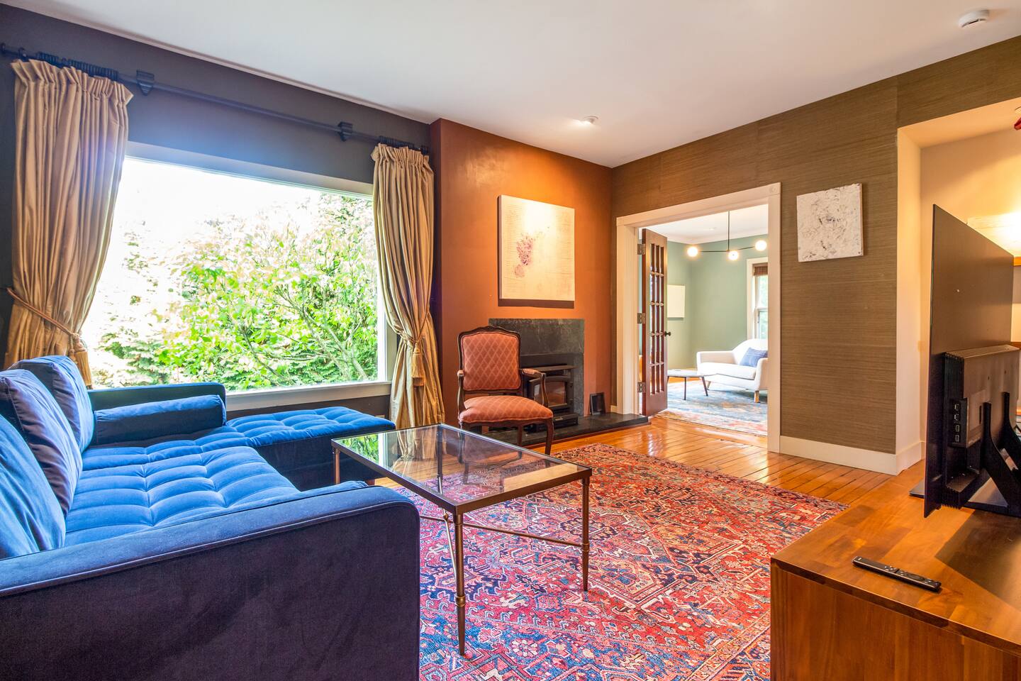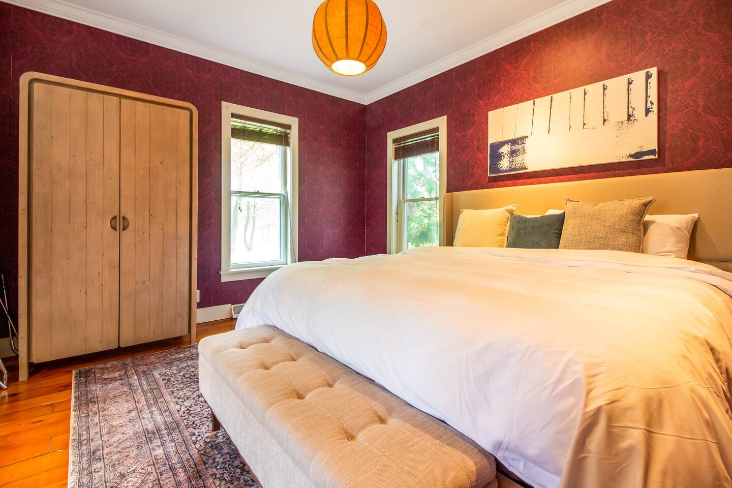 Step inside Grace & Ease, where heritage and heart come together in perfect balance. On the main level, the living room features comfortable seating, a smart TV, and curated artwork, creating the perfect spot to relax after a day exploring the countryside. The dining area sits nearby, ideal for slow dinners and conversation, opening into the gourmet kitchen—a bright and functional space with custom cabinetry, solid oak finishes, and beautiful views of the gardens. A cozy breakfast nook offers a sunny corner to enjoy coffee or tea while taking in the peaceful surroundings. Also on this level, you’ll find the tranquil primary bedroom suite, complete with its own private sitting room. Here, a record player, comfortable seating, and a large picture window create a quiet space for reflection or daydreaming. A full bathroom with modern touches and a laundry area also serve this floor. Upstairs, three inviting guest bedrooms each feature their own personality and cozy charm—perfect for family or friends traveling together. A second full bathroom completes the upper level, providing comfort and convenience for all. Every room at Grace & Ease feels intentional, blending original character with modern comfort, and inviting you to slow down, connect, and fully unwind. Step outside to discover the soul of this property—a spacious yard surrounded by lush, lovingly tended gardens that bloom with life in every season. Wander among flowering trees, peonies, hostas, and a century-old wisteria that drapes gracefully over the landscape. Thoughtful landscaping and mature plantings offer both beauty and privacy, creating a serene environment for morning yoga, reading in the shade, or sunset picnics under the open sky. Grace & Ease isn’t just a place to stay—it’s a place to breathe, reflect, and reconnect with nature’s quiet rhythm. We look forward to welcoming you at Grace & Ease.