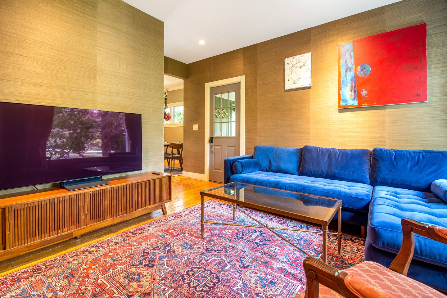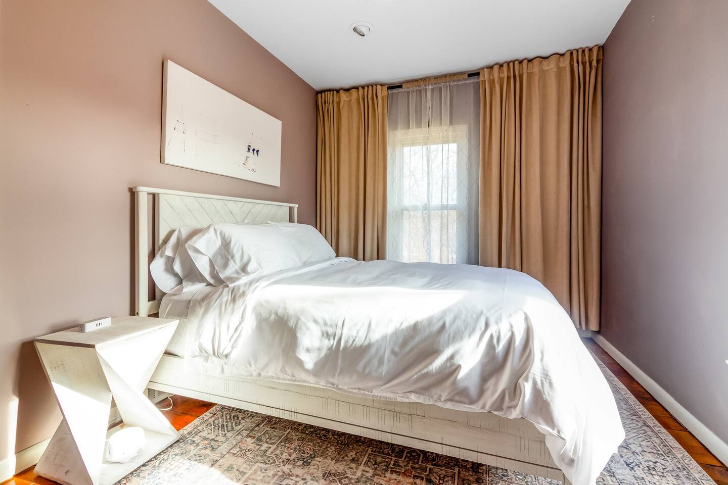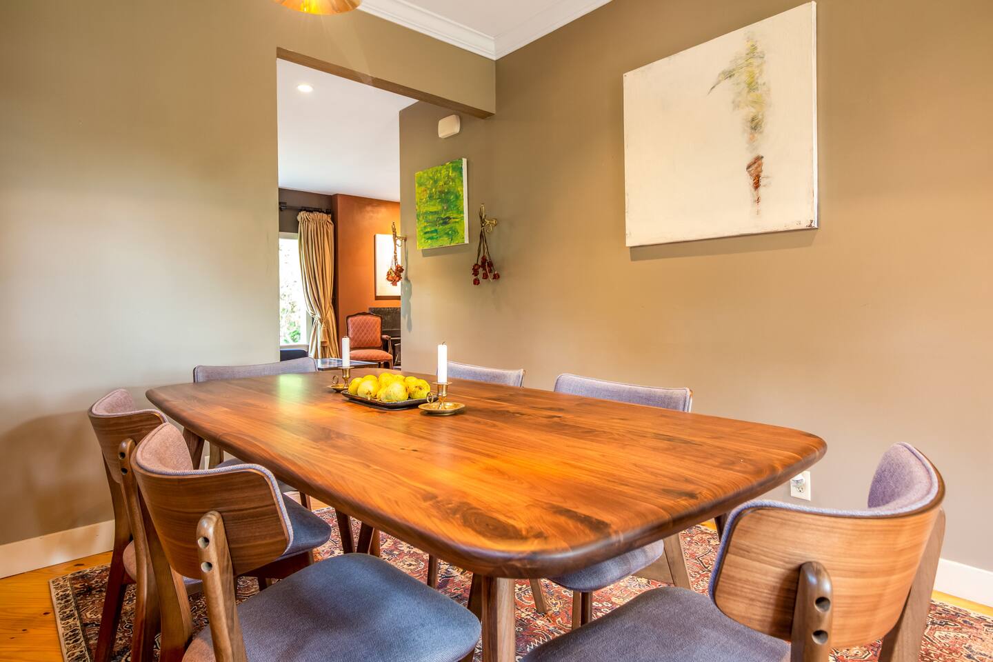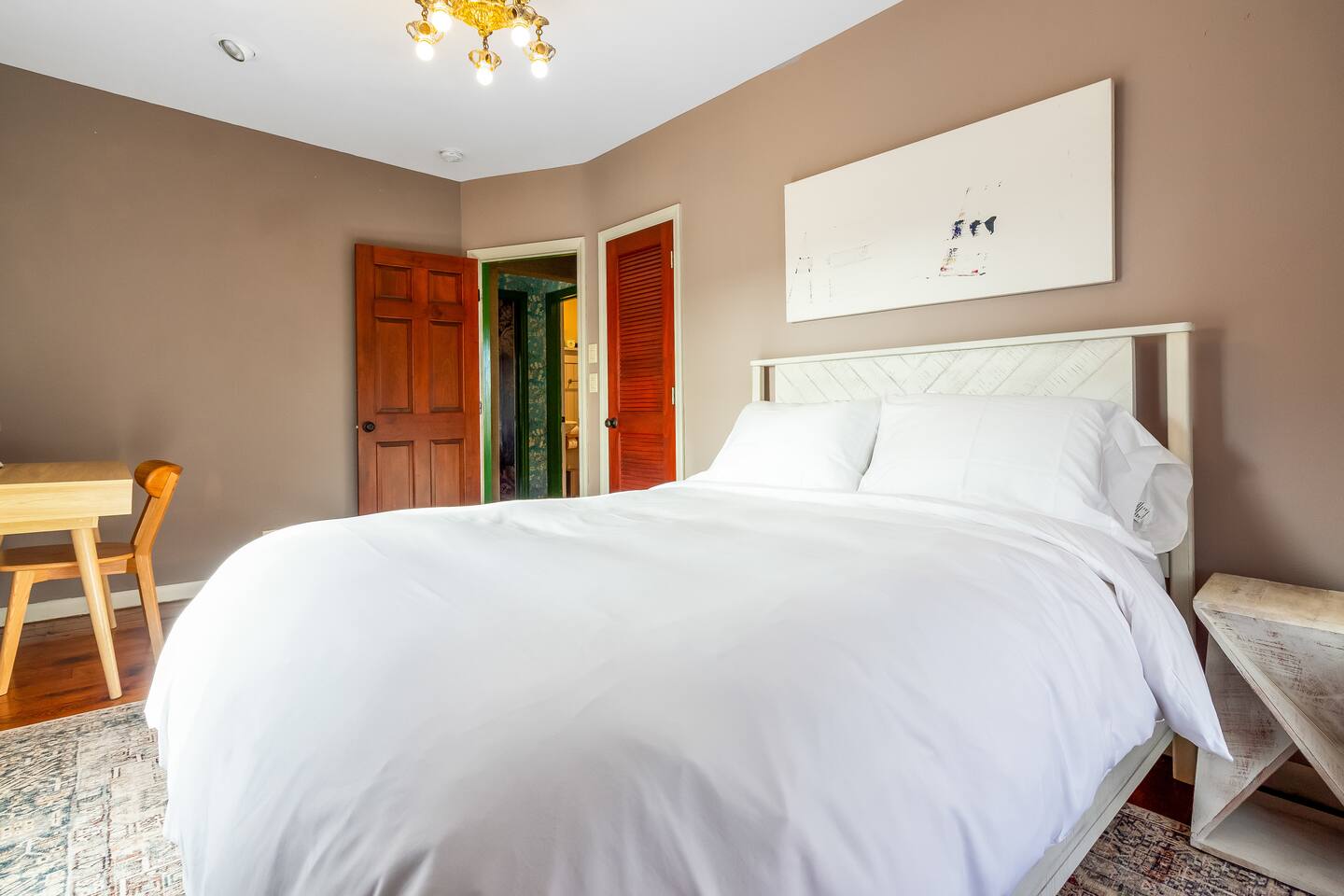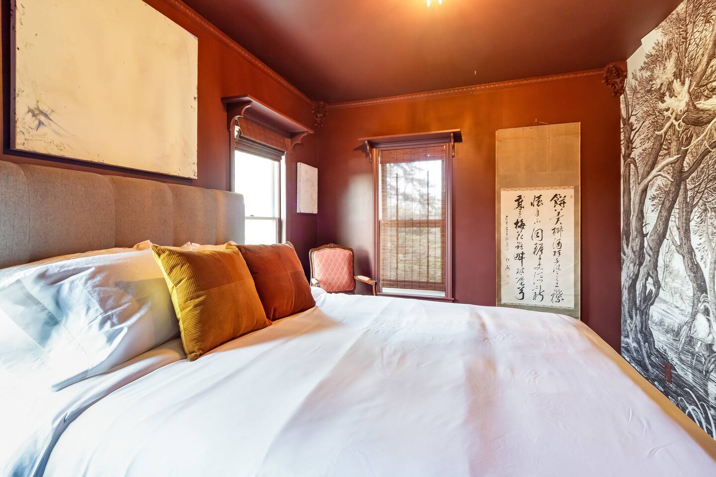 Step inside Grace & Ease, where heritage and heart come together in perfect balance. On the main level, the living room features comfortable seating, a smart TV, and curated artwork, creating the perfect spot to relax after a day exploring the countryside. The dining area sits nearby, ideal for slow dinners and conversation, opening into the gourmet kitchen—a bright and functional space with custom cabinetry, solid oak finishes, and beautiful views of the gardens. A cozy breakfast nook offers a sunny corner to enjoy coffee or tea while taking in the peaceful surroundings. Also on this level, you’ll find the tranquil primary bedroom suite, complete with its own private sitting room. Here, a record player, comfortable seating, and a large picture window create a quiet space for reflection or daydreaming. A full bathroom with modern touches and a laundry area also serve this floor. Upstairs, three inviting guest bedrooms each feature their own personality and cozy charm—perfect for family or friends traveling together. A second full bathroom completes the upper level, providing comfort and convenience for all. Every room at Grace & Ease feels intentional, blending original character with modern comfort, and inviting you to slow down, connect, and fully unwind. Step outside to discover the soul of this property—a spacious yard surrounded by lush, lovingly tended gardens that bloom with life in every season. Wander among flowering trees, peonies, hostas, and a century-old wisteria that drapes gracefully over the landscape. Thoughtful landscaping and mature plantings offer both beauty and privacy, creating a serene environment for morning yoga, reading in the shade, or sunset picnics under the open sky. Grace & Ease isn’t just a place to stay—it’s a place to breathe, reflect, and reconnect with nature’s quiet rhythm. We look forward to welcoming you at Grace & Ease.