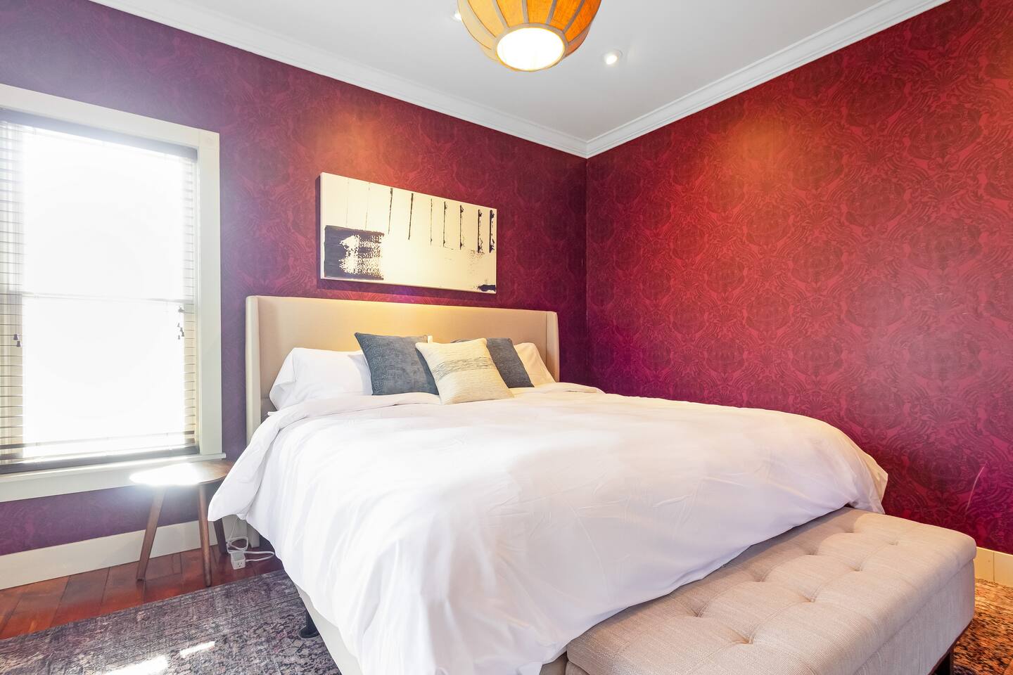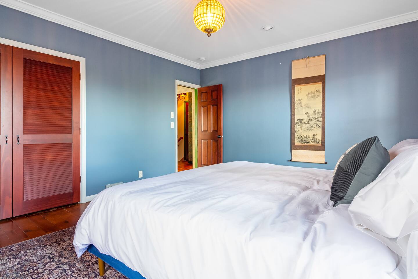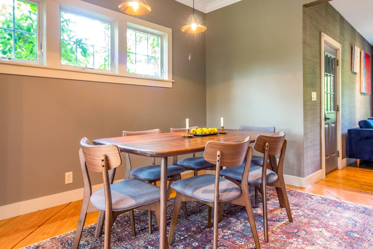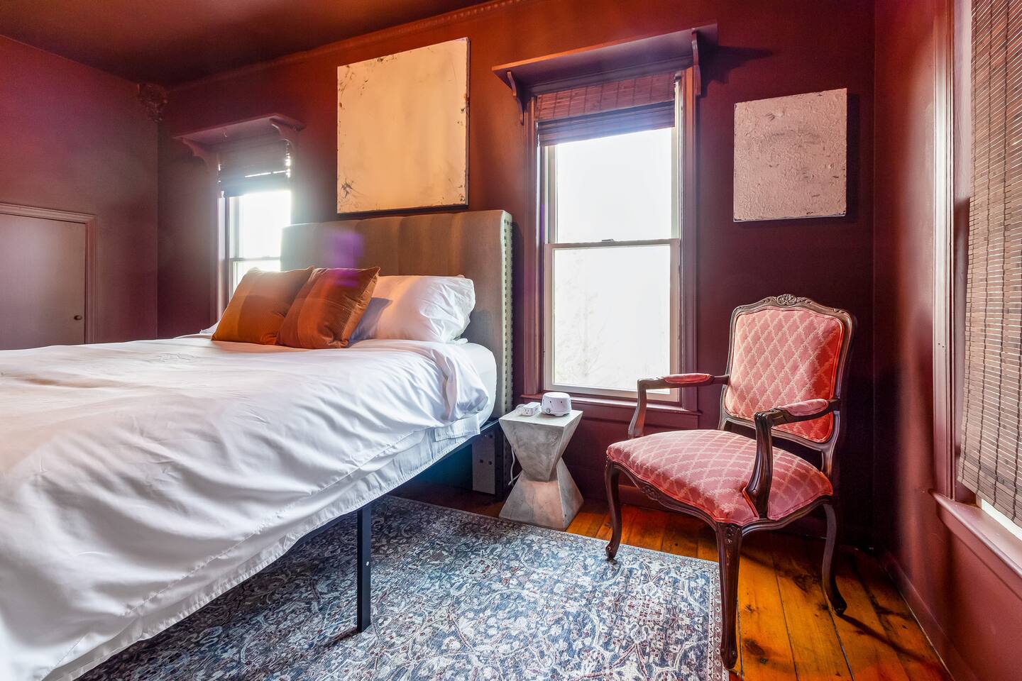 Step inside Grace & Ease, where heritage and heart come together in perfect balance. On the main level, the living room features comfortable seating, a smart TV, and curated artwork, creating the perfect spot to relax after a day exploring the countryside. The dining area sits nearby, ideal for slow dinners and conversation, opening into the gourmet kitchen—a bright and functional space with custom cabinetry, solid oak finishes, and beautiful views of the gardens. A cozy breakfast nook offers a sunny corner to enjoy coffee or tea while taking in the peaceful surroundings. Also on this level, you’ll find the tranquil primary bedroom suite, complete with its own private sitting room. Here, a record player, comfortable seating, and a large picture window create a quiet space for reflection or daydreaming. A full bathroom with modern touches and a laundry area also serve this floor. Upstairs, three inviting guest bedrooms each feature their own personality and cozy charm—perfect for family or friends traveling together. A second full bathroom completes the upper level, providing comfort and convenience for all. Every room at Grace & Ease feels intentional, blending original character with modern comfort, and inviting you to slow down, connect, and fully unwind. Step outside to discover the soul of this property—a spacious yard surrounded by lush, lovingly tended gardens that bloom with life in every season. Wander among flowering trees, peonies, hostas, and a century-old wisteria that drapes gracefully over the landscape. Thoughtful landscaping and mature plantings offer both beauty and privacy, creating a serene environment for morning yoga, reading in the shade, or sunset picnics under the open sky. Grace & Ease isn’t just a place to stay—it’s a place to breathe, reflect, and reconnect with nature’s quiet rhythm. We look forward to welcoming you at Grace & Ease.