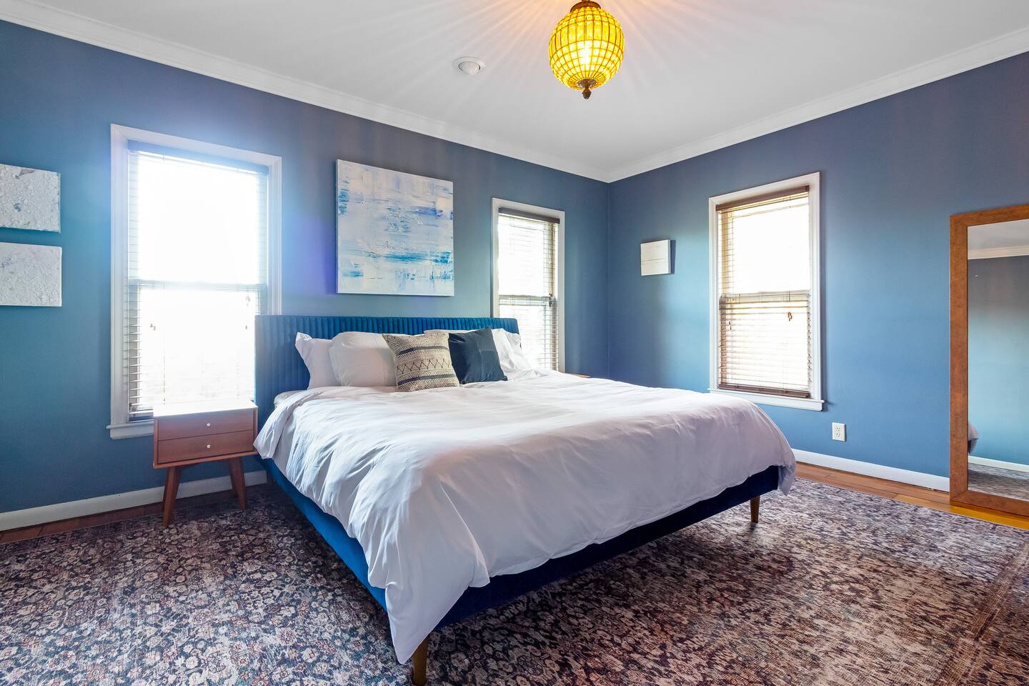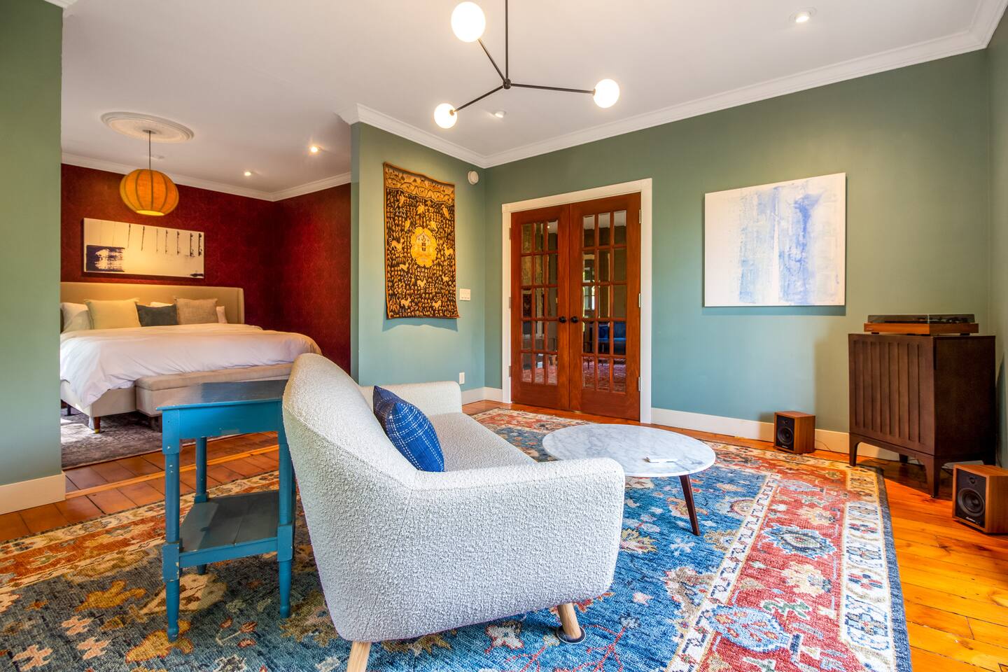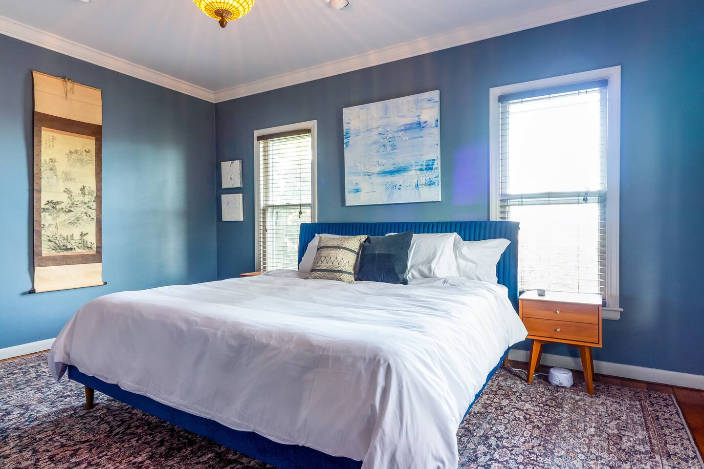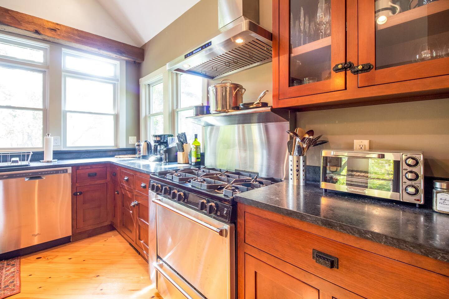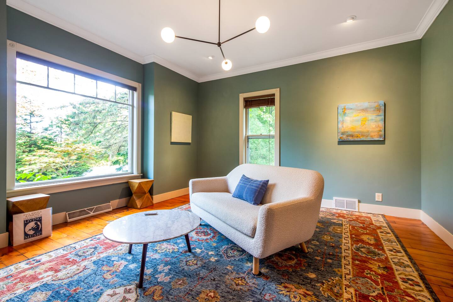 Step inside Grace & Ease, where heritage and heart come together in perfect balance. On the main level, the living room features comfortable seating, a smart TV, and curated artwork, creating the perfect spot to relax after a day exploring the countryside. The dining area sits nearby, ideal for slow dinners and conversation, opening into the gourmet kitchen—a bright and functional space with custom cabinetry, solid oak finishes, and beautiful views of the gardens. A cozy breakfast nook offers a sunny corner to enjoy coffee or tea while taking in the peaceful surroundings. Also on this level, you’ll find the tranquil primary bedroom suite, complete with its own private sitting room. Here, a record player, comfortable seating, and a large picture window create a quiet space for reflection or daydreaming. A full bathroom with modern touches and a laundry area also serve this floor. Upstairs, three inviting guest bedrooms each feature their own personality and cozy charm—perfect for family or friends traveling together. A second full bathroom completes the upper level, providing comfort and convenience for all. Every room at Grace & Ease feels intentional, blending original character with modern comfort, and inviting you to slow down, connect, and fully unwind. Step outside to discover the soul of this property—a spacious yard surrounded by lush, lovingly tended gardens that bloom with life in every season. Wander among flowering trees, peonies, hostas, and a century-old wisteria that drapes gracefully over the landscape. Thoughtful landscaping and mature plantings offer both beauty and privacy, creating a serene environment for morning yoga, reading in the shade, or sunset picnics under the open sky. Grace & Ease isn’t just a place to stay—it’s a place to breathe, reflect, and reconnect with nature’s quiet rhythm. We look forward to welcoming you at Grace & Ease.