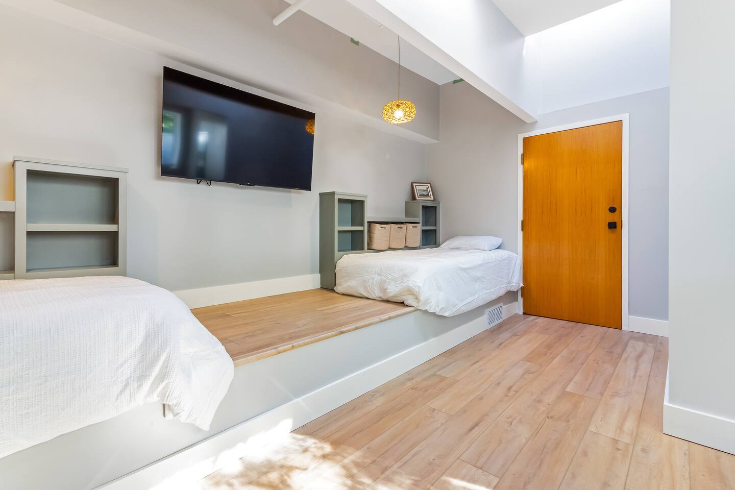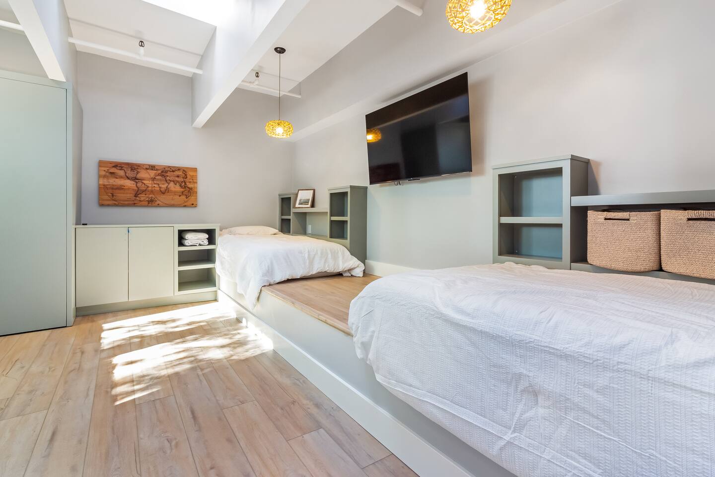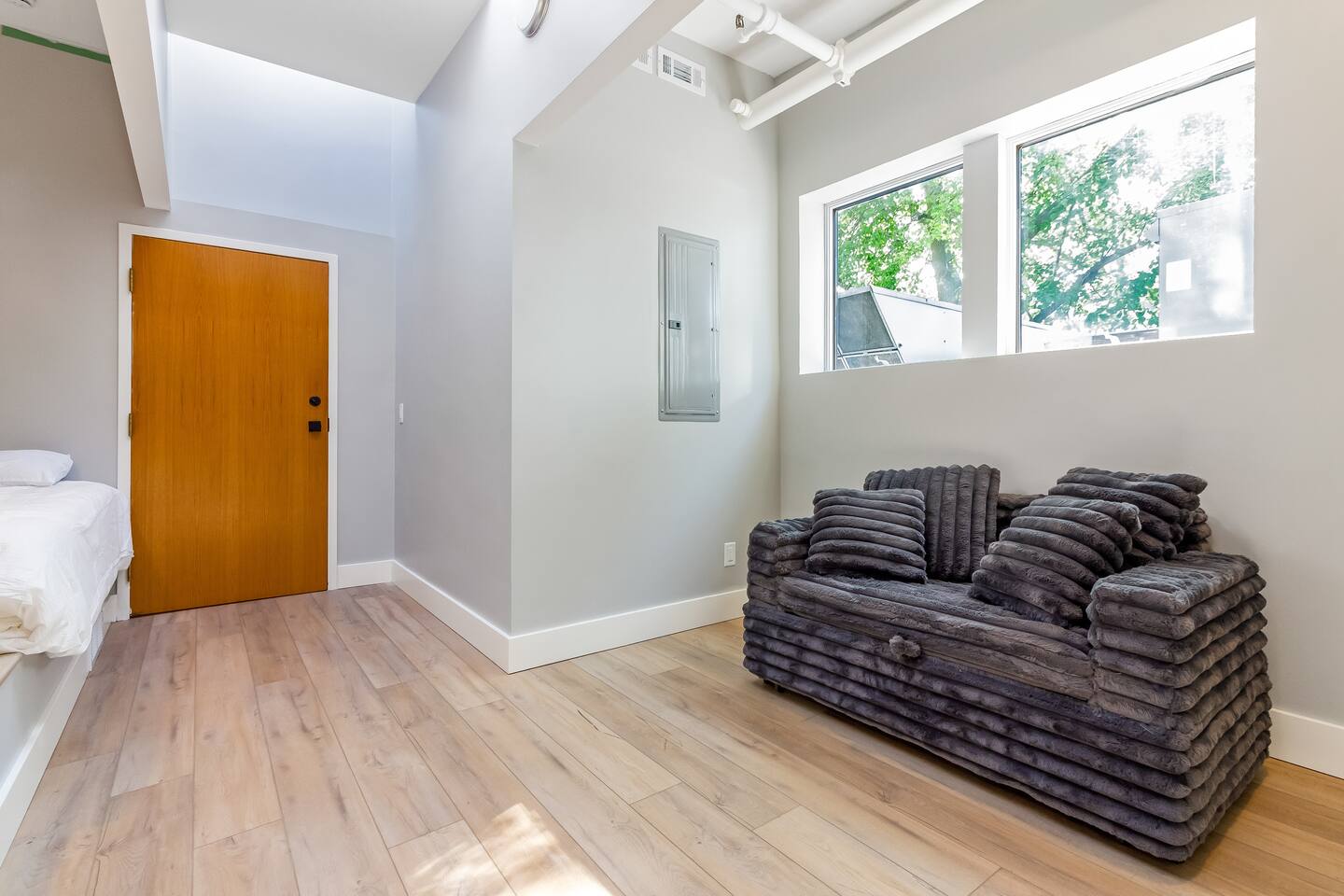 You will enjoy private access to the entire upper level during your stay. The street entrance is shared with the restaurant below (Noble Twist). All doors are keyless entry, and the codes will be shared the day before your arrival.