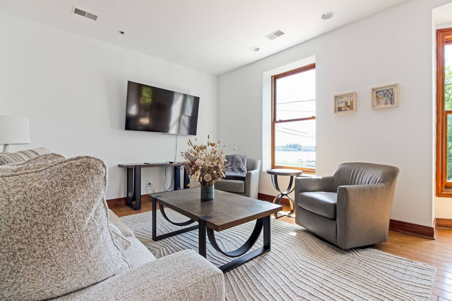 Perfect for larger groups, this unique offering combines two stylish downtown Saugatuck lofts—one 4BR/3BA and one 2BR/1BA—located just across the hall. Together, they comfortably host families or friends with 6 bedrooms and 4 bathrooms total. Enjoy water views, spacious living areas, and modern comforts, all just steps from shops, galleries, and restaurants. Includes 4 dedicated parking spaces—an unbeatable location for your group getaway.