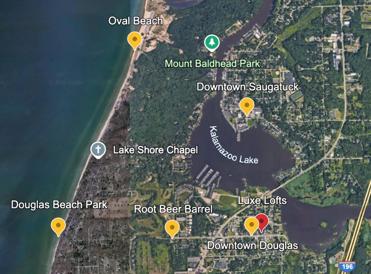Enjoy exclusive access to two private, designer lofts—each with its own entrance and separated only by a private exterior breezeway. The Luxe Loft Collection encompasses both units on the entire upper two floors of the 3-story building right in the middle of the action in Downtown Douglas. This setup is ideal for groups who want to stay close while still enjoying space to spread out and unwind in total comfort. Together, the property comfortably accommodates up to 16 guests with 7 total bedrooms, including 6 king beds and 2 queen daybeds. Each unit features a thoughtful layout with: ✔️ A main-floor primary bedroom with en-suite bathroom ✔️ A second main-floor bedroom with a Jack-and-Jill bathroom also accessible from the open kitchen/living area ✔️ Additional sleeping spaces upstairs, located in spacious, semi-private lofts with comfortable lounge and sleep areas See each unit individually here: https://airbnb.com/h/downtown-loft-deux https://airbnb.com/h/downtown-loft-douglas What You’ll Love: ✔️ Expansive, open-concept layouts with soaring ceilings, oversized windows, and abundant natural light ✔️ Two fully stocked kitchens—perfect for preparing group meals or easy snacking ✔️ Ultra-comfy beds, premium linens, and stylish, curated interiors designed for rest and relaxation ✔️ Incredible location—in the heart of Douglas and walkable to the best dining, coffee, boutiques, galleries, and waterfront ✔️ Pet-friendly accommodations—bring your pup along for the adventure! ✔️ Smart TVs, fast Wi-Fi, and plenty of space for work, play, or downtime Location Highlights: 📍 In downtown Douglas 📍 Just 1 mile from Saugatuck 📍 15 minutes to Holland 📍 Beaches, wineries, hiking trails, and more just a short drive away This is a rare opportunity to enjoy two beautifully designed lofts, side by side, for your next gathering. Whether you’re planning a multi-family vacation, a group retreat, or a weekend celebration, you’ll find the perfect blend of space, style, comfort, and convenience right here in the heart of West Michigan. Book your stay today—this setup is one-of-a-kind!