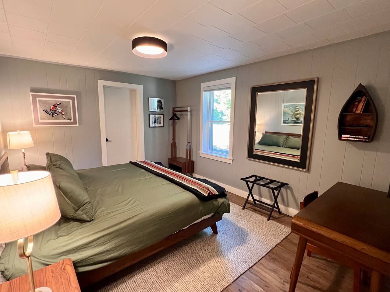 This charming, quaint home has been lovingly renovated, comfortably furnished and tastefully decorated. The outdoor space is an ever-evolving, wonderful space where you can relax on the patio or keep warm by the campfire. This is an ideal space for a romantic getaway, family vacation or a beer tasting weekend with friends! You will have full and private access to the entire property during your stay. Both bedrooms are equipped with plush King beds and blackout blinds to ensure a comfortable night’s sleep. The living room can serve as a third sleeping area, as the sofabed has a full-sized and very comfortable memory foam mattress. There is also a pack-n-play available in case you are bringing an infant. The kitchen is well-equipped with everything you need to cook up delicious meals, including the basics like cooking oil, salt & pepper. The adjacent dining table seats 4 and can be extended to seat 6. Outside on the back porch, you’ll find shaded cafe and lounge seating, with a gas grill and picnic table just steps below on the patio. Here is where we almost always dine, relax and entertain in the summer months. Spend the evening cooking dinner or relaxing and playing board games under the stars! Just off the patio is the outdoor living room with comfortable lounge seating. Beyond that, you’ll find a fire pit with 4 Adirondacks and a fully-fenced in back yard. The property itself is very private, with almost a full acre of land. For entertainment, there are board games, puzzles, a record player and more. There is a 50-in smart TV in the living room, as well as a 42-in smart TV in both bedrooms, all equipped to stream all your favorites. If you leave the property to explore the local area, you'll find fabulous restaurants and abundant activities all around. We'll be happy to recommend our favorites! Maple's Manor is located: - 1 mi from the Saugatuck waterfront - 1 mi from Downtown Douglas - 3 mi from Oval Beach (Lake Michigan) - 4 mi from Saugatuck Dunes State Park - 11 mi from Downtown Holland We adore our cottage and hope you will love and respect it as much as we do. We’re excited to have you stay with us soon!