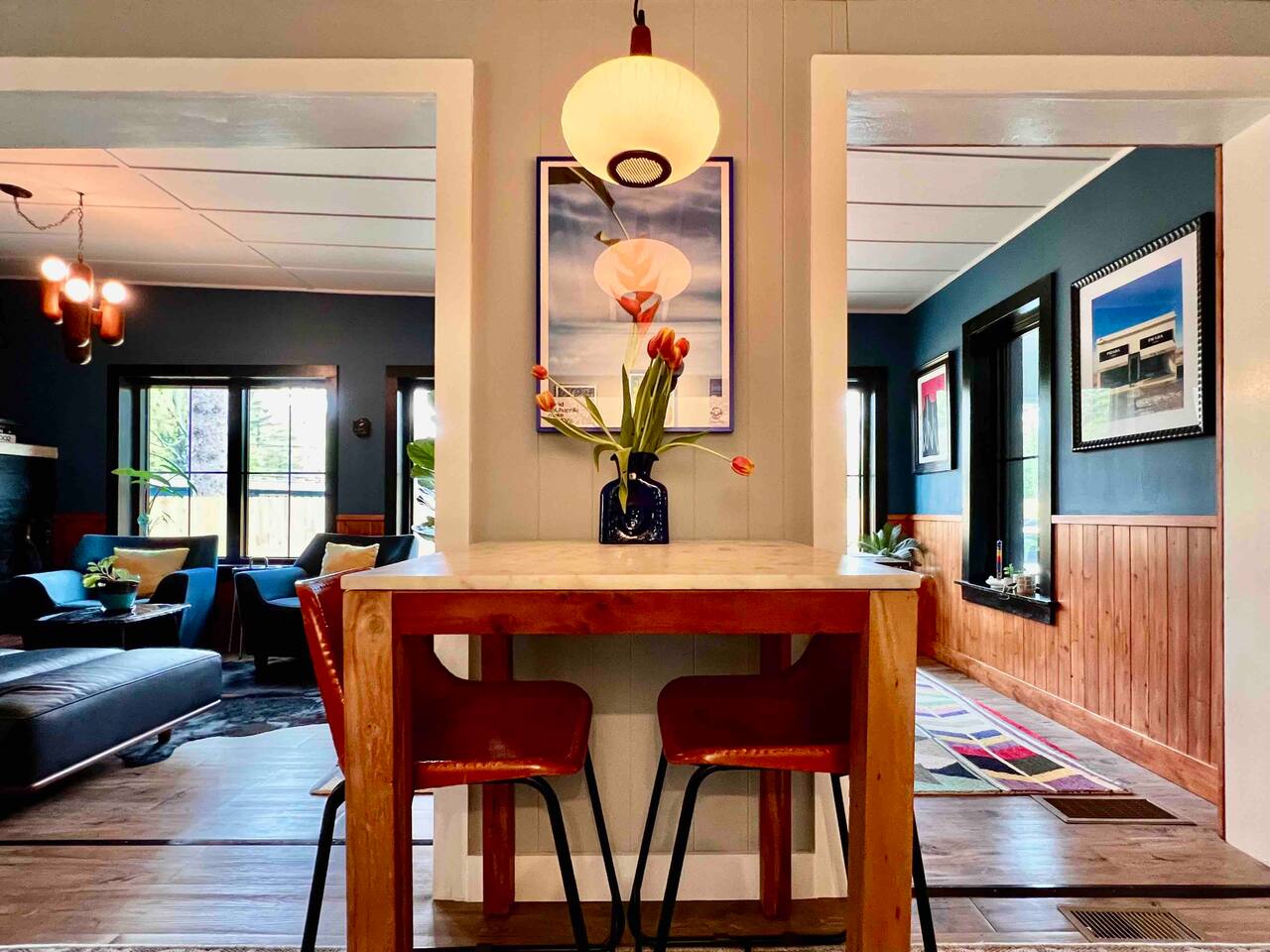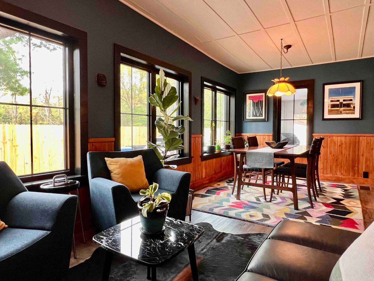 The property is dog-friendly and has a fully fenced-in back yard. You're welcome to bring up to two well-behaved, house-trained dogs along, but please let us know when booking if your pet(s) will be joining you. So that we can continue welcoming dogs to the house, we ask that you please wipe their paws before entering, keep them off furniture, pick up after them, and do not leave them at the house unattended. Please note that a mandatory 5% community tourism fee is added to each reservation to support local tourism efforts.