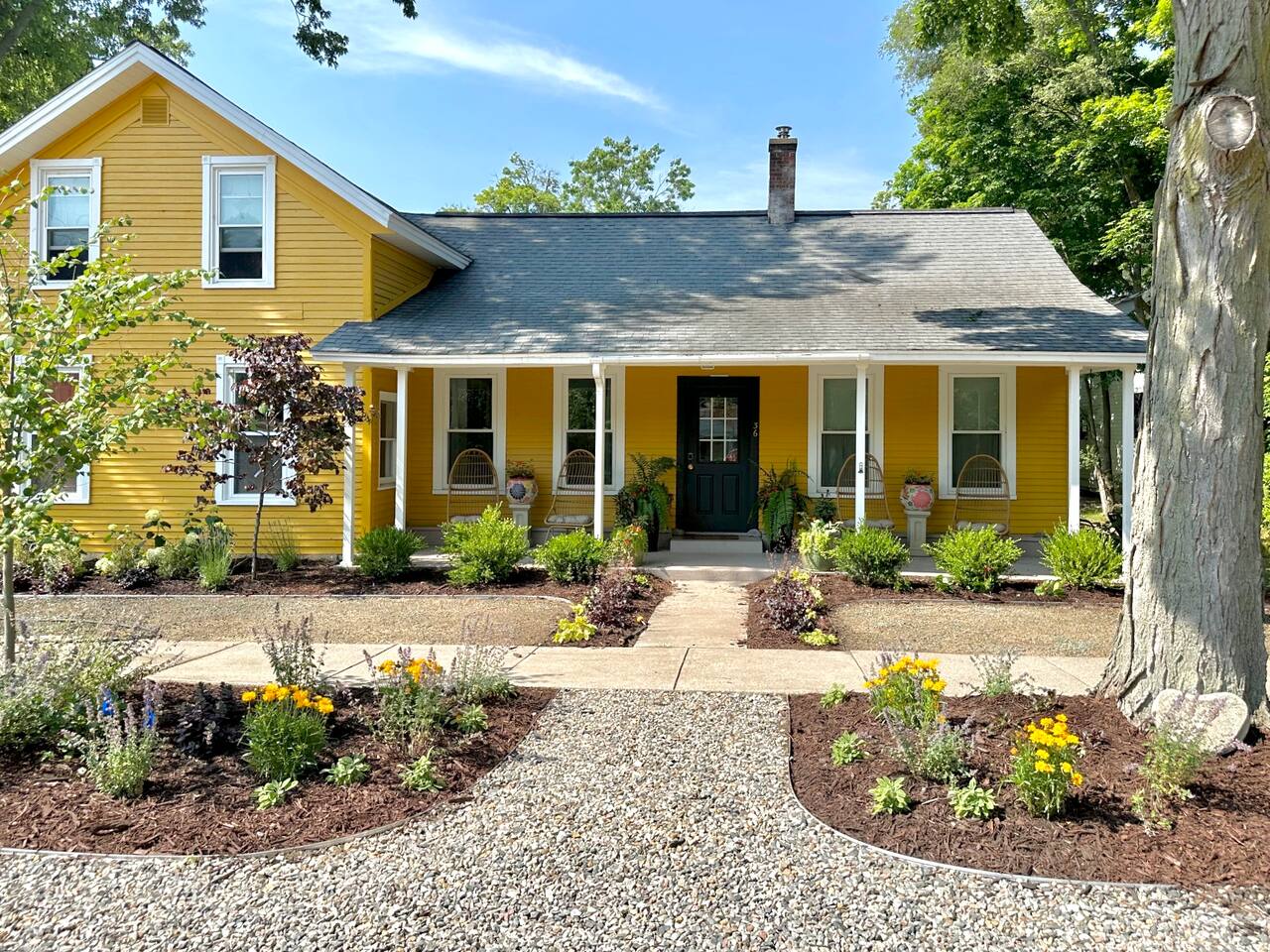 Welcome to Marigold Farmhouse, a cheerful and lovingly preserved retreat nestled in the heart of Douglas. Painted a sunny yellow and exuding warmth from the moment you arrive, this 1870s farmhouse is a true blend of vintage charm and thoughtful modern comfort. Located just minutes from the shores of Lake Michigan and a short stroll to the artful bustle of downtown Douglas and nearby Saugatuck, Marigold Farmhouse invites you to slow down, savor the moments, and feel entirely at home.