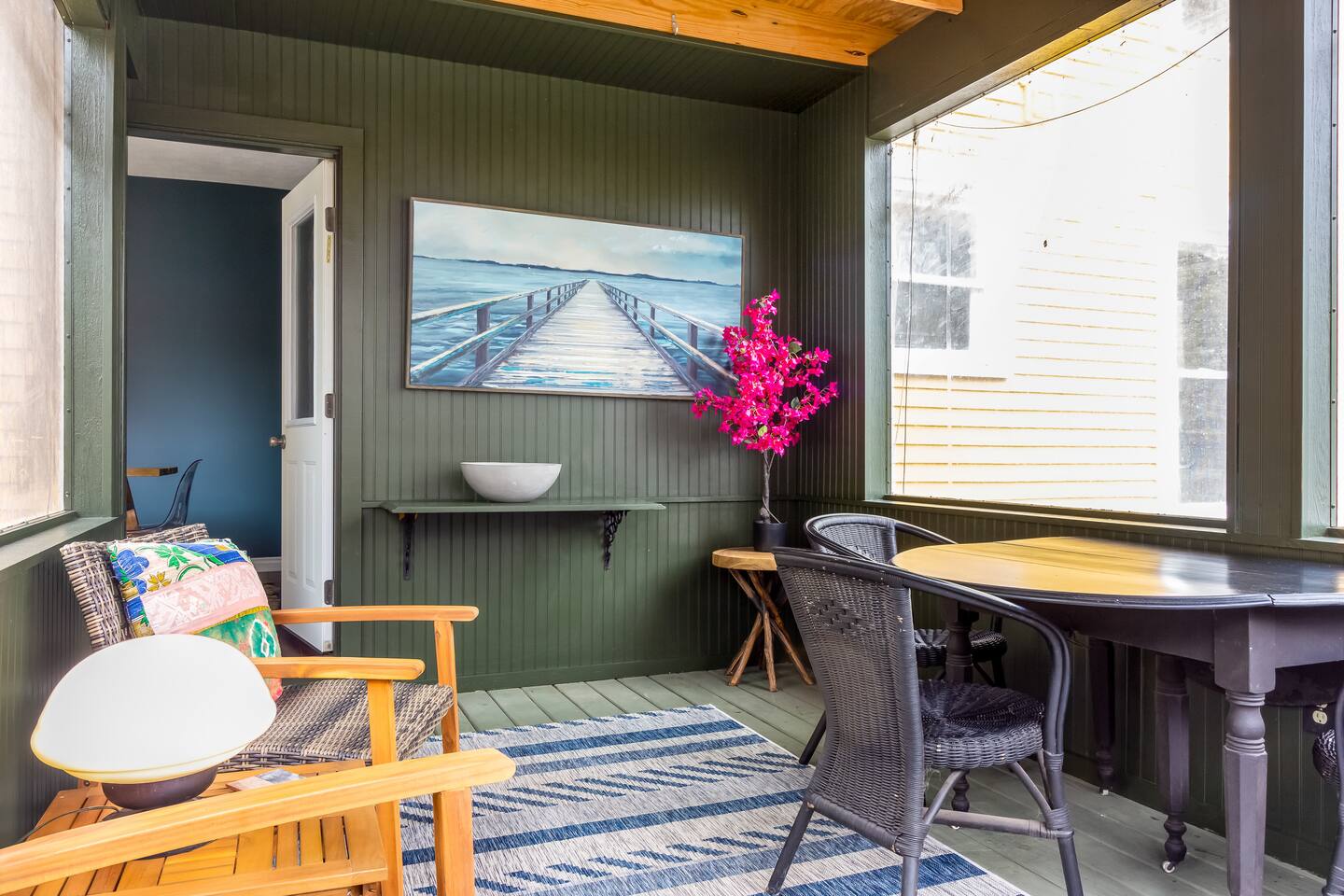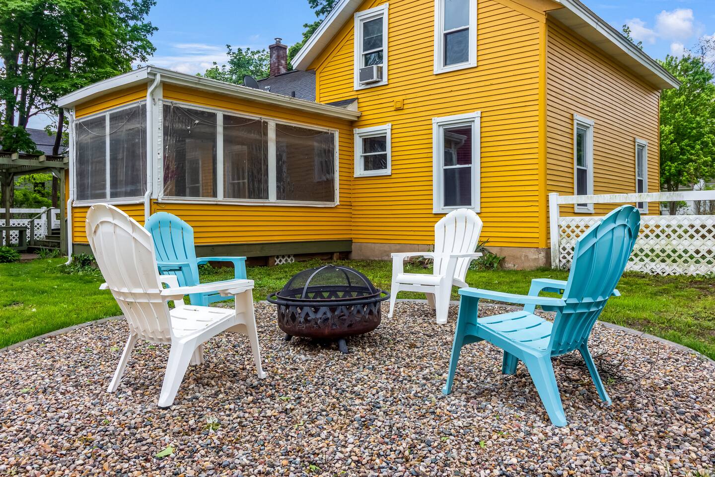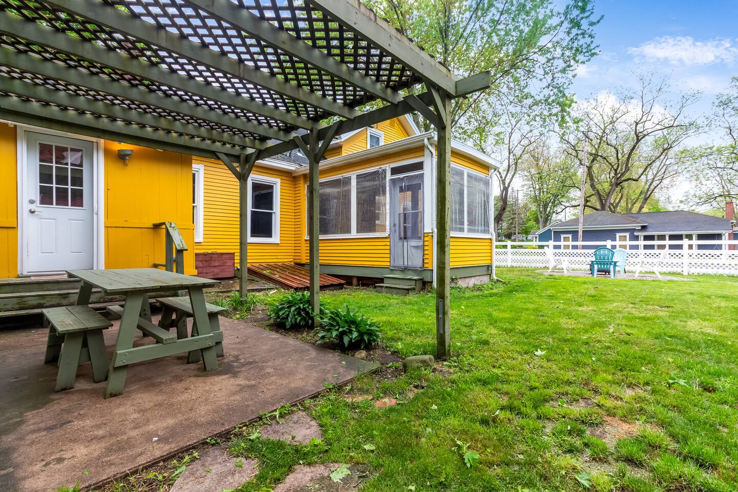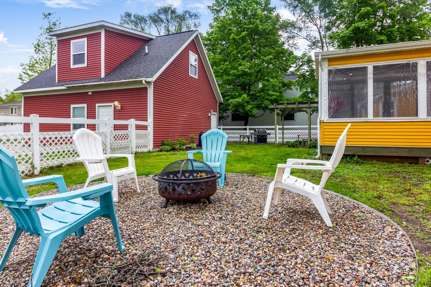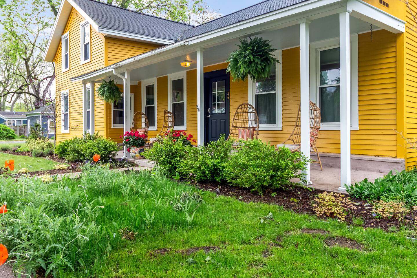 ✨ Highlights: 🛏 4 total bedrooms + sofabed (sleeps up to 9) 🛁 3 full bathrooms 🍳 Two fully equipped kitchens 🌞 Screened-in sunroom + open-concept cottage living 🔥 Fire pit + grill in fenced backyard 🐾 Dog-friendly with fully enclosed outdoor space 📍 Quiet, walkable neighborhood close to shops, dining, and the lake Marigold Farmhouse features three bedrooms, two bathrooms, a spacious kitchen and dining area, and a relaxing sunroom—perfect for larger family meals or cozy nights in. Poppy Cottage, just steps away, offers a private one-bedroom guest house with an open-plan kitchen, living, and dining space, plus a sofabed for extra flexibility. Together, they strike the perfect balance between shared time and personal space. Gather around the fire pit, grill up dinner, or let the dogs roam in the fenced yard. Whether you’re sipping coffee on the porch or catching the sunset after a beach day, Marigold & Poppy makes it easy to relax and reconnect.