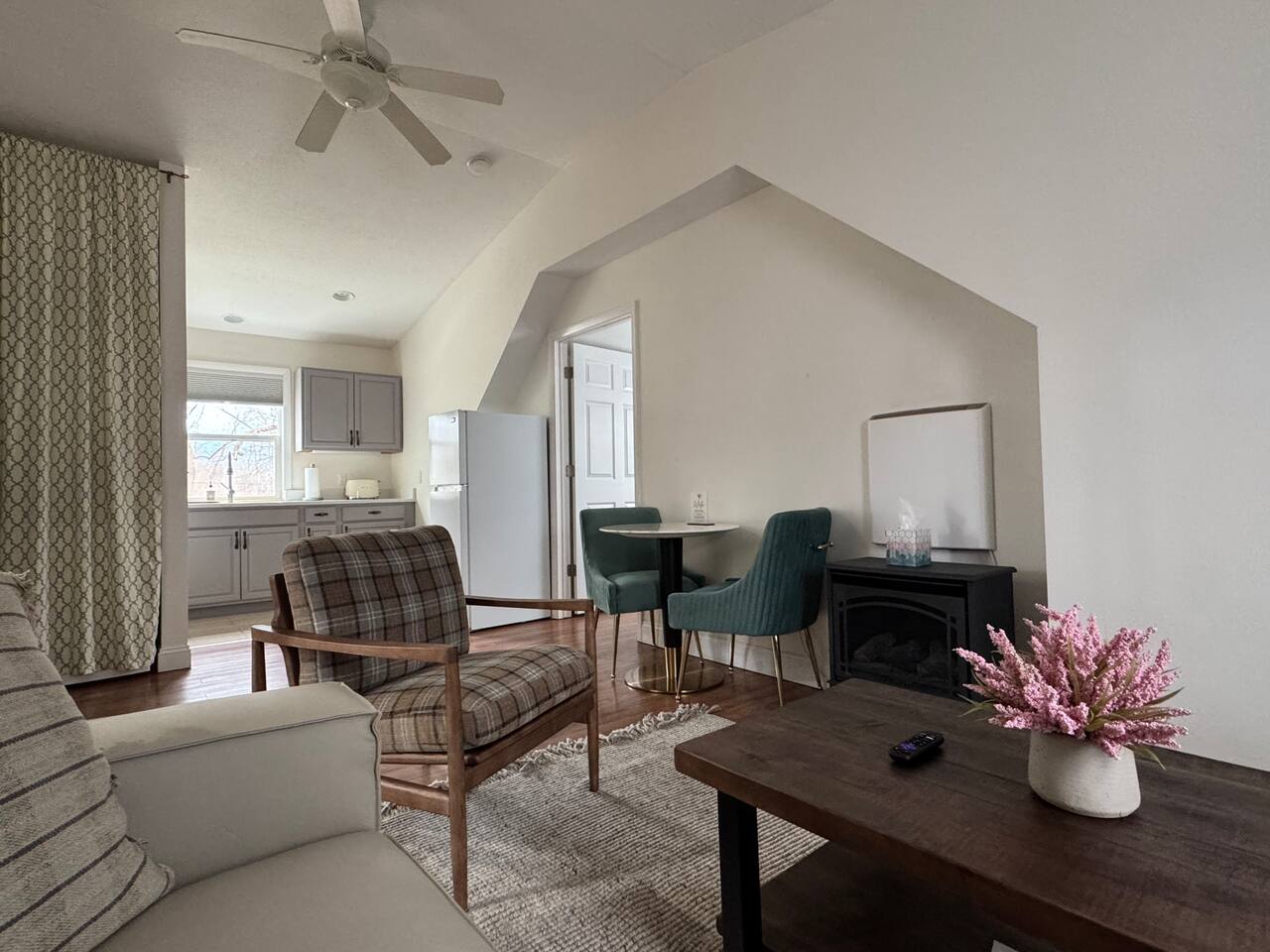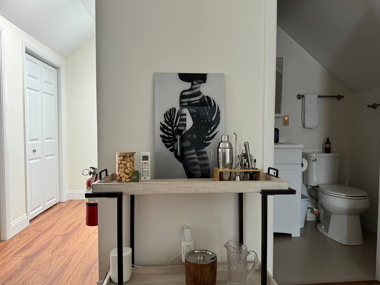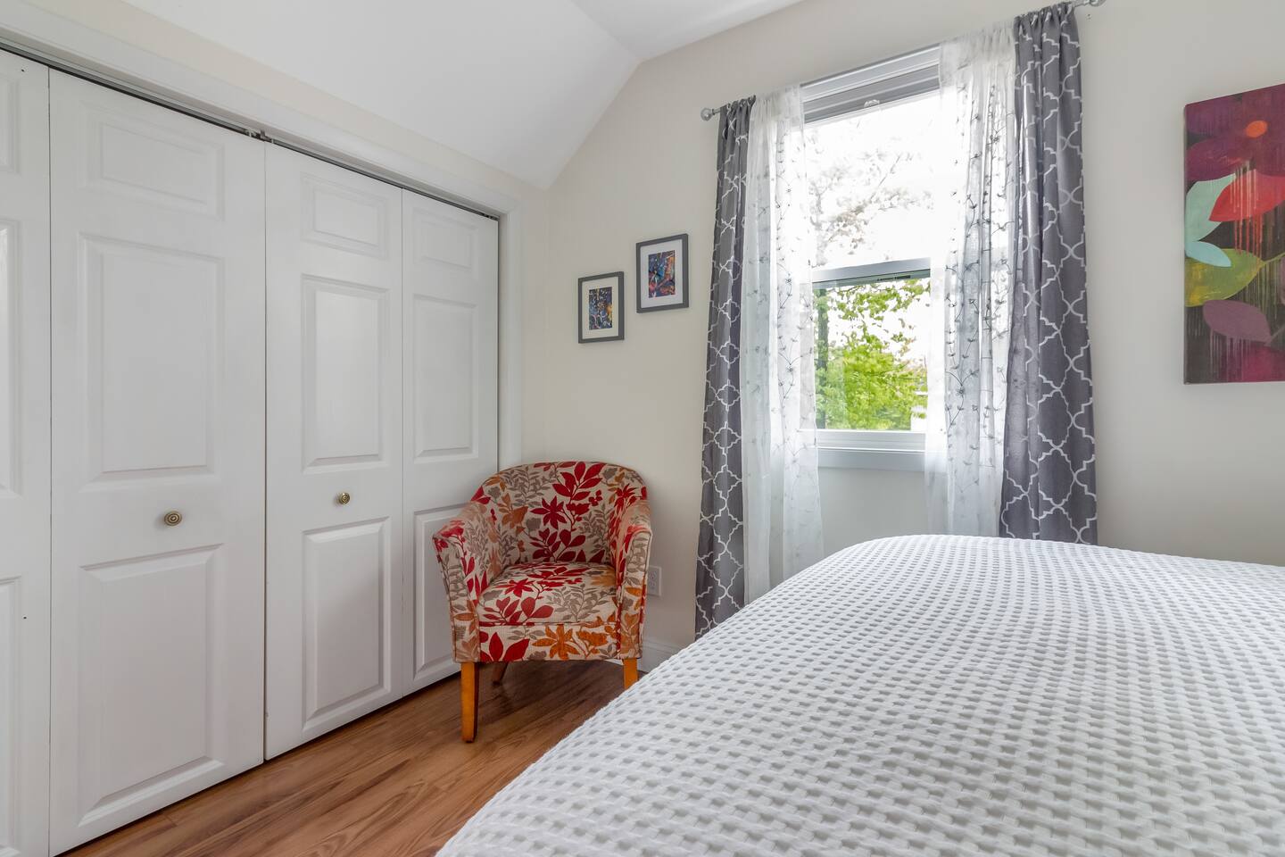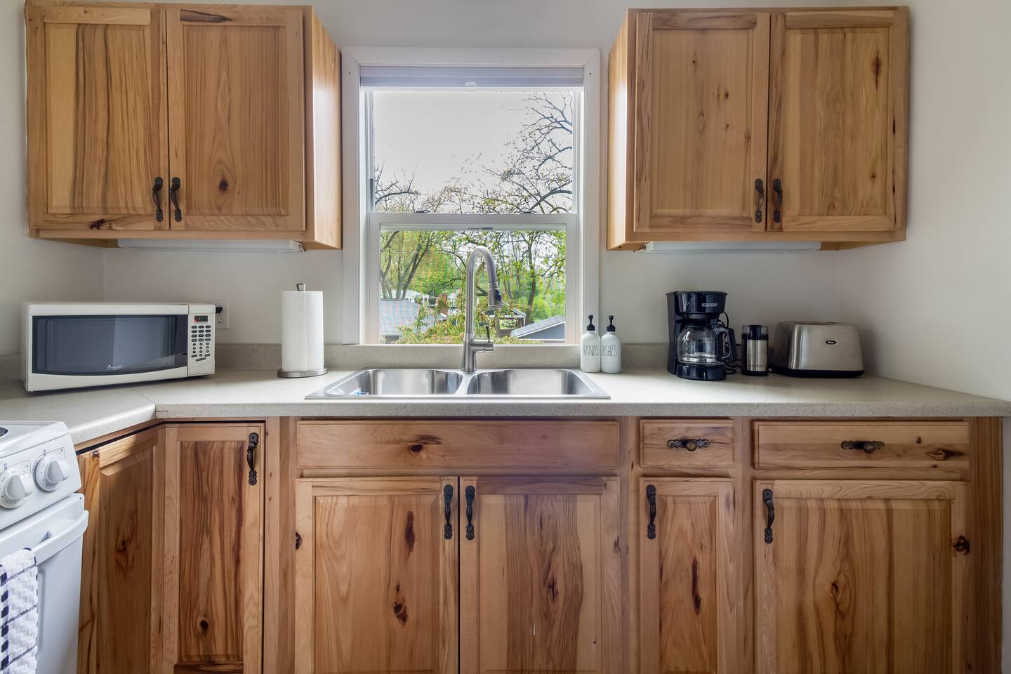 Every inch of this light-filled cottage has been designed for both comfort and simplicity. As you ascend the private staircase to your home-away-from-home, you'll find a quiet sanctuary perched among the trees—separate from the main house, yet part of the warmth of the larger property. Inside, the open-concept living space welcomes you with soft textures, stylish touches, and an easy flow between the kitchen, dining, and lounge areas. The fully equipped kitchen makes it effortless to cook a casual breakfast or prep a picnic for the beach, while the cozy sofa invites you to unwind with a good book or enjoy a movie night after a sun-drenched day on the lake. The private bedroom features a queen bed with crisp linens and plenty of natural light, offering a restful place sto retreat at day’s end. For additional guests, the sofabed in the living room provides a comfortable alternative, making this cottage a flexible and accommodating space. A well-appointed bathroom with fresh towels and essentials ensures your stay is as seamless as it is restful. Thoughtful details throughout the cottage—like soft throws, gentle lighting, and curated touches—bring out the personality and care that make Poppy Cottage feel like more than just a place to stay. Though it’s nestled in a peaceful spot just off the beaten path, Poppy Cottage is wonderfully close to everything. You’re a short walk to the heart of Douglas, where you’ll find local cafés, galleries, and shops, and just a quick drive or bike ride from the iconic dunes and shores of Oval Beach and the charm of nearby Saugatuck. STR Registration #- CR25-039