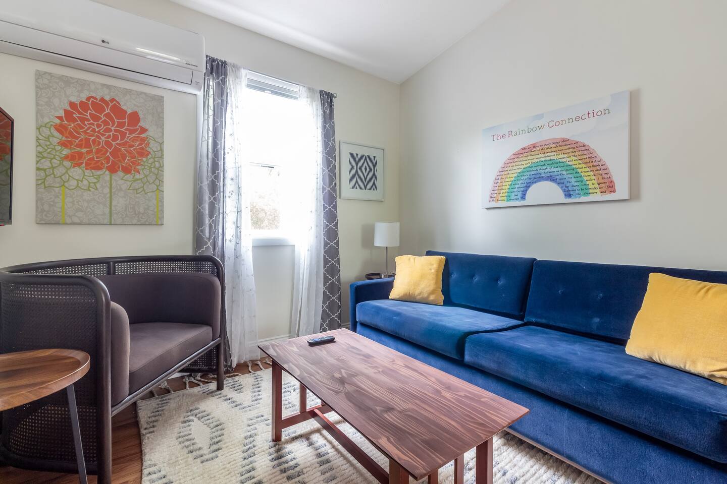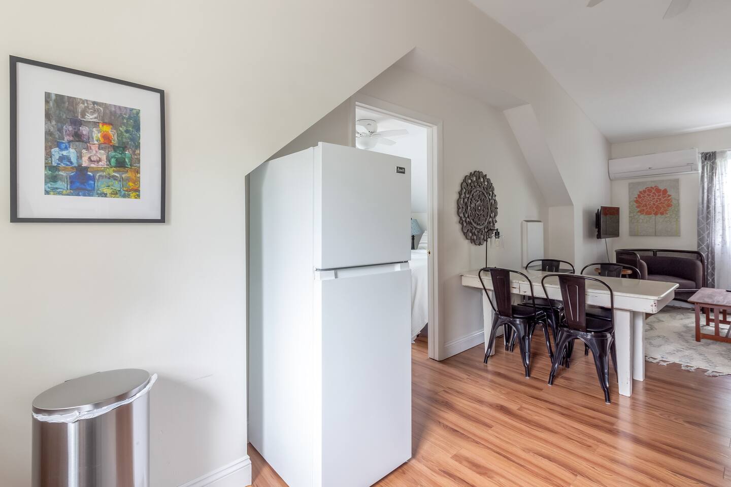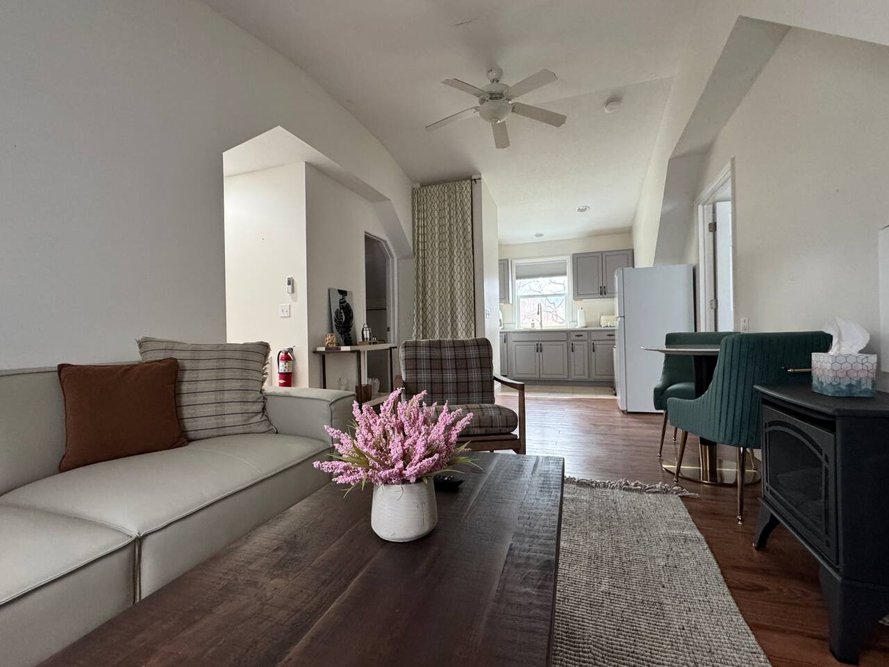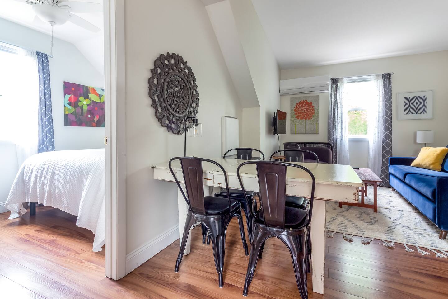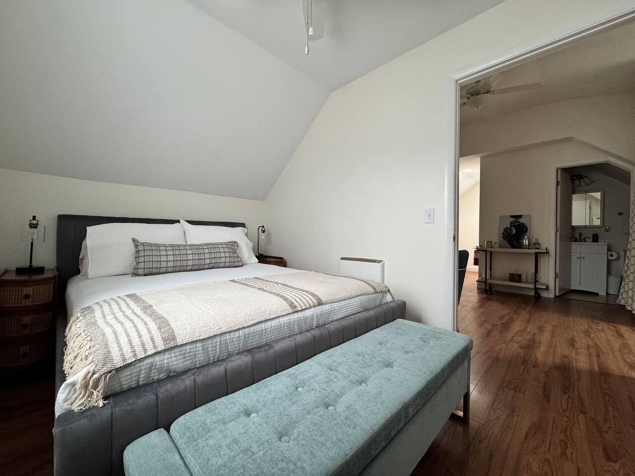 Every inch of this light-filled cottage has been designed for both comfort and simplicity. As you ascend the private staircase to your home-away-from-home, you'll find a quiet sanctuary perched among the trees—separate from the main house, yet part of the warmth of the larger property. Inside, the open-concept living space welcomes you with soft textures, stylish touches, and an easy flow between the kitchen, dining, and lounge areas. The fully equipped kitchen makes it effortless to cook a casual breakfast or prep a picnic for the beach, while the cozy sofa invites you to unwind with a good book or enjoy a movie night after a sun-drenched day on the lake. The private bedroom features a queen bed with crisp linens and plenty of natural light, offering a restful place sto retreat at day’s end. For additional guests, the sofabed in the living room provides a comfortable alternative, making this cottage a flexible and accommodating space. A well-appointed bathroom with fresh towels and essentials ensures your stay is as seamless as it is restful. Thoughtful details throughout the cottage—like soft throws, gentle lighting, and curated touches—bring out the personality and care that make Poppy Cottage feel like more than just a place to stay. Though it’s nestled in a peaceful spot just off the beaten path, Poppy Cottage is wonderfully close to everything. You’re a short walk to the heart of Douglas, where you’ll find local cafés, galleries, and shops, and just a quick drive or bike ride from the iconic dunes and shores of Oval Beach and the charm of nearby Saugatuck. STR Registration #- CR25-039