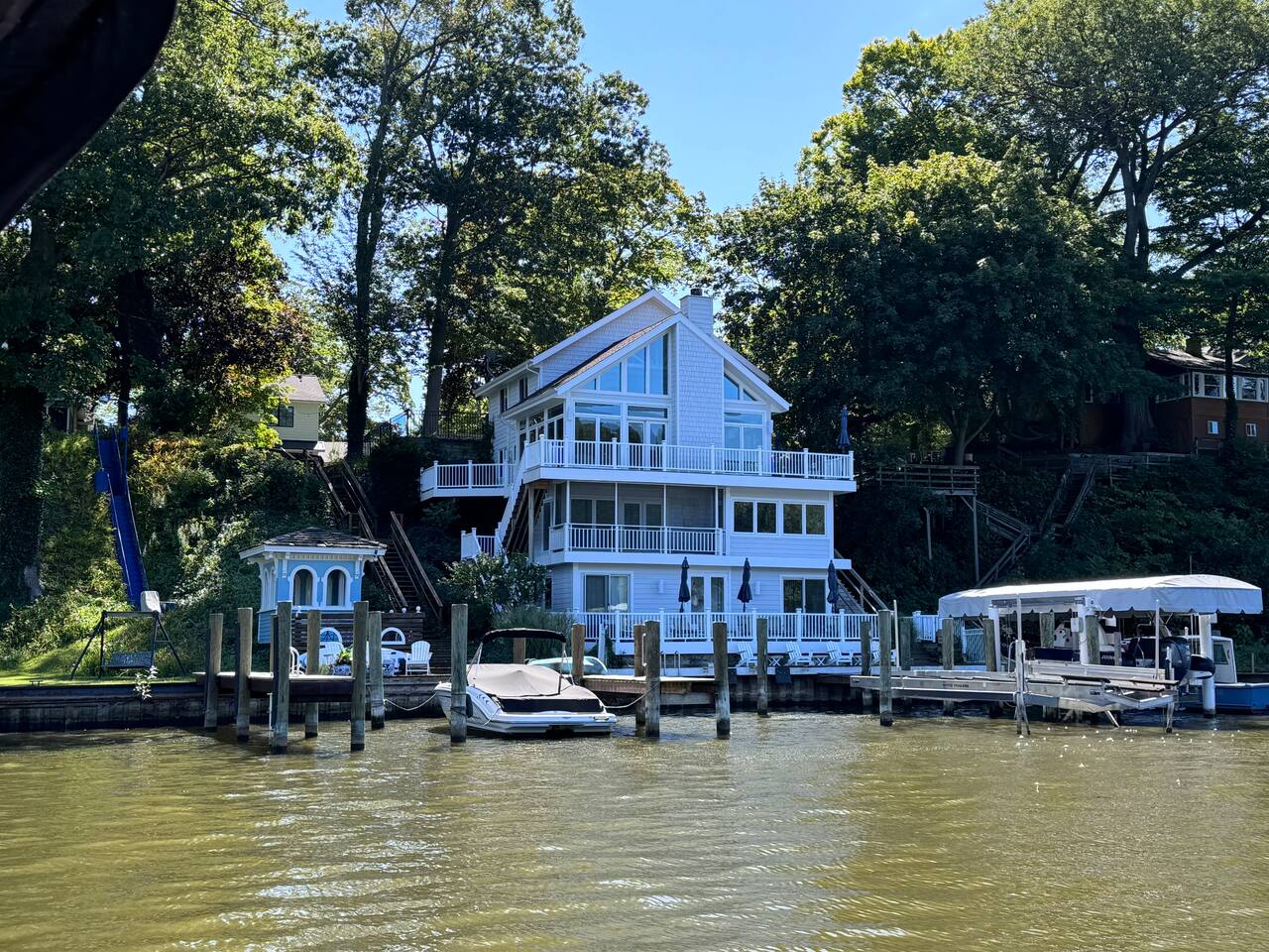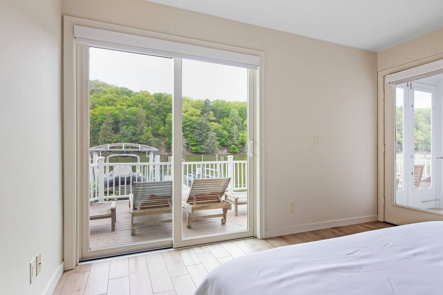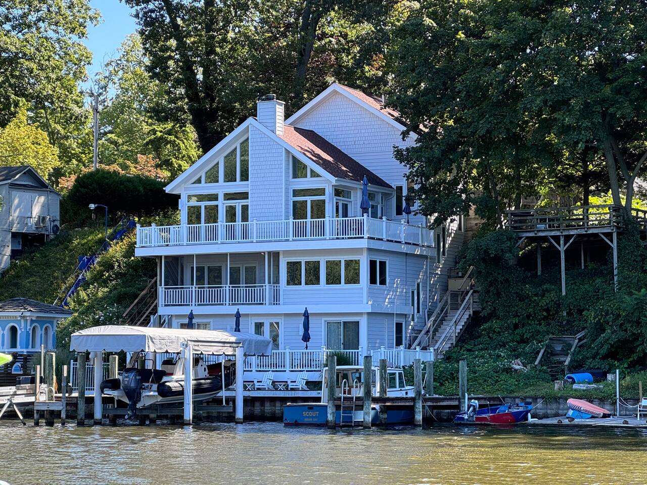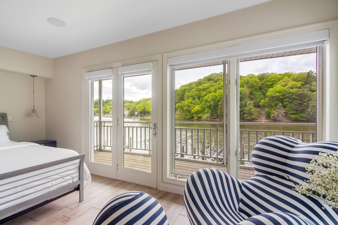 Welcome to The River View Resort, a luxurious multi-level retreat offering stunning riverfront views and the perfect blend of comfort and style. Designed with relaxation and connection in mind, this spacious home is ideal for families or groups looking to immerse themselves in the beauty of Saugatuck. The main living area is currently under a complete renovation and will be finished before May! Guests enter on the top floor, greeted by panoramic river views through expansive windows. Descend to the main living level, where a gourmet kitchen awaits, equipped with everything needed to prepare memorable meals. This floor also features two outdoor dining areas, a wraparound balcony, and a convenient half bath. The next level is home to the serene primary bedroom with a plush king bed, en-suite bathroom, and private balcony overlooking the water. A second sleeping area on this floor offers added flexibility, and the laundry room ensures convenience during your stay. One floor down, you'll find another bedroom with its own en-suite bathroom, plus two additional bedrooms with direct access to the large lower deck and waterfront. These two bedrooms share a hall bathroom, creating a comfortable space for rest and relaxation. The River House boasts multiple balconies and decks, each offering the best river views in all of Saugatuck! The large lower deck provides direct access to the waterfront, perfect for soaking in the natural beauty, enjoying morning coffee, or gathering with loved ones as the sun sets over the river. Nestled on the shores of the river, the house is just a short walk to downtown Saugatuck, where you’ll find charming shops, galleries, and award-winning restaurants. Explore nearby beaches, hiking trails, and water activities for a truly unforgettable stay. The property is located: - A 3-minute walk to the Southerner restaurant - A 10-minute walk to the shops and restaurants in downtown Saugatuck - 2 miles from downtown Douglas - 4 miles from Oval Beach - 4 miles from Saugatuck Dunes State Park We’ve designed this home to feel like a true retreat—whether you’re dining alfresco, relaxing in the elegant living spaces, or waking up to river views from every room, this is a place to create lasting memories. We can’t wait to host you! Registration Number CSTR-240067