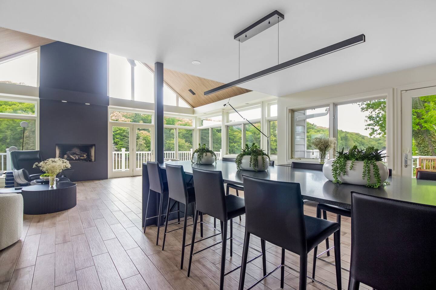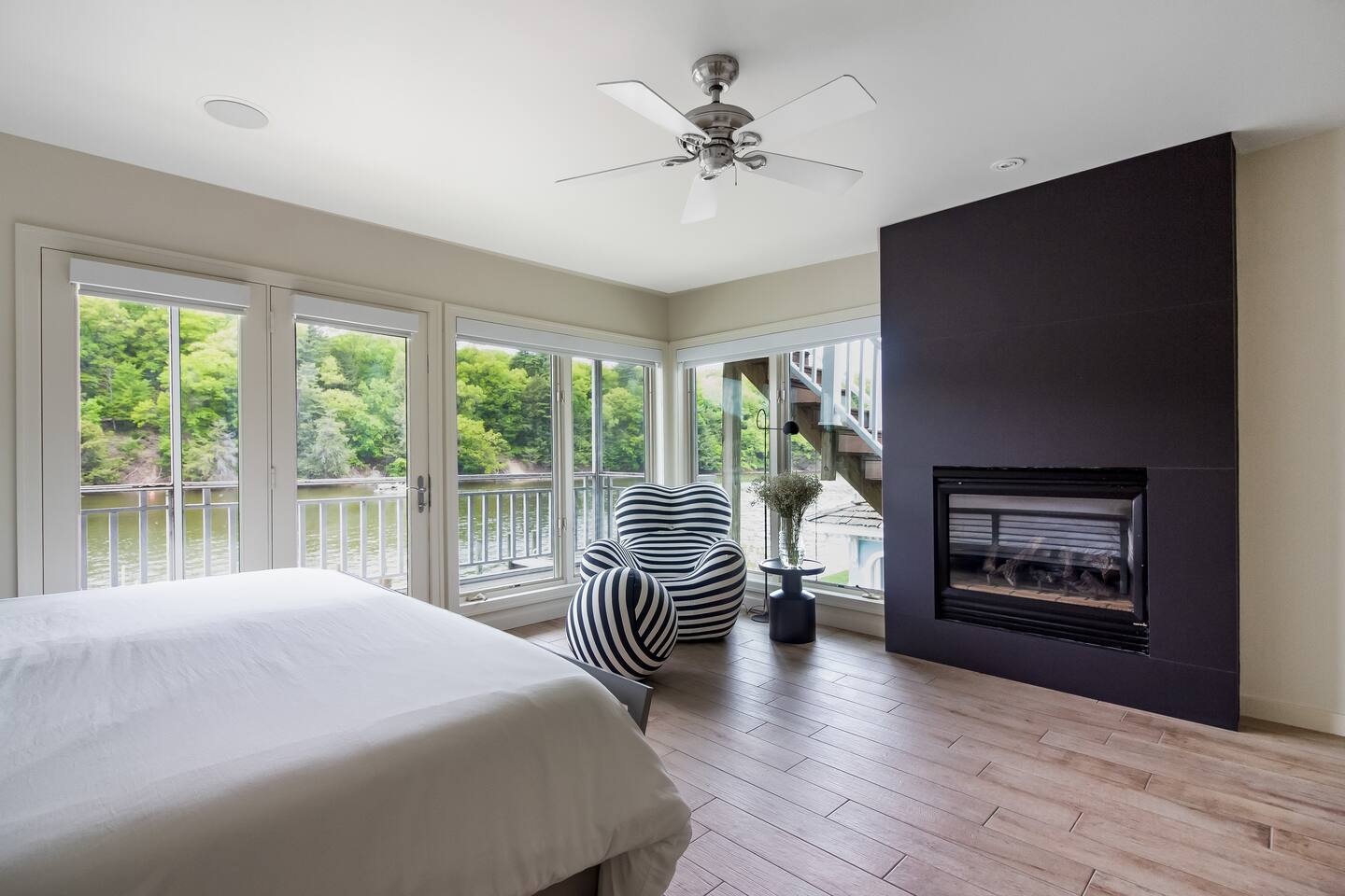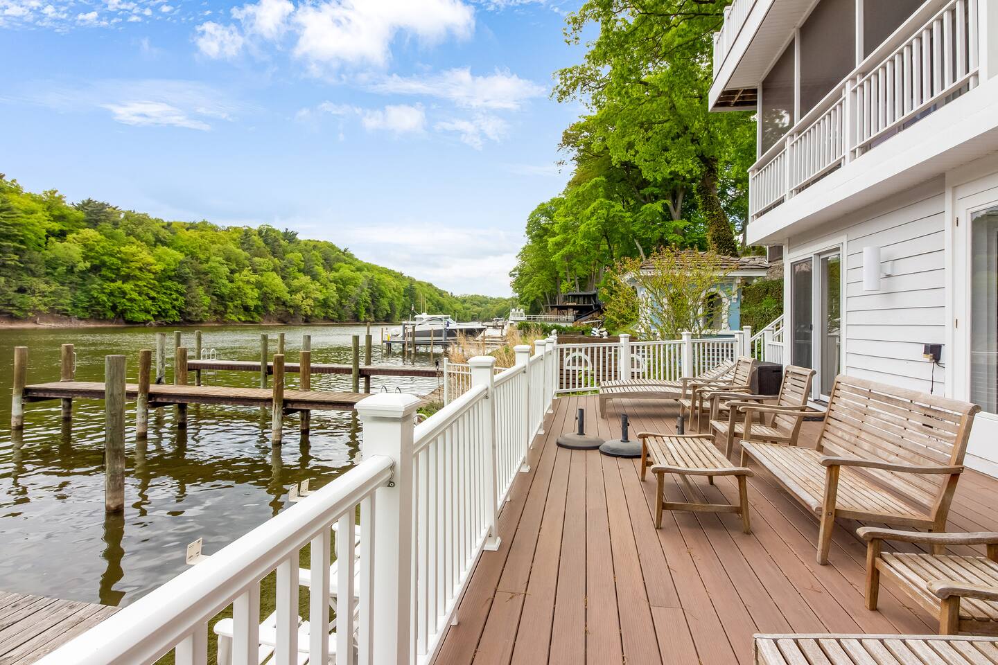Welcome to The River View Resort, a luxurious multi-level retreat offering stunning riverfront views and the perfect blend of comfort and style. Designed with relaxation and connection in mind, this spacious home is ideal for families or groups looking to immerse themselves in the beauty of Saugatuck. The main living area is currently under a complete renovation and will be finished before May! Guests enter on the top floor, greeted by panoramic river views through expansive windows. Descend to the main living level, where a gourmet kitchen awaits, equipped with everything needed to prepare memorable meals. This floor also features two outdoor dining areas, a wraparound balcony, and a convenient half bath. The next level is home to the serene primary bedroom with a plush king bed, en-suite bathroom, and private balcony overlooking the water. A second sleeping area on this floor offers added flexibility, and the laundry room ensures convenience during your stay. One floor down, you'll find another bedroom with its own en-suite bathroom, plus two additional bedrooms with direct access to the large lower deck and waterfront. These two bedrooms share a hall bathroom, creating a comfortable space for rest and relaxation. The River House boasts multiple balconies and decks, each offering the best river views in all of Saugatuck! The large lower deck provides direct access to the waterfront, perfect for soaking in the natural beauty, enjoying morning coffee, or gathering with loved ones as the sun sets over the river. Nestled on the shores of the river, the house is just a short walk to downtown Saugatuck, where you’ll find charming shops, galleries, and award-winning restaurants. Explore nearby beaches, hiking trails, and water activities for a truly unforgettable stay. The property is located: - A 3-minute walk to the Southerner restaurant - A 10-minute walk to the shops and restaurants in downtown Saugatuck - 2 miles from downtown Douglas - 4 miles from Oval Beach - 4 miles from Saugatuck Dunes State Park We’ve designed this home to feel like a true retreat—whether you’re dining alfresco, relaxing in the elegant living spaces, or waking up to river views from every room, this is a place to create lasting memories. We can’t wait to host you! Registration Number CSTR-240067