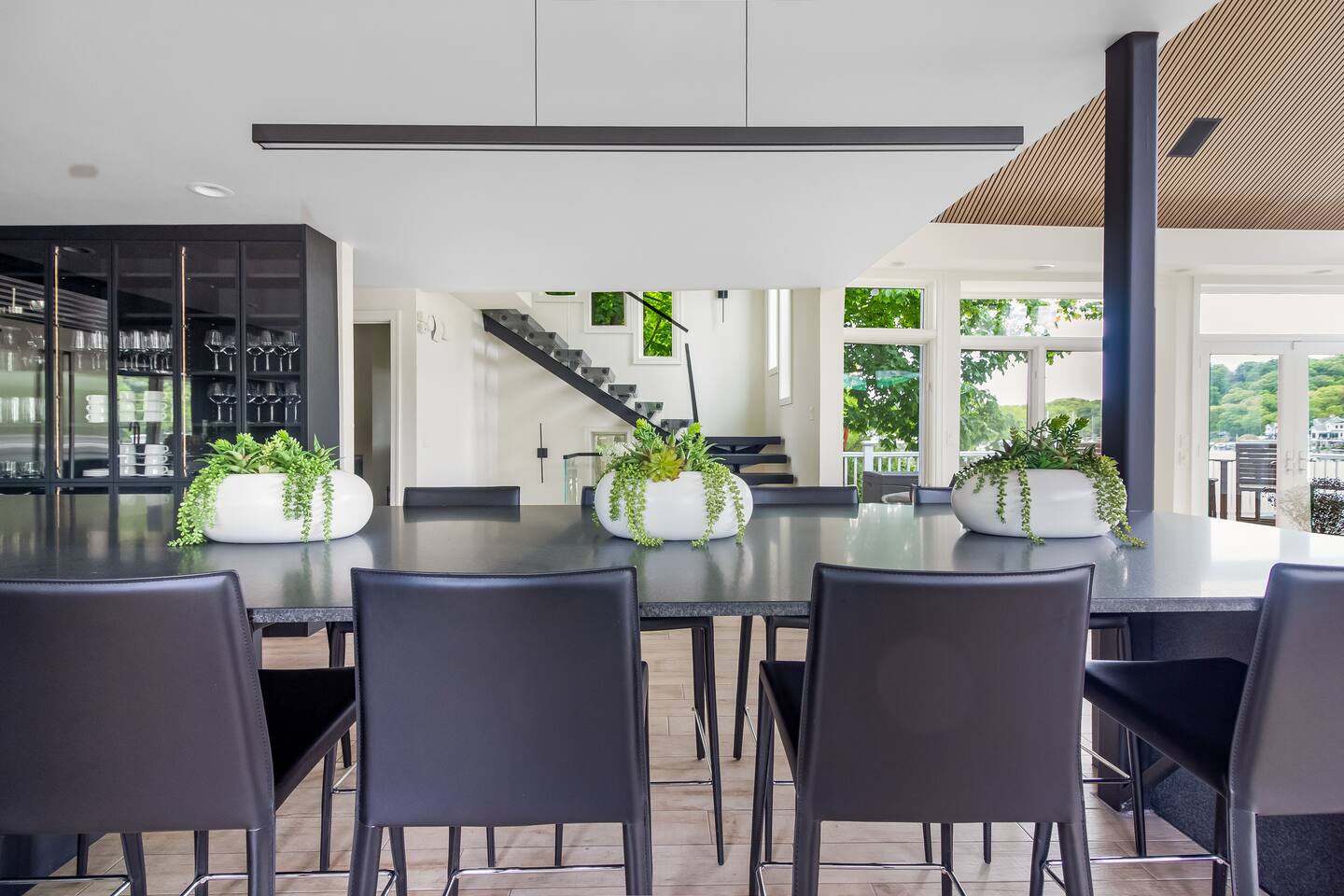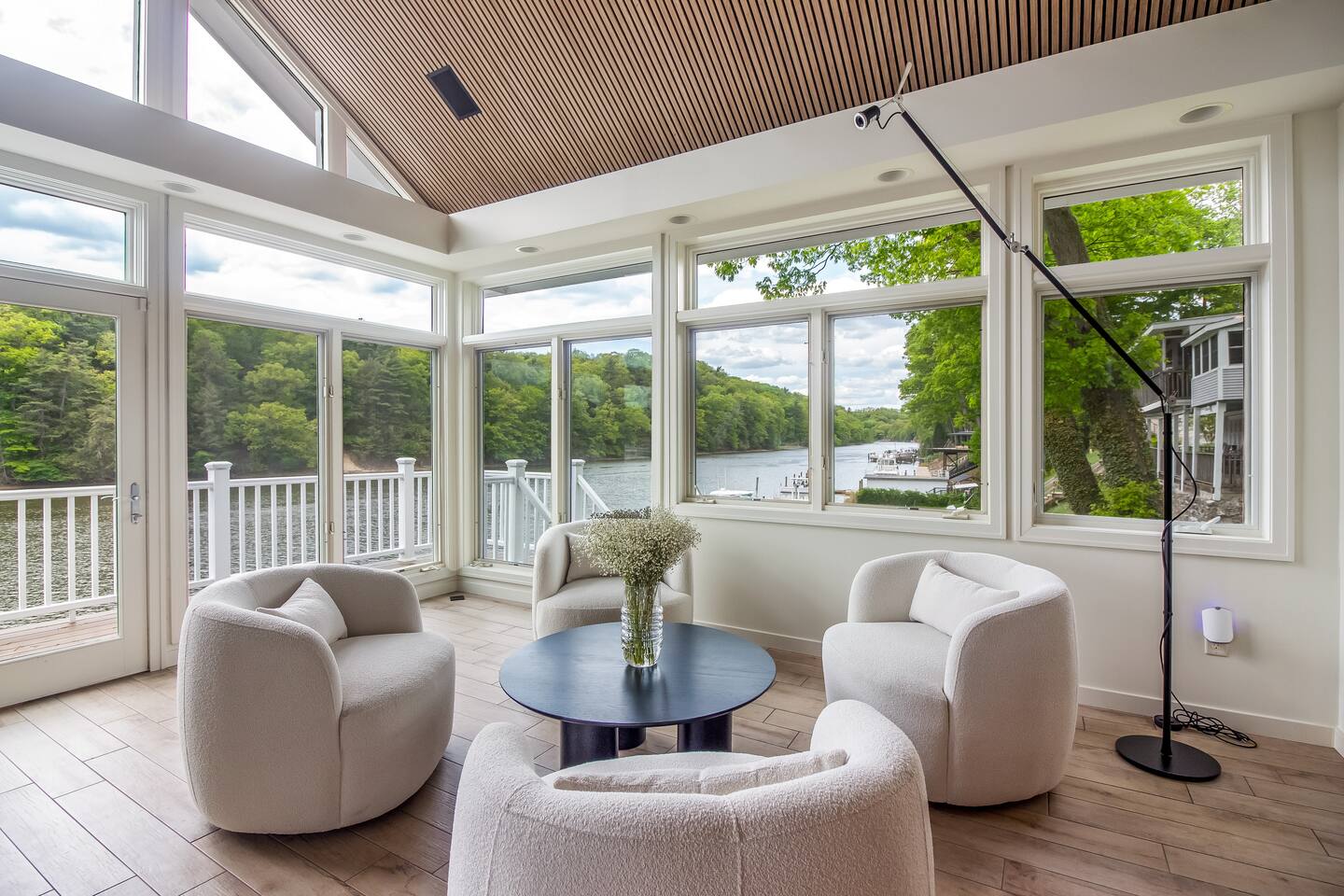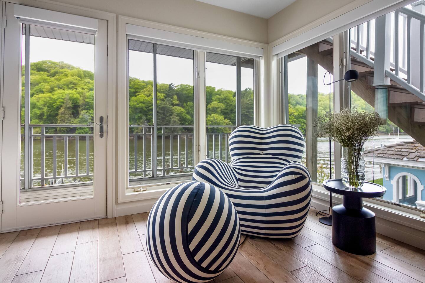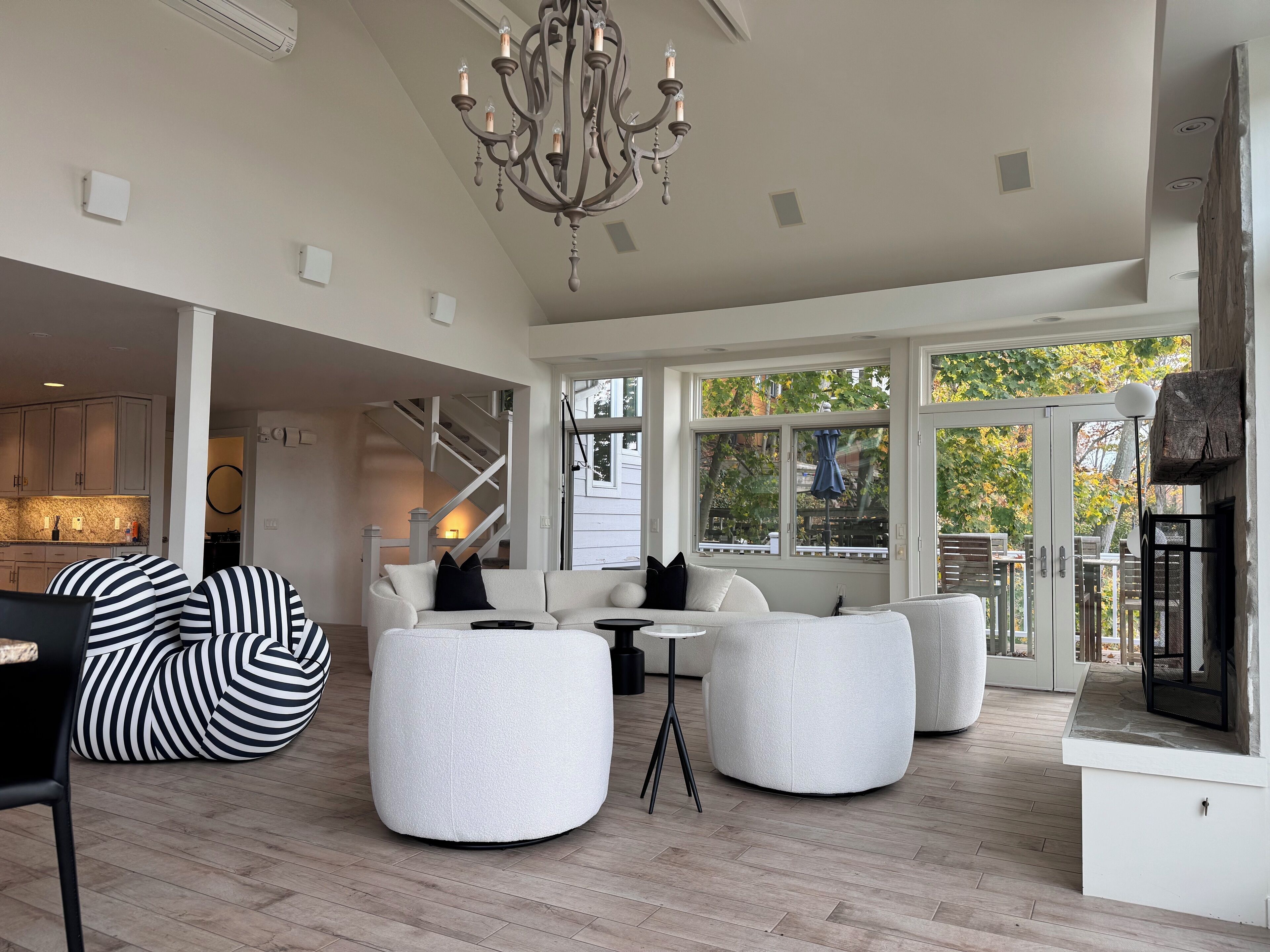 Welcome to The River View Resort, a luxurious multi-level retreat offering stunning riverfront views and the perfect blend of comfort and style. Designed with relaxation and connection in mind, this spacious home is ideal for families or groups looking to immerse themselves in the beauty of Saugatuck. The main living area is currently under a complete renovation and will be finished before May! Guests enter on the top floor, greeted by panoramic river views through expansive windows. Descend to the main living level, where a gourmet kitchen awaits, equipped with everything needed to prepare memorable meals. This floor also features two outdoor dining areas, a wraparound balcony, and a convenient half bath. The next level is home to the serene primary bedroom with a plush king bed, en-suite bathroom, and private balcony overlooking the water. A second sleeping area on this floor offers added flexibility, and the laundry room ensures convenience during your stay. One floor down, you'll find another bedroom with its own en-suite bathroom, plus two additional bedrooms with direct access to the large lower deck and waterfront. These two bedrooms share a hall bathroom, creating a comfortable space for rest and relaxation. The River House boasts multiple balconies and decks, each offering the best river views in all of Saugatuck! The large lower deck provides direct access to the waterfront, perfect for soaking in the natural beauty, enjoying morning coffee, or gathering with loved ones as the sun sets over the river. Nestled on the shores of the river, the house is just a short walk to downtown Saugatuck, where you’ll find charming shops, galleries, and award-winning restaurants. Explore nearby beaches, hiking trails, and water activities for a truly unforgettable stay. The property is located: - A 3-minute walk to the Southerner restaurant - A 10-minute walk to the shops and restaurants in downtown Saugatuck - 2 miles from downtown Douglas - 4 miles from Oval Beach - 4 miles from Saugatuck Dunes State Park We’ve designed this home to feel like a true retreat—whether you’re dining alfresco, relaxing in the elegant living spaces, or waking up to river views from every room, this is a place to create lasting memories. We can’t wait to host you! Registration Number CSTR-240067