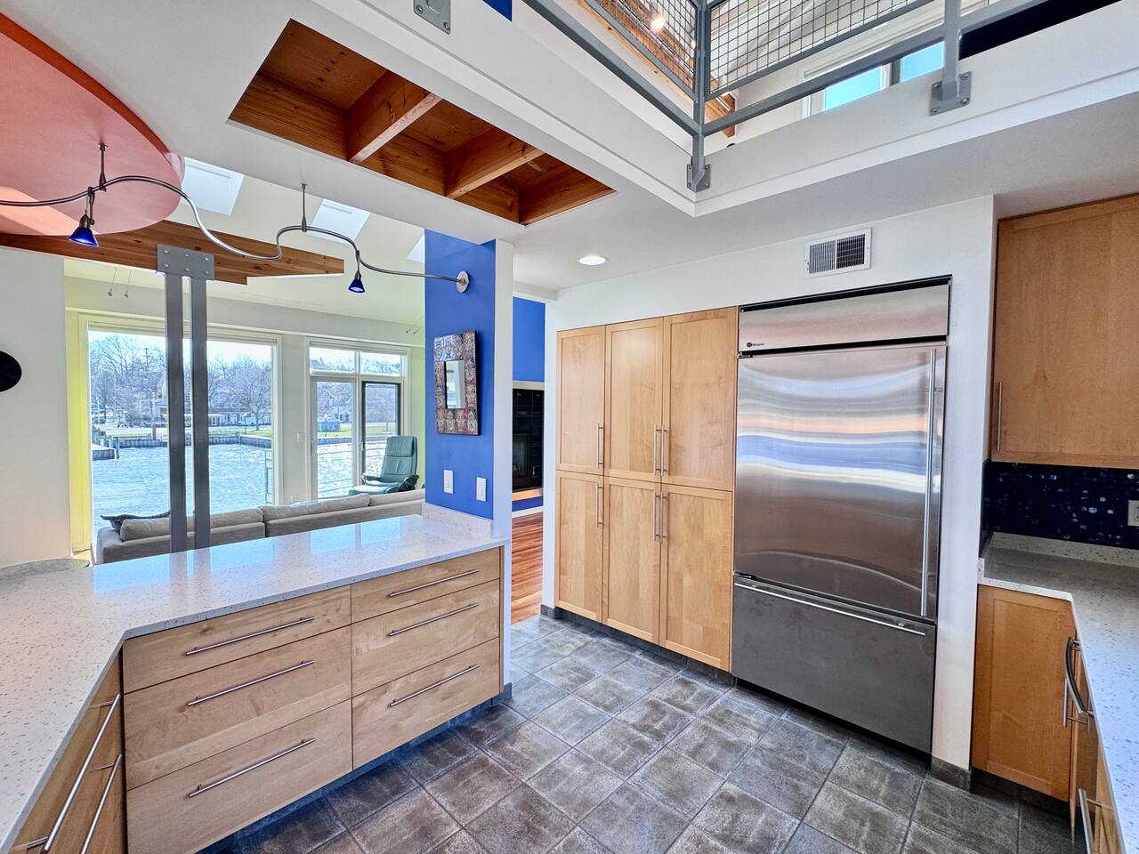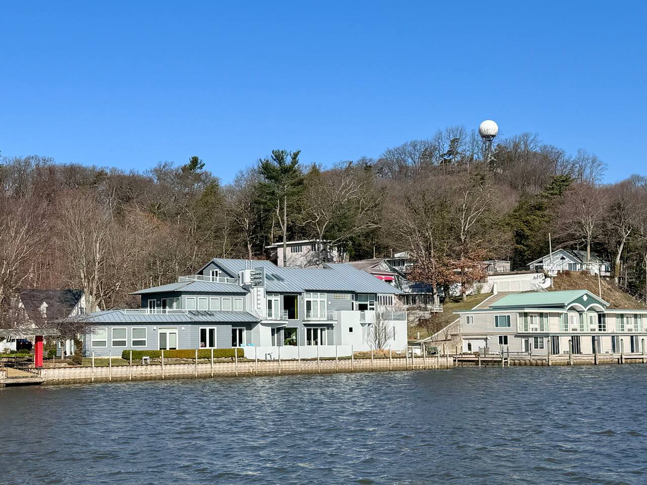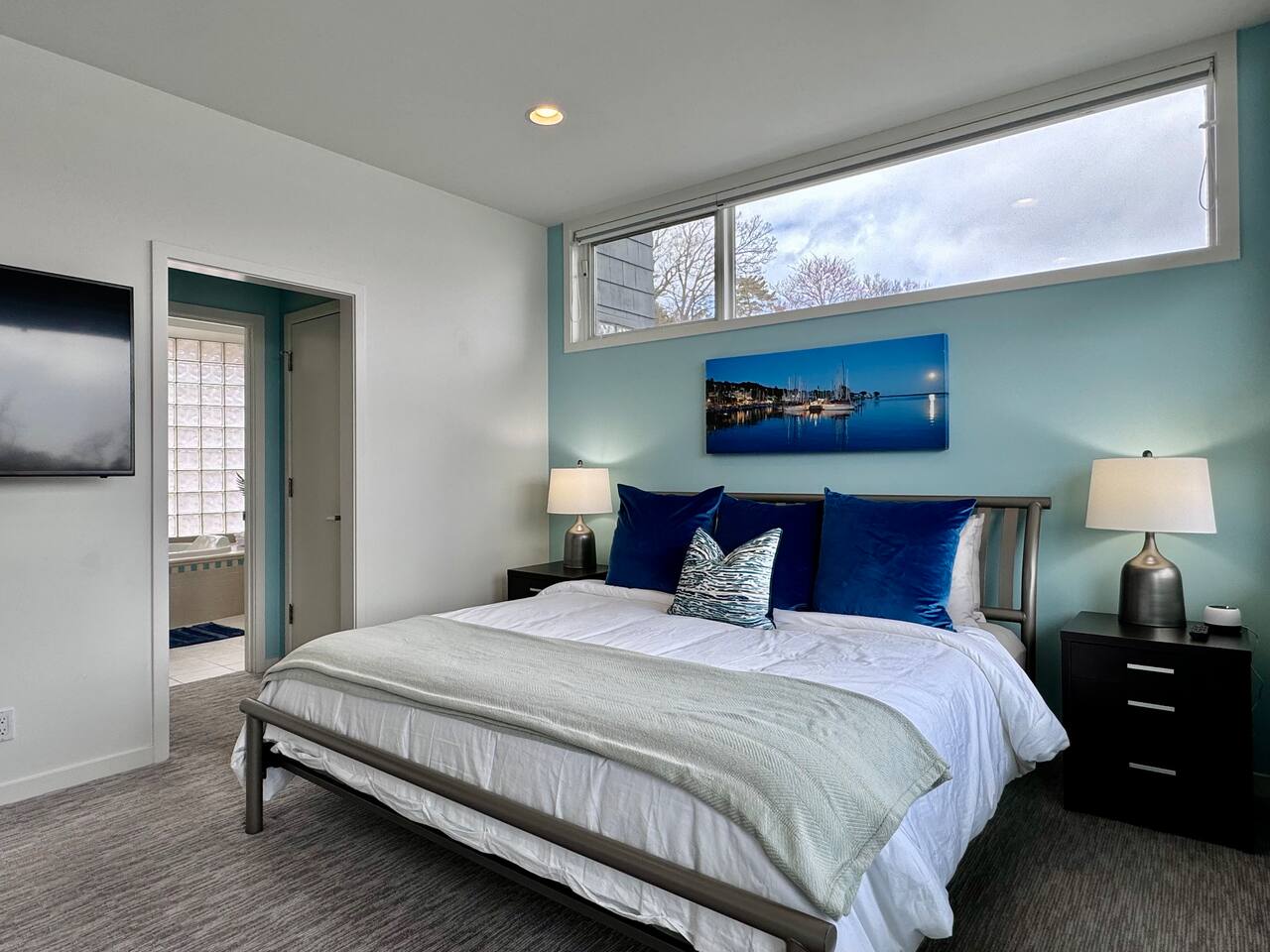 Upon entering, you'll be greeted by a spacious living room, where large windows frame breathtaking views of the surrounding waterscape and downtown area, inviting the outside in. The living room is anchored by a cozy gas fireplace, making it the perfect spot to unwind. Adjacent, a game area promises fun and leisure for all ages. The kitchen serves as the heart of the home, fully equipped with top-of-the-line appliances, a coffee bar, and all the essentials for cooking up your favorite meals. Whether it's a quick breakfast or a gourmet dinner, this kitchen caters to every chef's dream. The home comfortably sleeps 6 adults. Sleeping arrangements on the main level include three bedrooms, each with a luxurious King bed. The primary suite has an en-suite bathroom, offering a serene retreat with balcony access for private moments of relaxation. Two additional bedrooms share a convenient jack-and-jill bathroom, with one of these rooms also enjoying its own balcony access, inviting guests to wake up to dazzling water vistas. Ascend to the loft, where you'll find additional living spaces in the TV room and an open living room, one equipped with a futon and perfect for children. The loft provides a versatile area for relaxation or entertainment, complemented by elevated views of Saugatuck's scenic beauty. The home features six balconies, five of which offer commanding views of the water and downtown, allowing guests to seamlessly connect with the vibrant life of Saugatuck. Whether it's enjoying a morning coffee, basking in the afternoon sun, or toasting to the sunset, these outdoor spaces provide the perfect backdrop for every moment. This Riverside Retreat is more than just a place to stay; it's a destination in itself. Featuring skylights, large daylight windows, hardwood floors, granite countertops, heated tile floors, stainless steel appliances, and interiors decorated with local artwork, every detail contributes to an atmosphere of luxury. Experience the charm of Saugatuck from this magnificent property! Registration # CSTR-240041