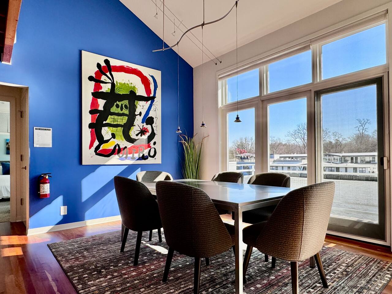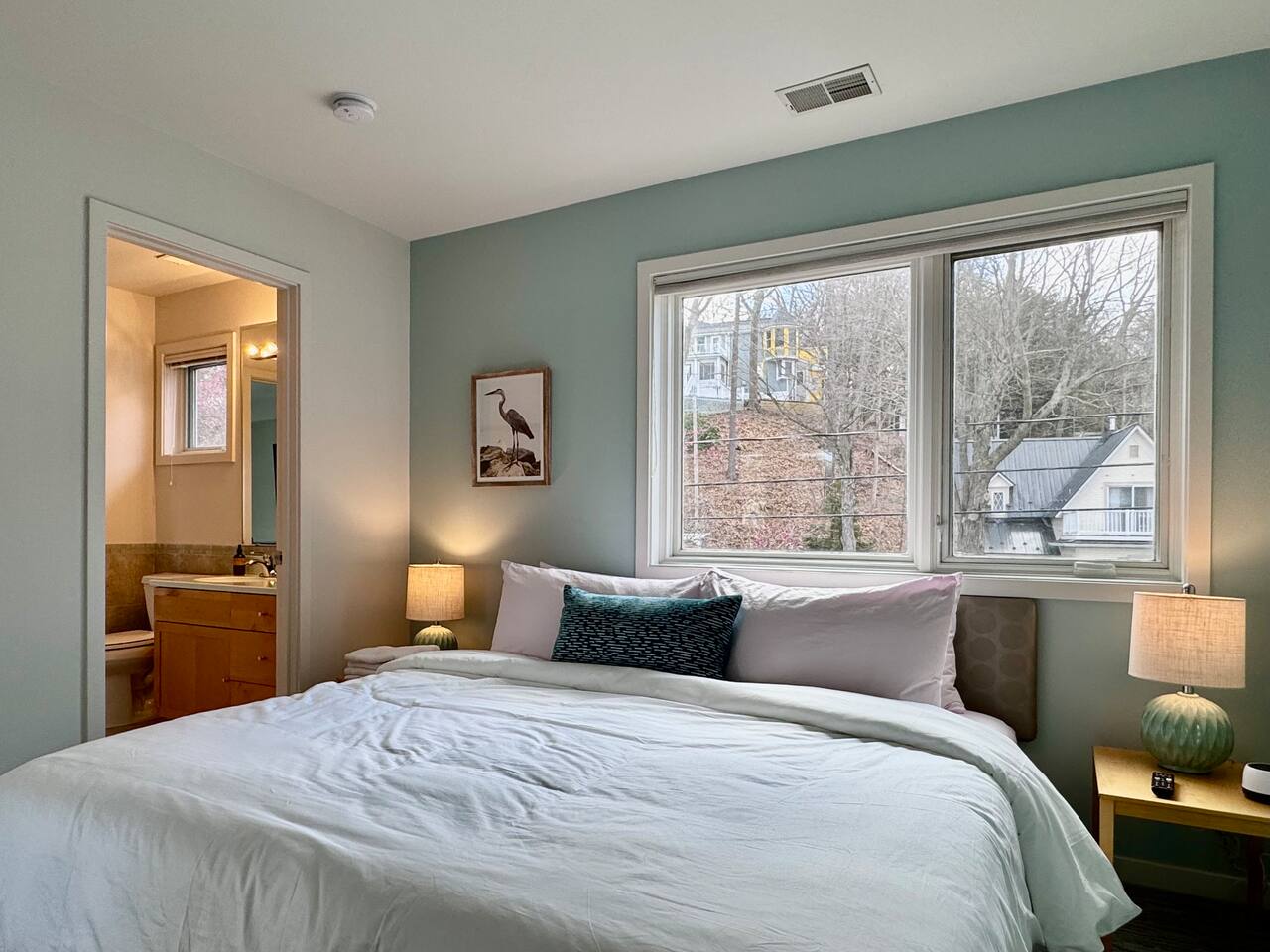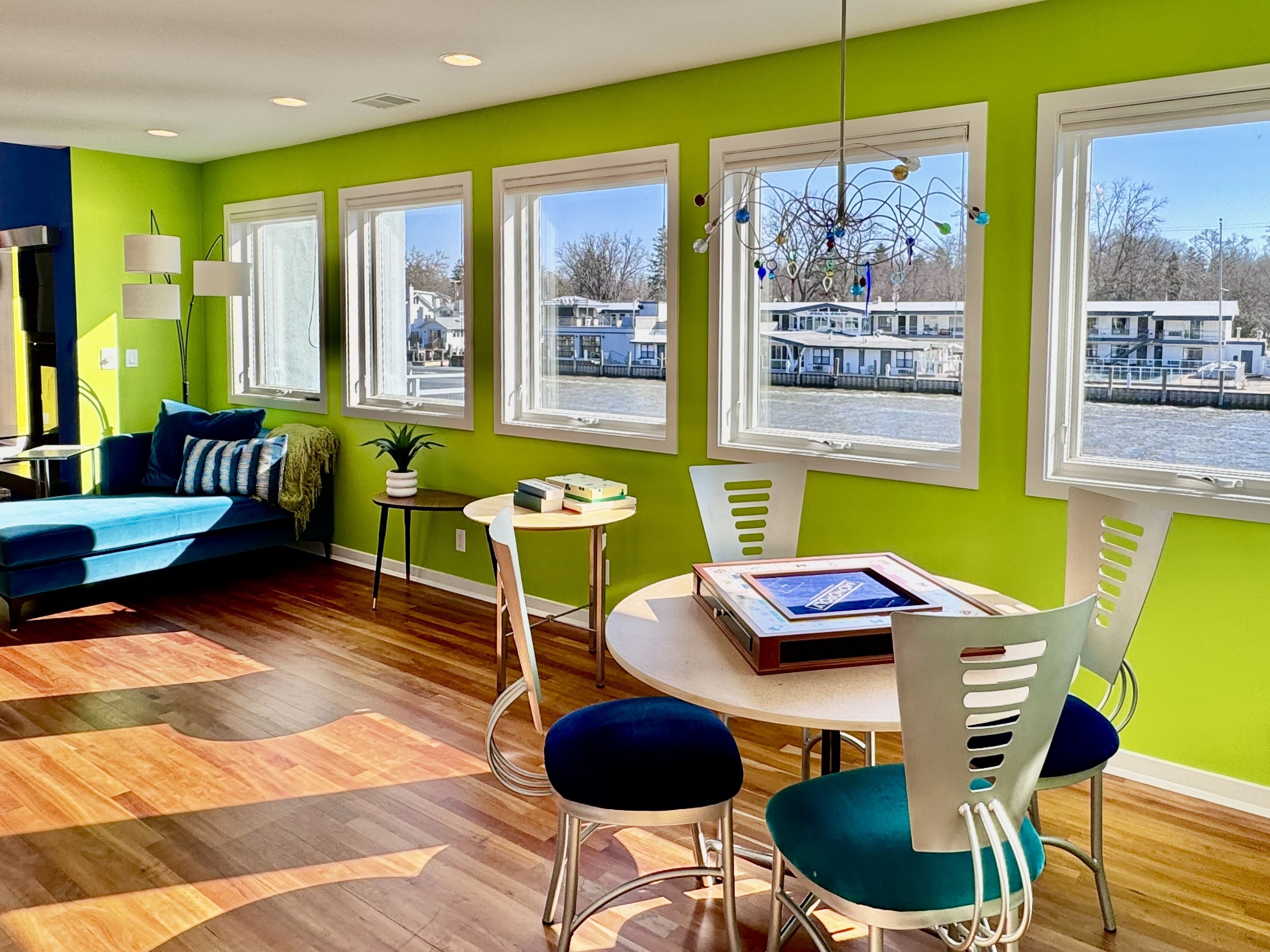 The Riverside Retreat is nestled alongside the Kalamazoo River in Saugatuck, where you can spend the day watching boats pass by and see the historic chain ferry bringing passengers to and from downtown. Outdoor enthusiasts will enjoy the proximity to Oval Beach, consistently rated as one of the top beaches in the nation, where sunsets over Lake Michigan are nothing short of magical. Whether it's exploring the nearby dunes, hiking through lush trails, or simply enjoying a leisurely day by the water, there's no shortage of outdoor activities to engage in right outside your doorstep. Just across the river is downtown Saugatuck, which is renowned for its quaint, picturesque streets brimming with artisan coffee shops, local restaurants, unique boutiques and vibrant galleries. It's a quick ride on the chain ferry to get there, or a 3-mile drive via the bridge over Lake Kalamazoo.