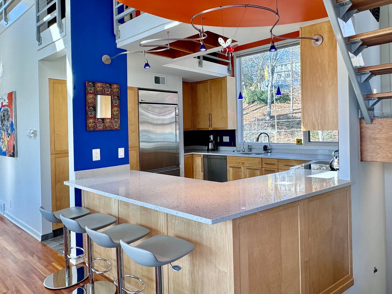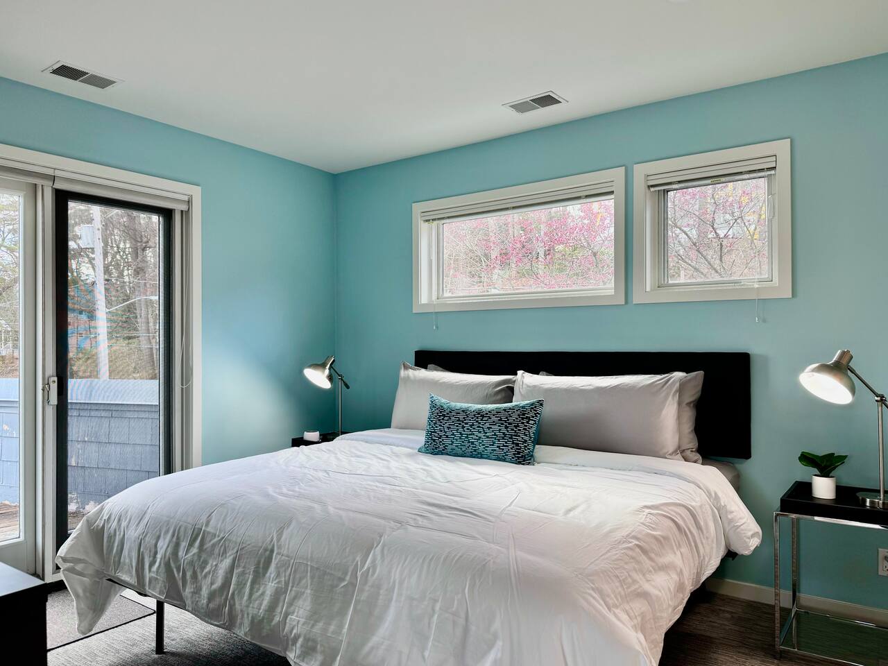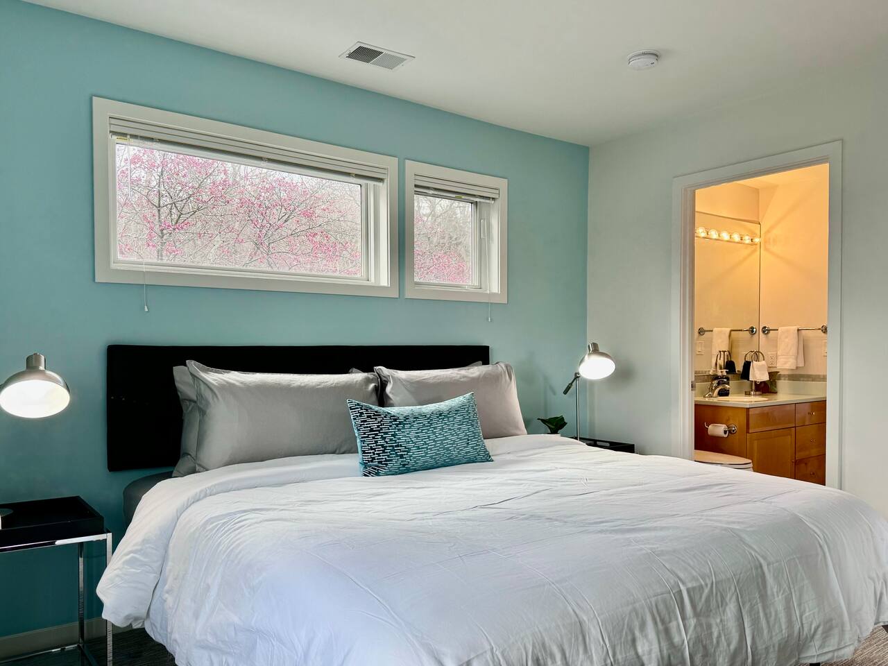 The Riverside Retreat is nestled alongside the Kalamazoo River in Saugatuck, where you can spend the day watching boats pass by and see the historic chain ferry bringing passengers to and from downtown. Outdoor enthusiasts will enjoy the proximity to Oval Beach, consistently rated as one of the top beaches in the nation, where sunsets over Lake Michigan are nothing short of magical. Whether it's exploring the nearby dunes, hiking through lush trails, or simply enjoying a leisurely day by the water, there's no shortage of outdoor activities to engage in right outside your doorstep. Just across the river is downtown Saugatuck, which is renowned for its quaint, picturesque streets brimming with artisan coffee shops, local restaurants, unique boutiques and vibrant galleries. It's a quick ride on the chain ferry to get there, or a 3-mile drive via the bridge over Lake Kalamazoo.