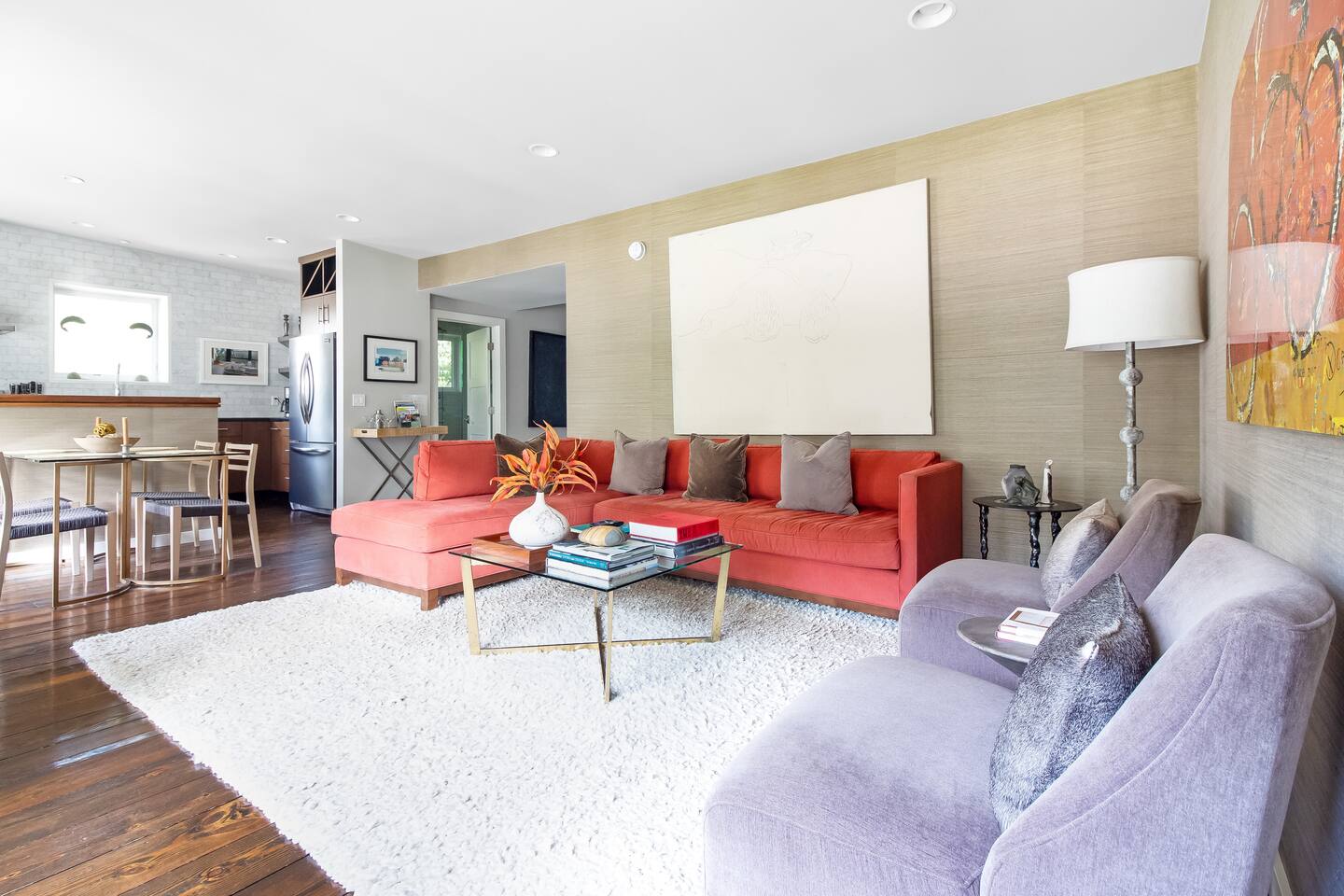 Welcome to Roan & Black, a beautifully designed two-bedroom, two-bath apartment on the upper floor of a historic building and former art gallery in the heart of Saugatuck. Filled with original artwork and custom details, this stylish retreat blends creativity and comfort with modern amenities throughout. Walk to downtown Saugatuck, Pennyroyal Café, The Ivy House, and local galleries—all just steps from your door. A truly artful escape.