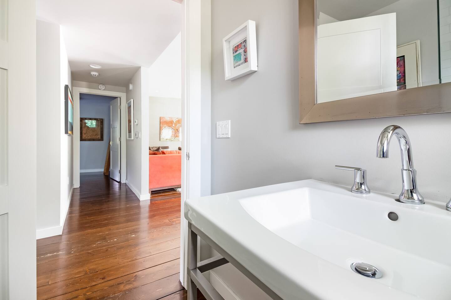 You will enjoy full and private access to the entire apartment during your stay. The house has keyless entry and we'll send you the code the day before your arrival. The parking area and back lawn and fire pit are shared with the apartment downstairs.
