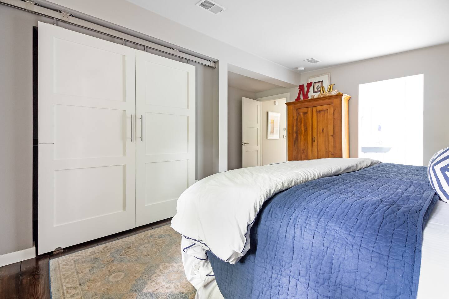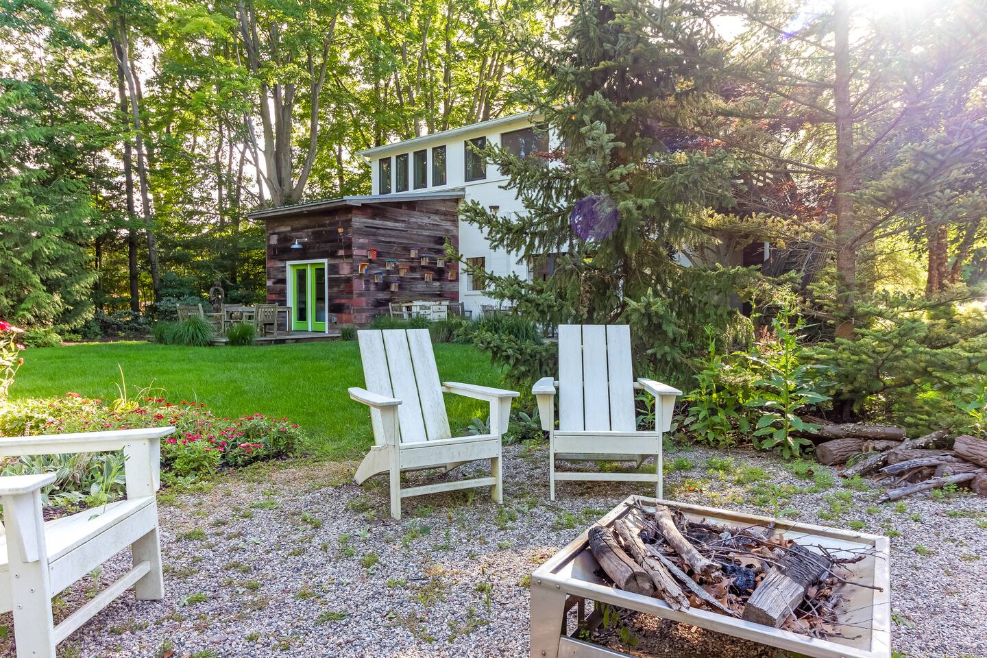 Two Unique Spaces, One Inspired Stay Once a 1950s auto body shop and later the beloved Roan & Black art gallery, this iconic building has been thoughtfully reimagined into a private, two-level getaway. Upper Apartment (2BR / 2BA) The light-filled upper level is a beautifully curated retreat featuring original artwork, custom furnishings, and modern comforts throughout. An open-concept living area includes a full kitchen, dining space, and inviting lounge designed for connection. Primary suite with king bed and en-suite bath Second bedroom with queen bed and adjacent full bath Washer and dryer for convenience The Gallery Loft – Lower Level (2BR / 1BA) The Gallery Loft celebrates the building’s artistic roots with industrial character and gallery-inspired design. Subtle paint splatters on the floors tell the story of its creative past, while modern amenities ensure a comfortable stay. Spacious open living, dining, and full kitchen area Spiral staircase leading to a cozy loft office—perfect for reading or remote work Primary bedroom with king bed and private deck overlooking the lawn and gardens Second bedroom with queen bed (loft-style with upper walls open to the living area) Washer and dryer included Expansive Outdoor Living Enjoy nearly two acres of shared outdoor space, complete with multiple decks, shaded seating areas, a gas grill, and a fire pit—perfect for morning coffee, relaxed afternoons, and evenings under the stars. The grounds offer both open lawn and peaceful garden areas for gathering or quiet moments alike. Unbeatable Location Centrally located on Blue Star Highway, Roan & Black places you: 2 minutes to downtown Saugatuck 3 minutes to downtown Douglas Under 10 minutes to Oval Beach Close to wineries, Lake Michigan, dining, shopping, and the Art Coast’s best attractions Pet-friendly (please keep pets off furniture and clean up after them in the yard) A rare opportunity to stay in a truly art-forward, story-rich property. We look forward to welcoming you! STR Registrations #CR23-064 & #CR25-072