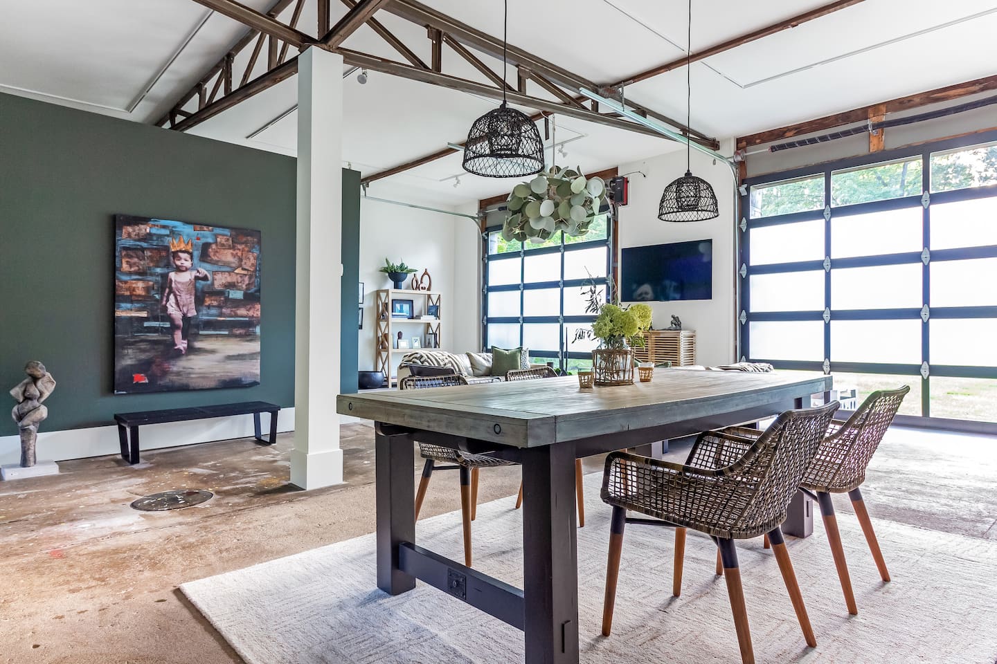 Welcome to Roan & Black, a truly distinctive 4-bedroom, 3-bath entire-property retreat where history, art, and mid-century modern design converge on nearly two acres of beautifully landscaped grounds. When you book the entire property, you’ll enjoy exclusive access to both the upper apartment and the lower loft, offering the perfect balance of shared gathering spaces and private sleeping quarters. ideal for families, groups of friends, or creative retreats seeking space, style, and connection.