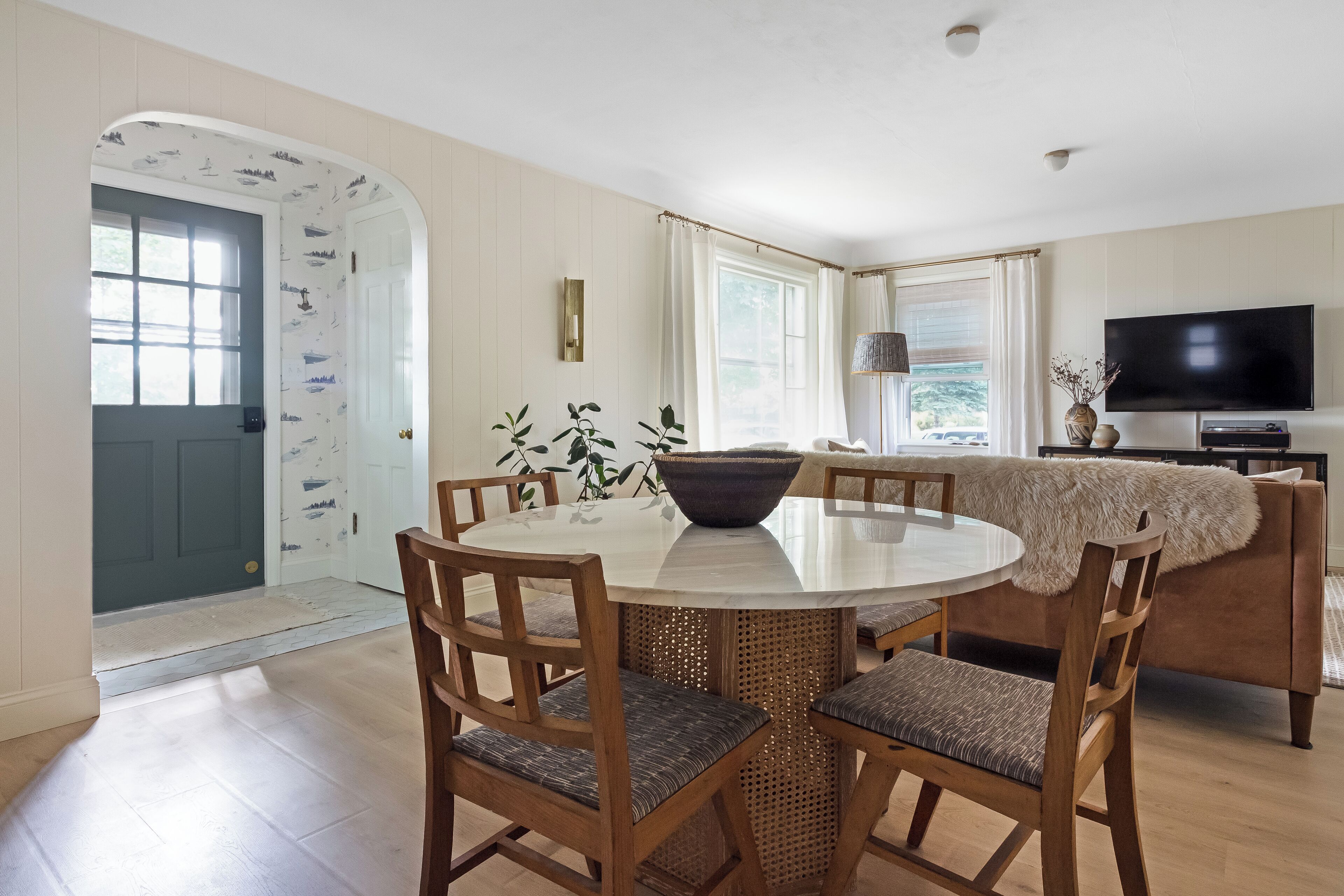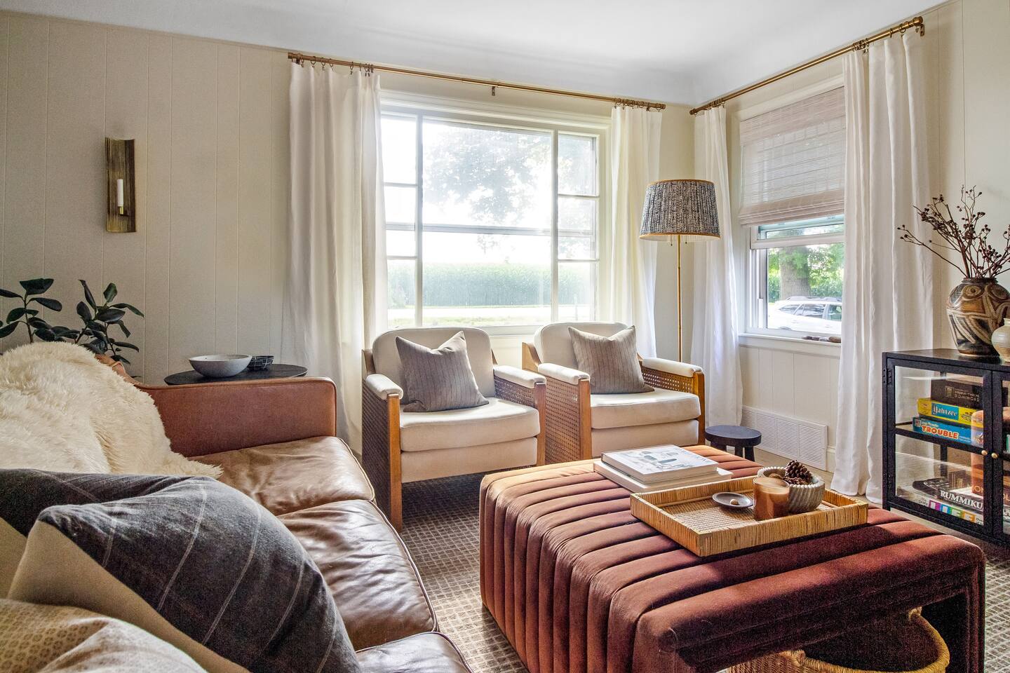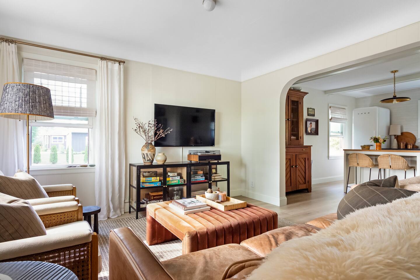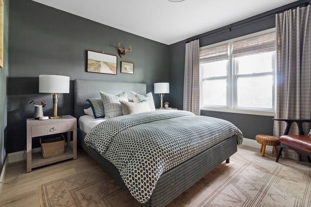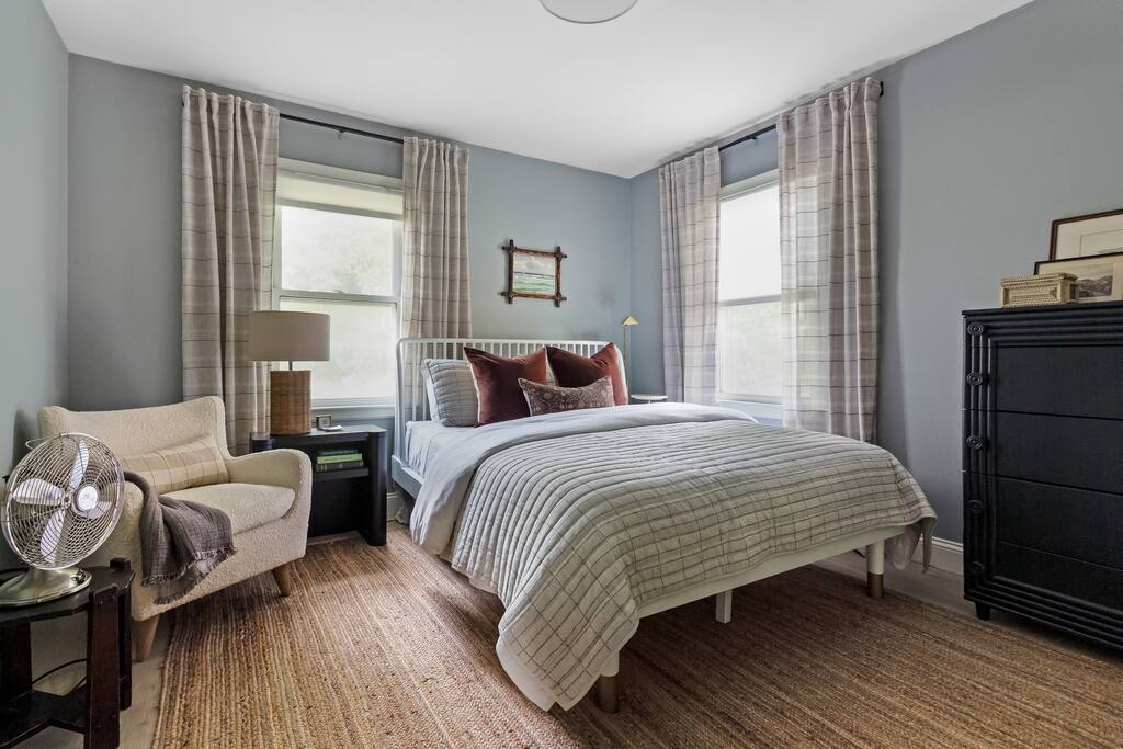 Step through the front door and into a bright, welcoming dining/living area where clean lines and modern design meet cozy touches. The space is furnished with stylish seating, a smart TV, and a record player for evenings spent unwinding with music or movies. Just beyond, the kitchen stands ready with high-end appliances, sleek countertops, and all the essentials to cook with ease. The dining area offers a comfortable spot to gather for meals before heading out to explore. Both bedrooms are thoughtfully appointed—each with comfortable beds, soft linens, and plenty of natural light to start your day refreshed. The bathroom is well-kept and stocked with fresh towels and all the basics you’ll need for your stay. A washer and dryer are available, making this cottage convenient for longer visits. Outside, the large backyard provides space to relax and play. Fire up the gas grill for a summer dinner, or gather around the fire pit as the sun sets. Whether sipping morning coffee in the fresh country air or ending your night under the stars, this home makes it easy to connect with the beauty of Southwest Michigan. Sycamore Cottage is located: - 3 minutes from downtown Fennville - 5 minutes from Modales & Fenn Valley wineries - 10 minutes from Lake Michigan (Pier Cove Park) - 15 minutes from downtown Saugatuck - 18 minutes from Saugatuck Dunes State Park - 21 minutes from Oval Beach We look forward to welcoming you!