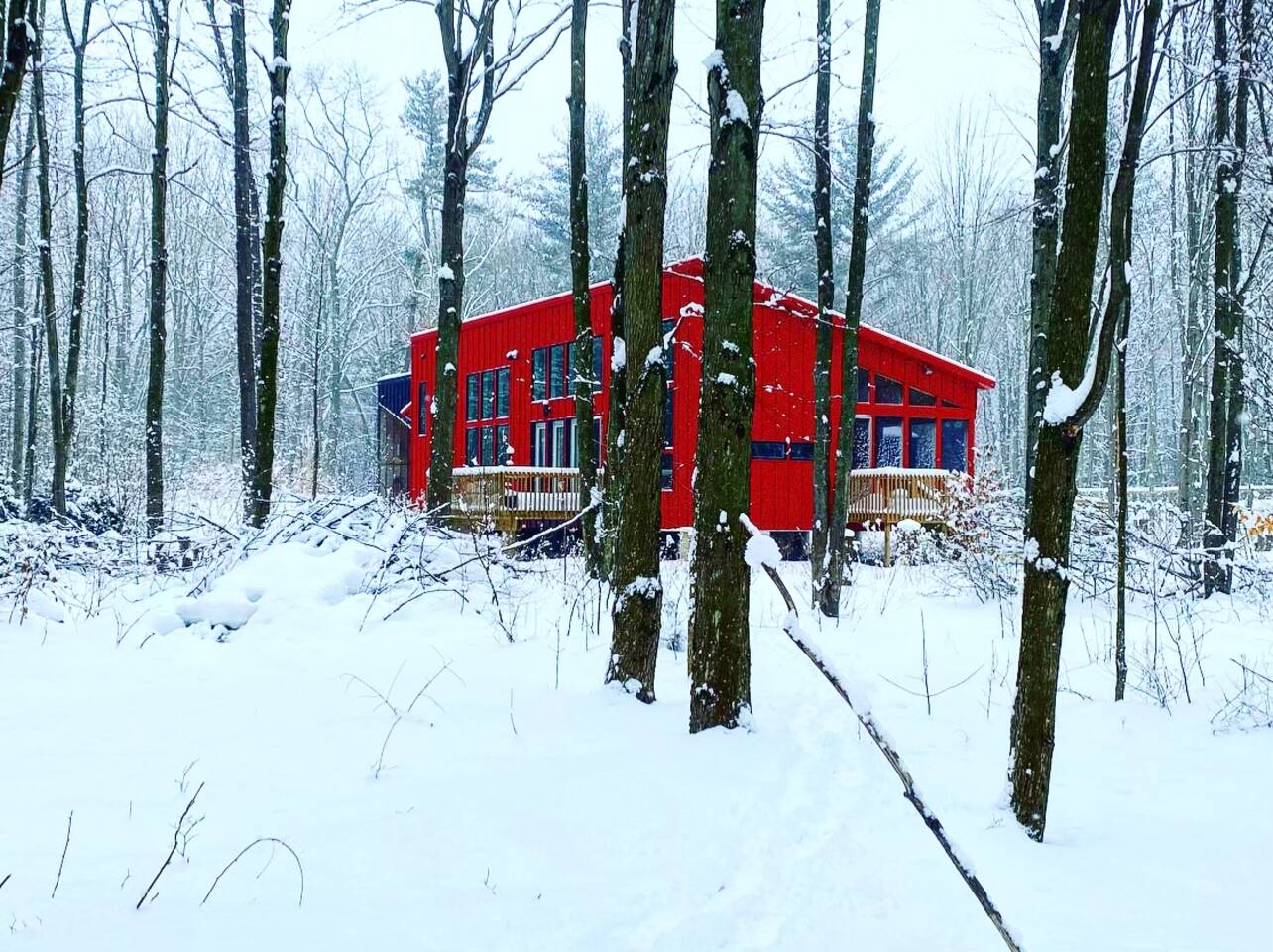 The home is in a rural wooded area about 8 minutes from downtown Fennville and 15 minutes from downtown Saugatuck.