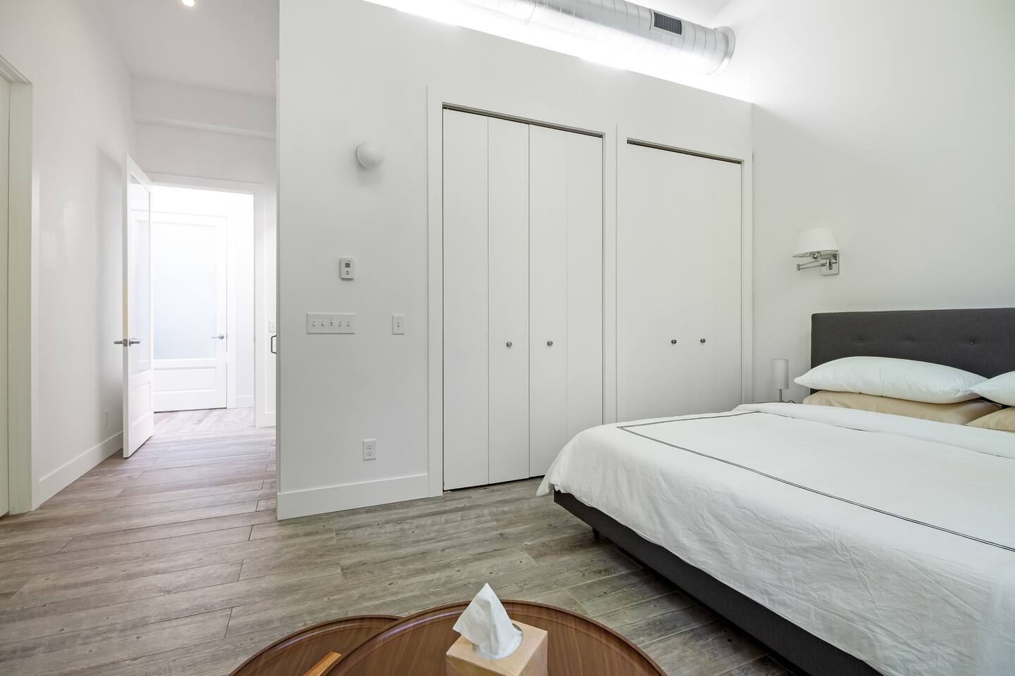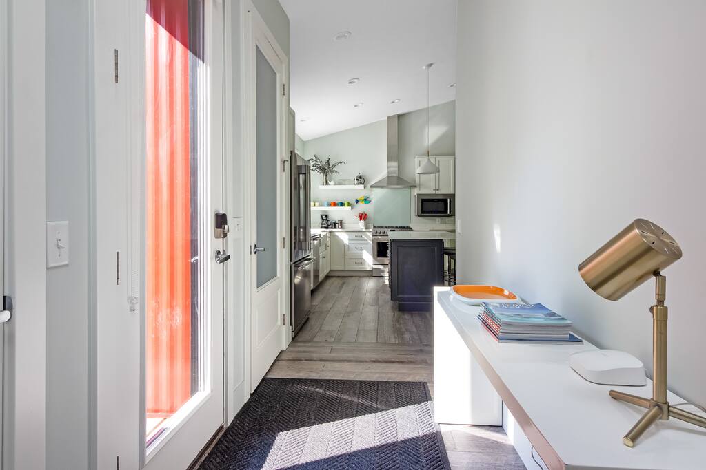 Please note that this is one of two adjoining homes on the same property. The owner lives in the front "black house" and uses a separate parking area and entrance, and there are no other shared spaces. Also, the home has one full bathroom, which is within the primary bedroom. There is also a half bathroom in the hallway.