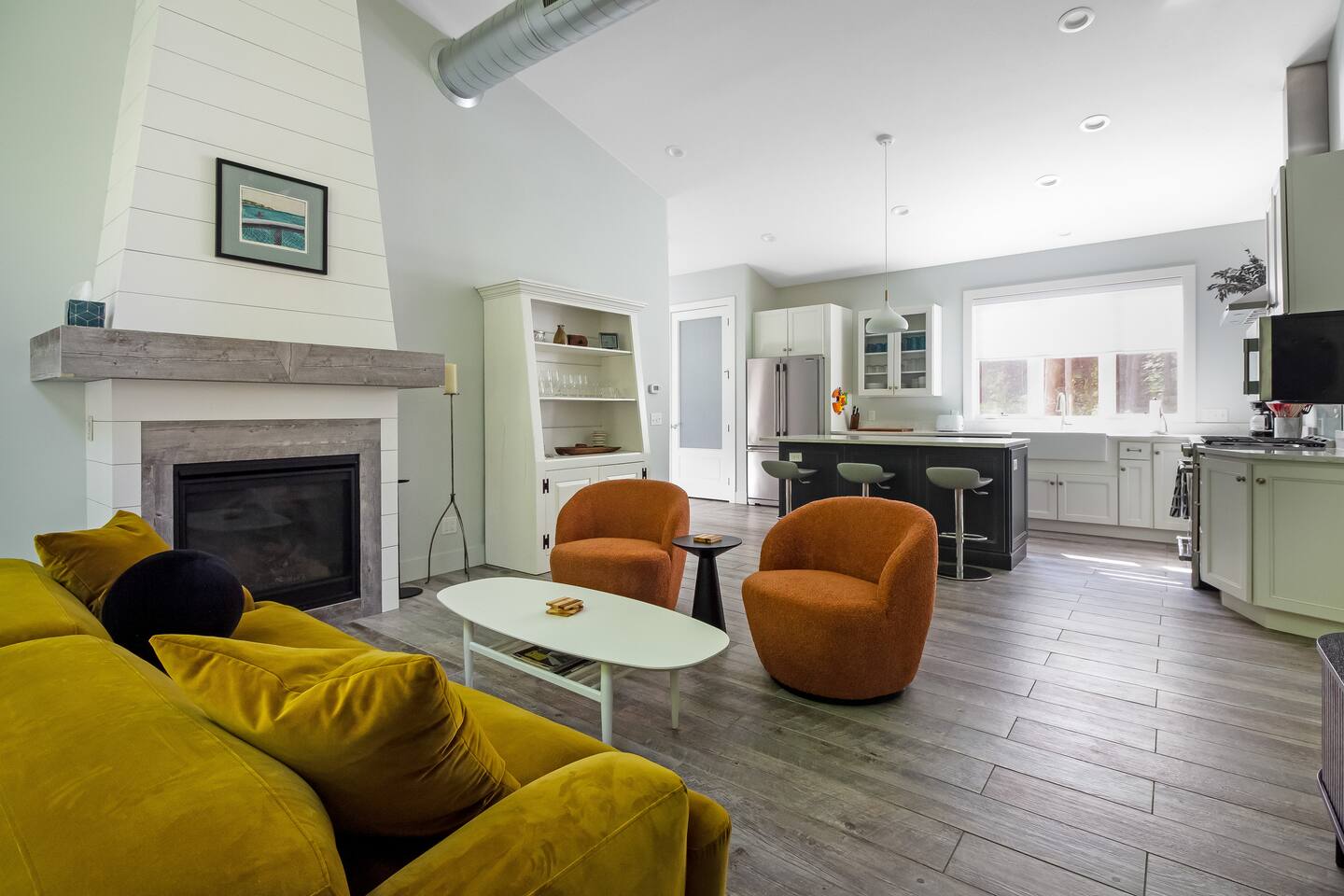 After turning off a quiet country road and following the winding shared driveway, you’ll arrive at your own private hideaway tucked into nearly 5 acres of wild, natural surroundings. While there is another unit on the property, no indoor or outdoor spaces are shared—just the driveway. You’ll feel completely secluded with plenty of distance, trees, and privacy between you and the neighboring home. Step inside to a striking open-concept living, dining, and kitchen area with vaulted ceilings, floor-to-ceiling windows, and a gas fireplace. The kitchen is fully stocked with high-end appliances and everything you need to cook, entertain, or simply unwind in style. The primary bedroom features a king bed, luxury linens, and an en-suite bathroom with a walk-in shower. Just off the main living space is a second bedroom with a comfortable queen bed, perfect for friends or family. A half bath and washer/dryer make longer stays extra convenient. Outside, take in the peaceful surroundings from your private back patio with gas grill or relax in the screened-in porch—an ideal spot for your morning coffee or a glass of wine at sunset. Whether you're looking to explore the nearby towns of Fennville and Saugatuck or simply stay in and recharge, this is a space that makes it easy to do both.