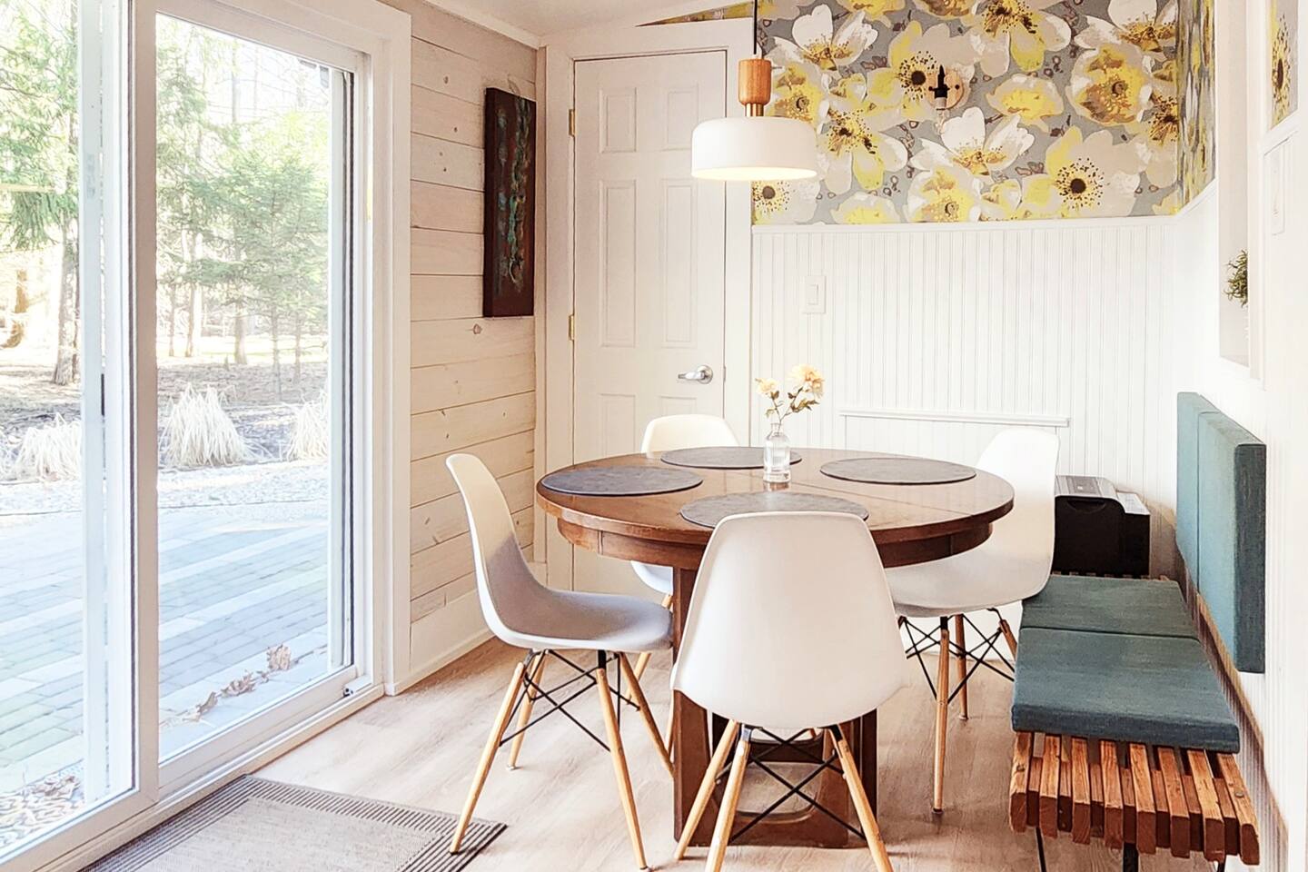 Inspired by the tranquility of its surroundings, Wiley Woods is your perfect escape. This stylish, mid-century modern retreat has been thoughtfully renovated, comfortably furnished, and designed with relaxation in mind. It offers a serene and private haven close to all the attractions of Douglas and Saugatuck. The house boasts 2 bright and cozy bedrooms and 1 bathroom. Both bedrooms features a plush queen bed with luxurious linens. The fully-equipped kitchen offers everything you need to whip up meals, from stainless steel appliances to the essential pantry staples. The open living area features a flat-screen TV and the adjacent dining area comfortably seats 6. The back patio invites you outside for al fresco meals. or to gather around the fire pit for evening s’mores. You'll enjoy watching deer pass through the woods while you sip your morning coffee. The back yard is not fully-fenced in at this time. We have 3 adult bicycles you're welcome to use, and a 4th on the way. We have a lock for each so you can secure it on your stops around town. Perfectly situated, Wiley Woods is located: - A 10-minute walk to the Dunes Resort - A 15-minute walk to the shops, galleries & restaurants in downtown Douglas - 2 miles to downtown Saugatuck - 2.5 miles to Oval Beach - 6 miles to Saugatuck Dunes State Park It is also just minutes away from wine tastings, hiking trails, and more. Whether you’re soaking in the beauty of the outdoors or cozying up inside, you’ll find the perfect blend of comfort, style, and adventure here. We can’t wait to host you! Registration # CR24-211