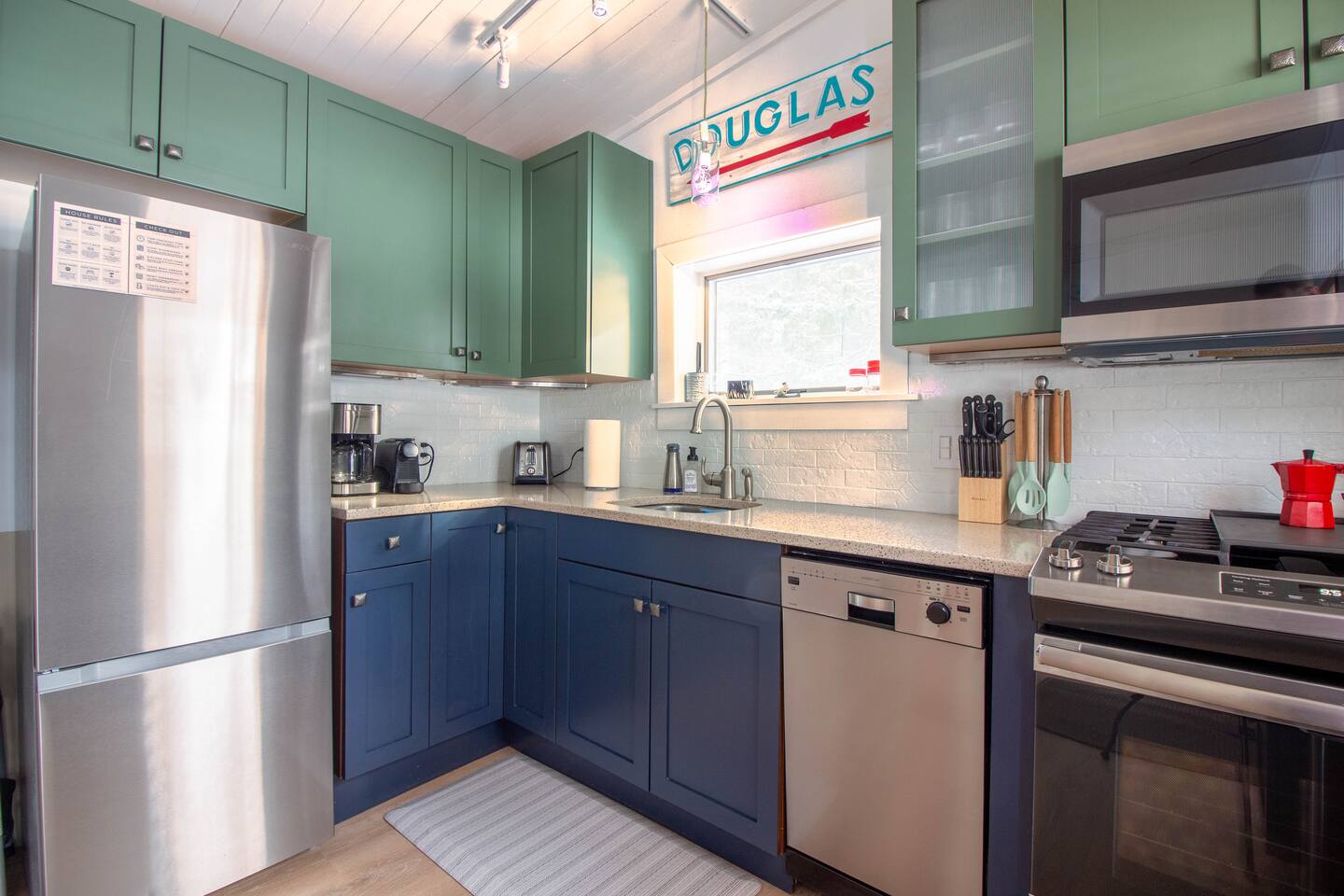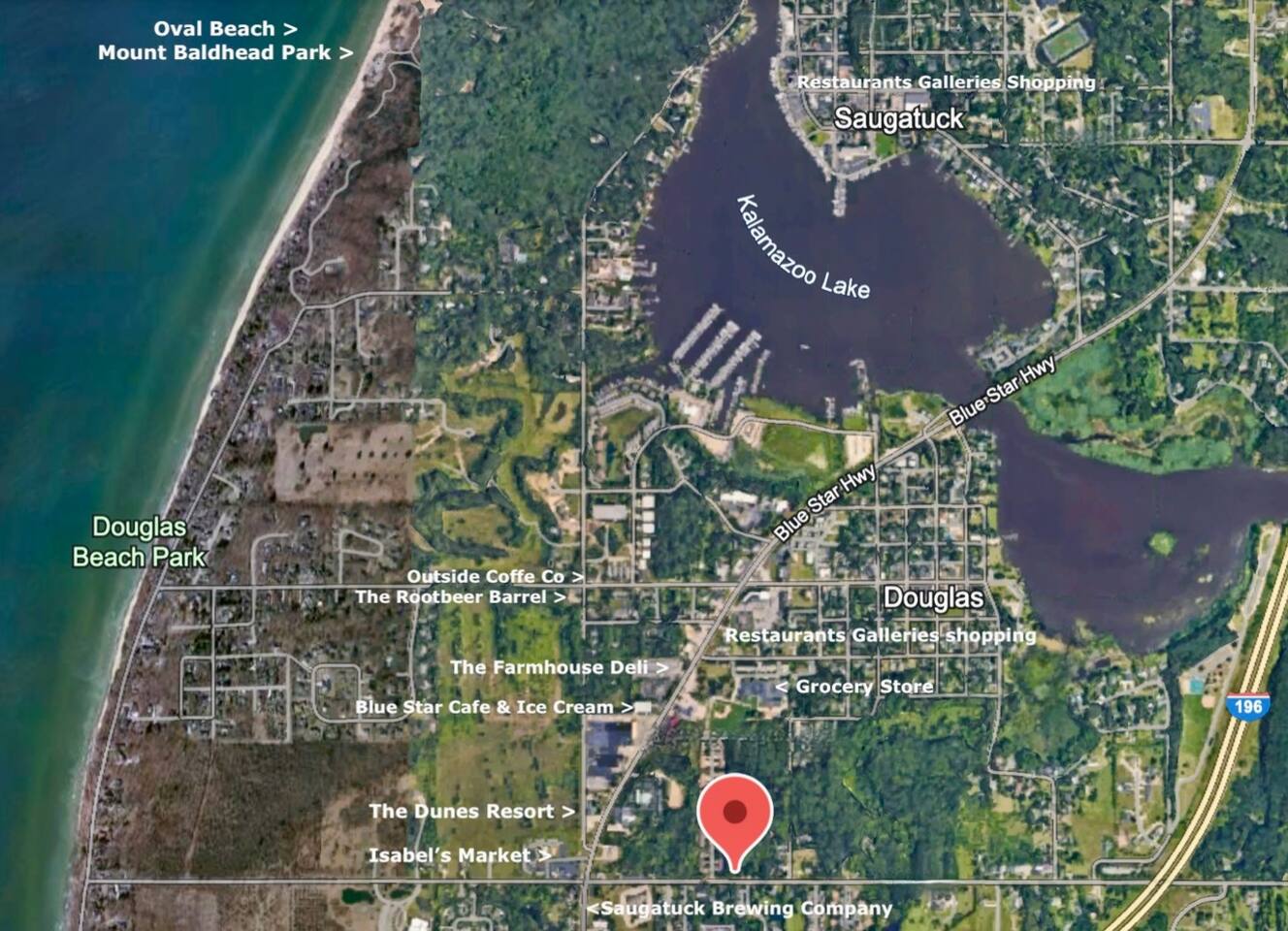 Escape to this stylish 2-bedroom retreat, perfectly located near the Dunes Resort, downtown Douglas and Lake Michigan. Relax in a bright, open living space with custom touches and a fully equipped kitchen. Outdoors, unwind by the fire pit or enjoy the lush, private yard. Walk to shops, galleries, and dining, or bike to Saugatuck's beaches and trails. Ideal for couples, friends, or small families seeking a serene escape with modern comforts. Your Douglas adventure starts here!
